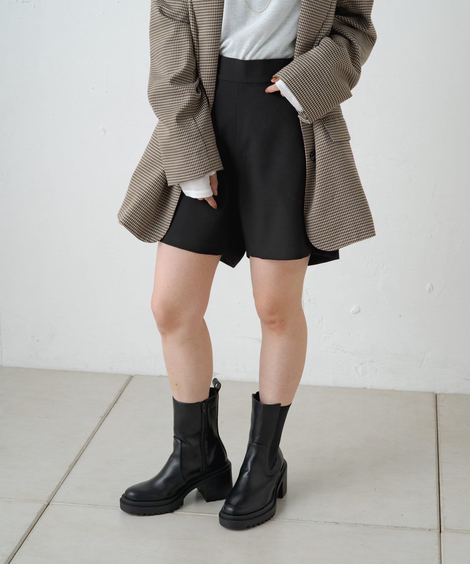 ・ショートパンツが苦手な方にも、ロングブーツと合わせたスタイリングで美脚見え効果抜群のおすすめな一本◎
