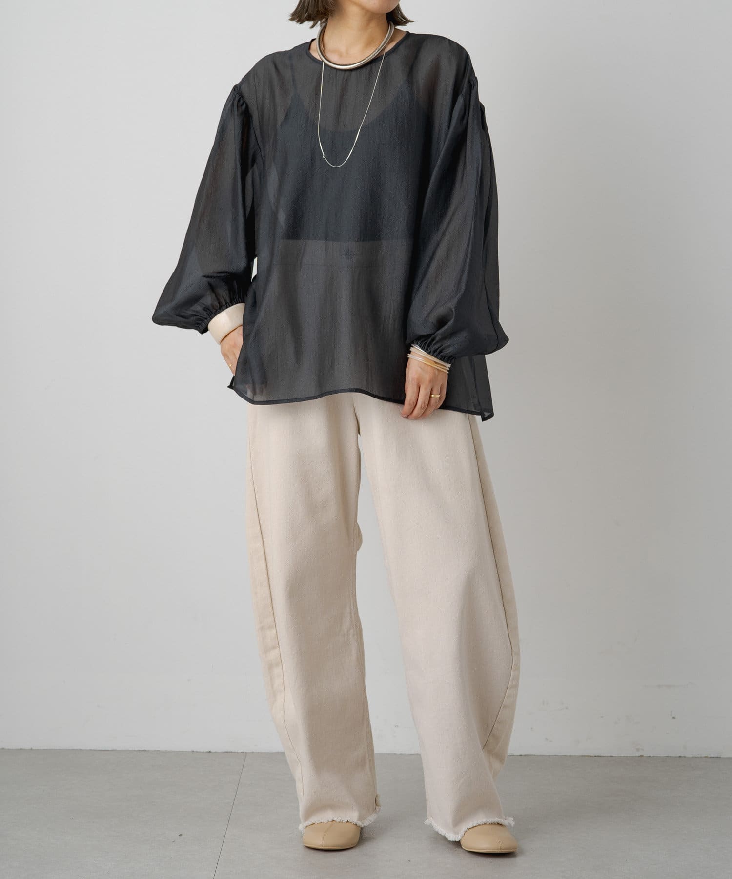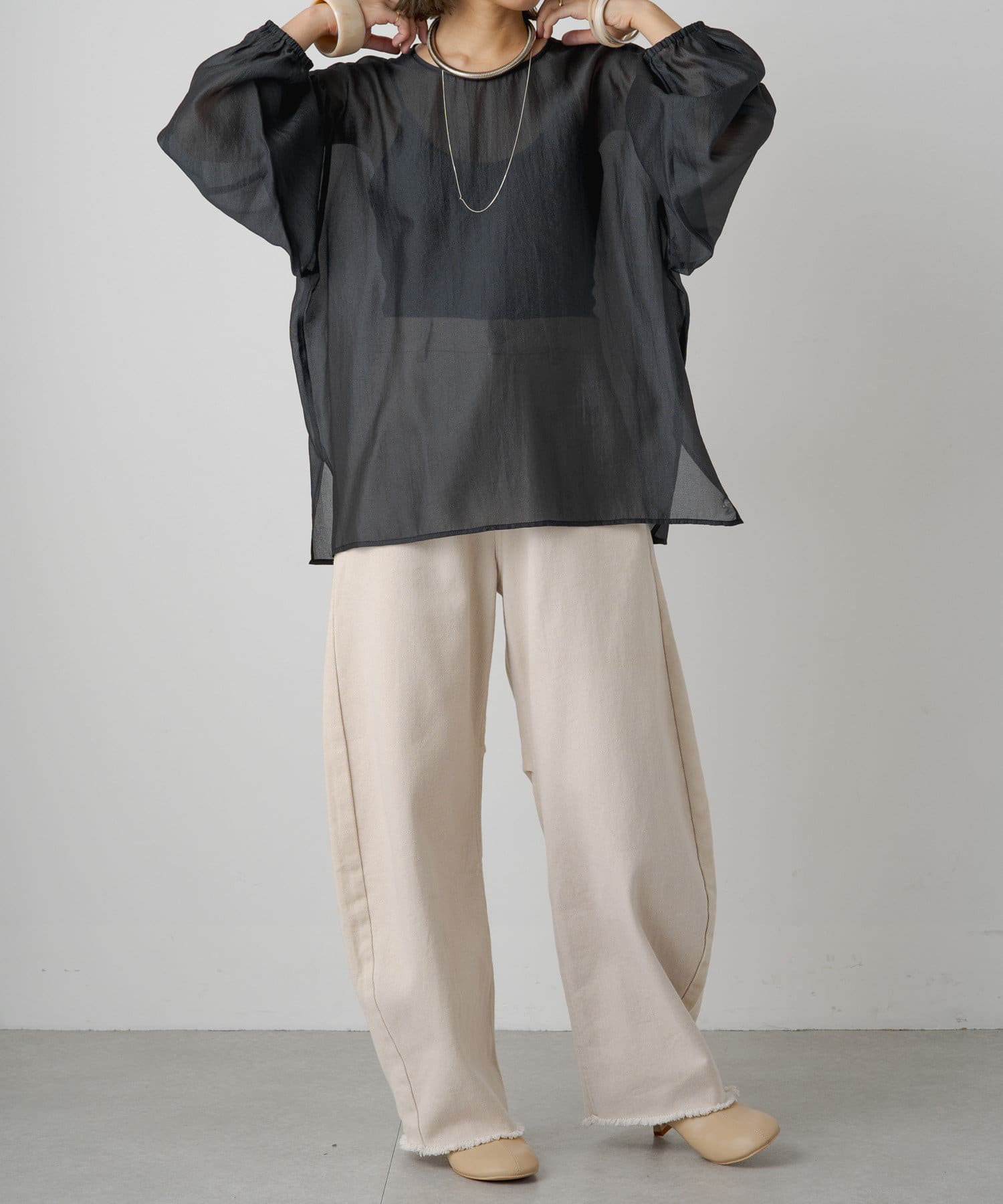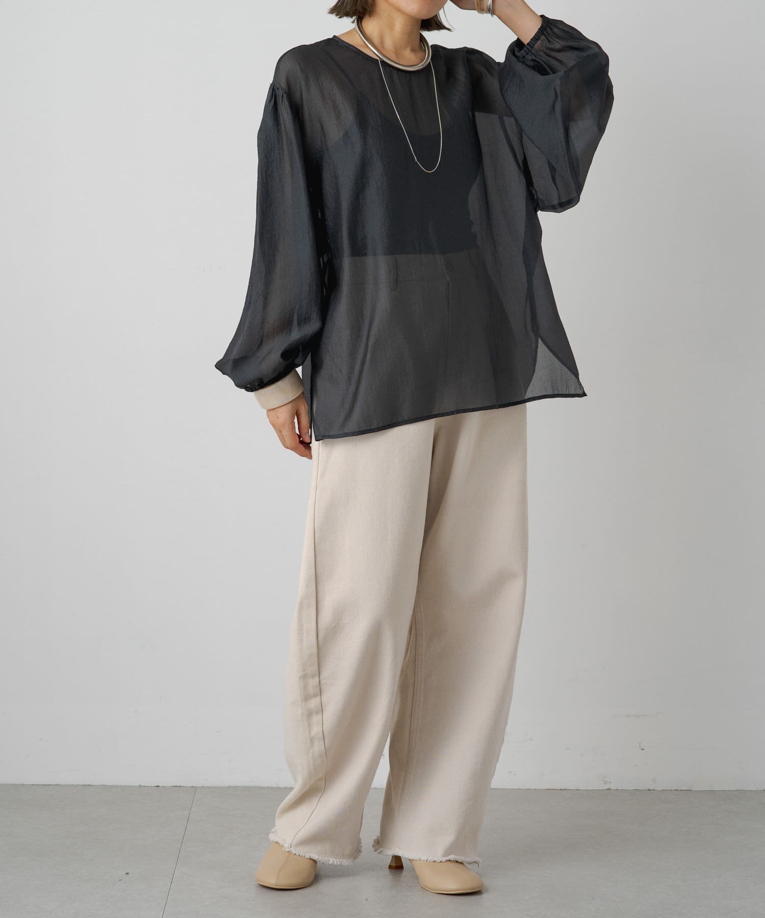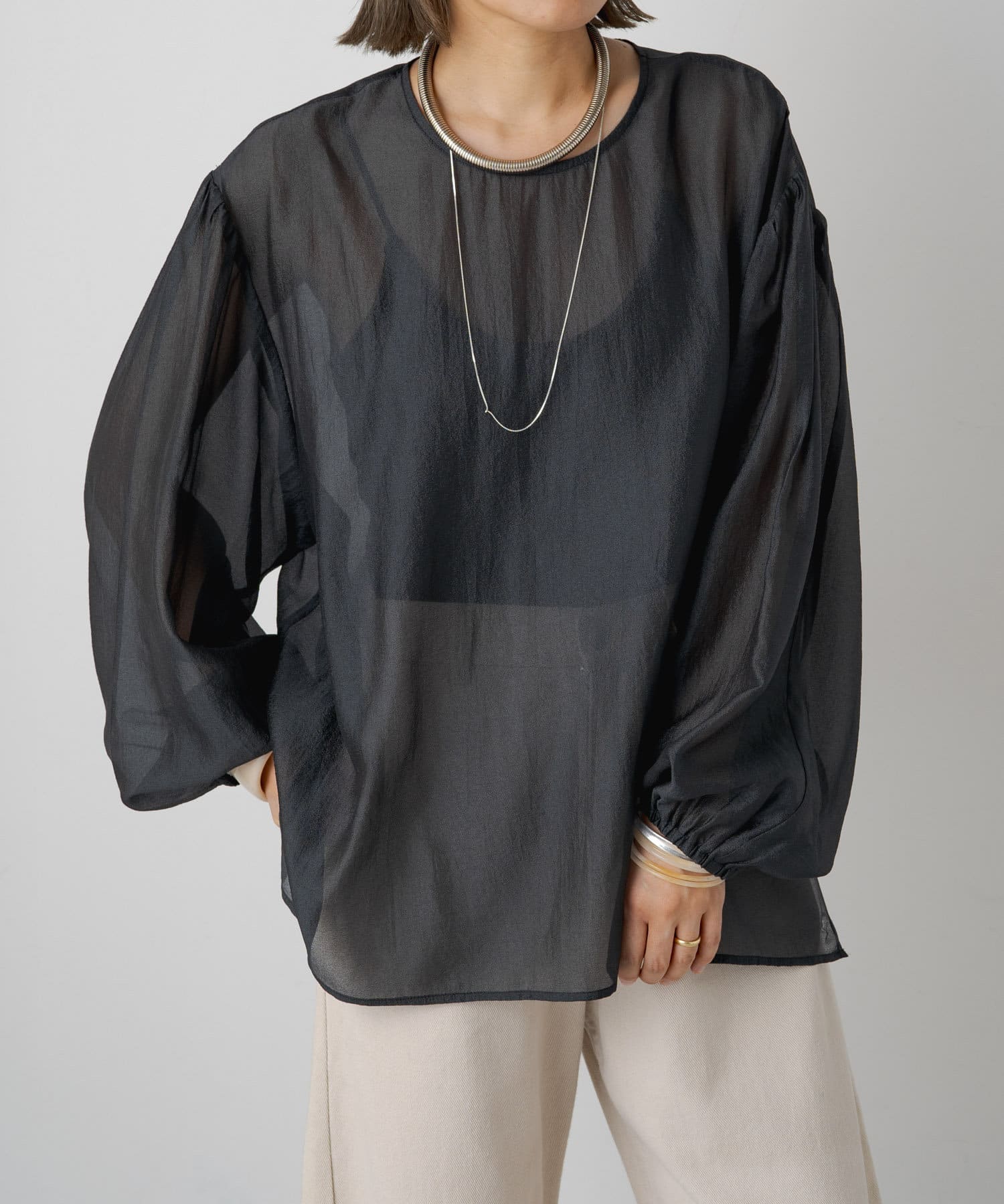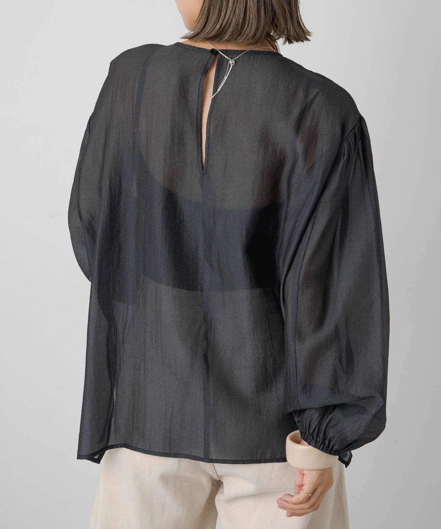 【Omekashi】シアーボリュームスリーブブラウス