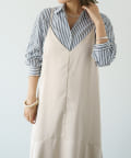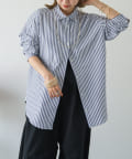 ・スタンダードなシルエットと、さわやかなストライプ柄がコーディネートのアクセントになるストライプシャツ