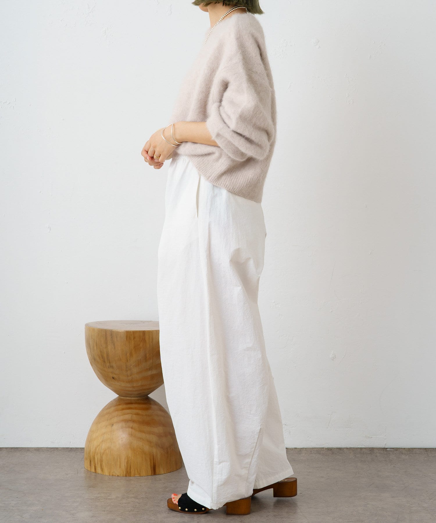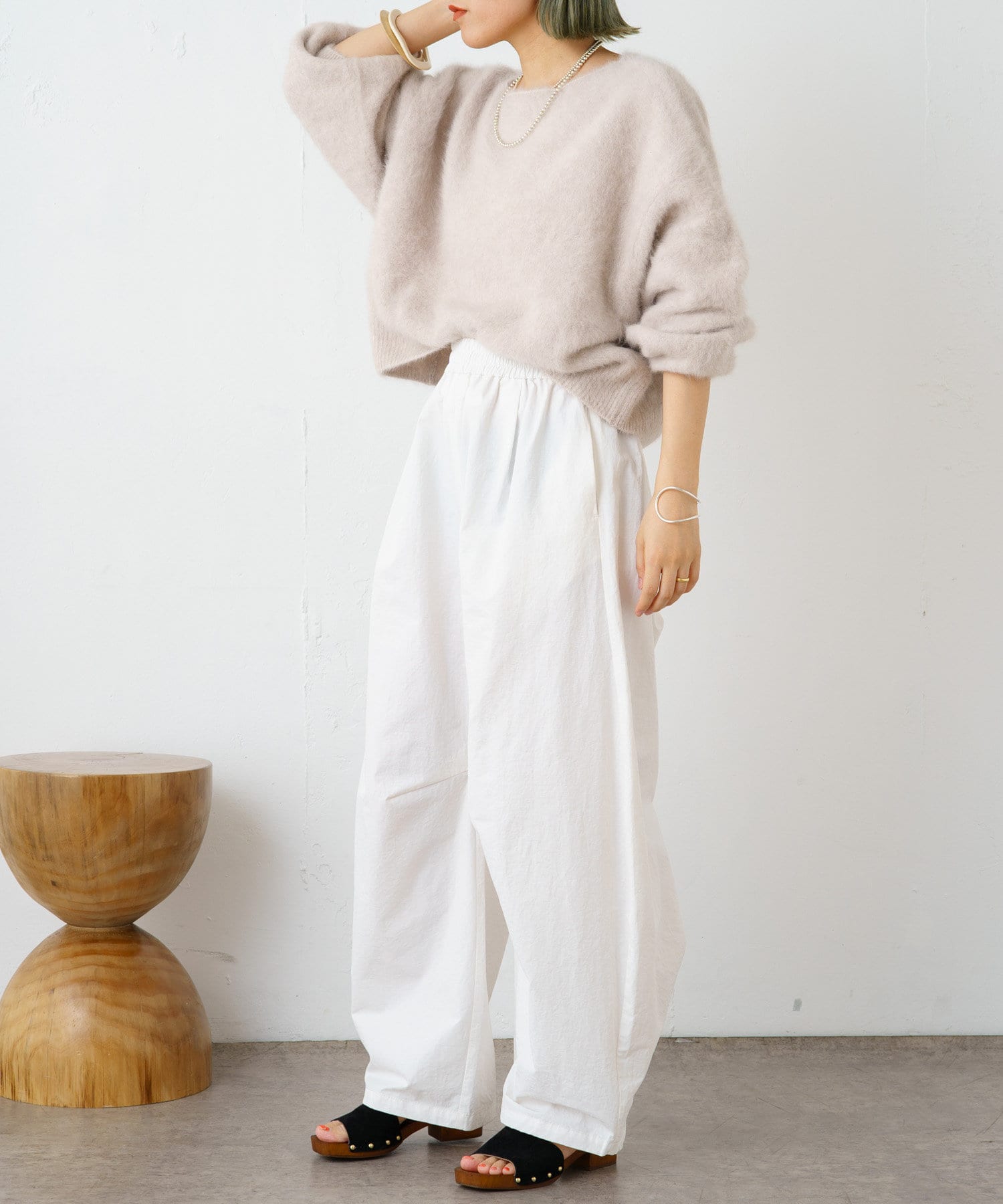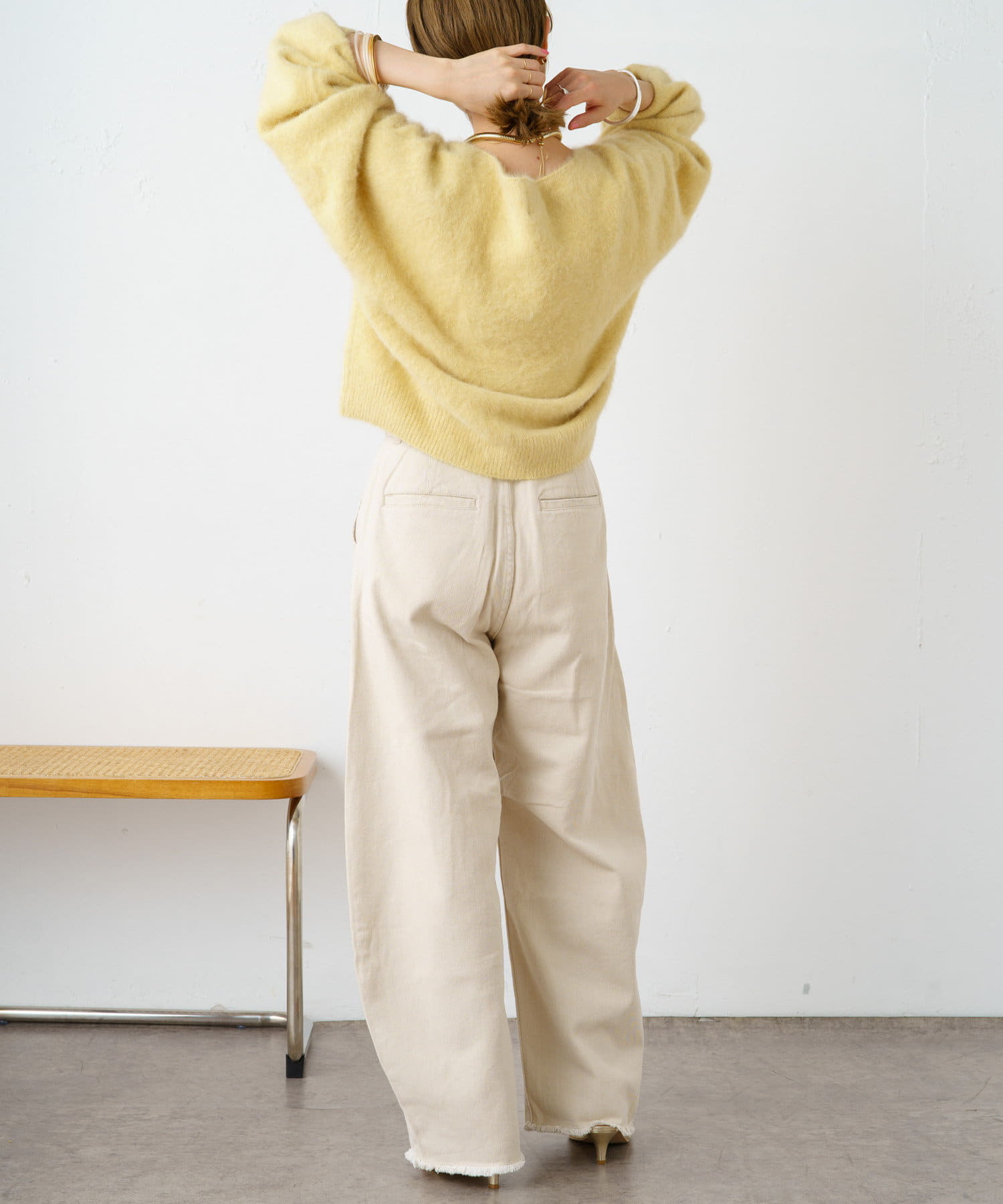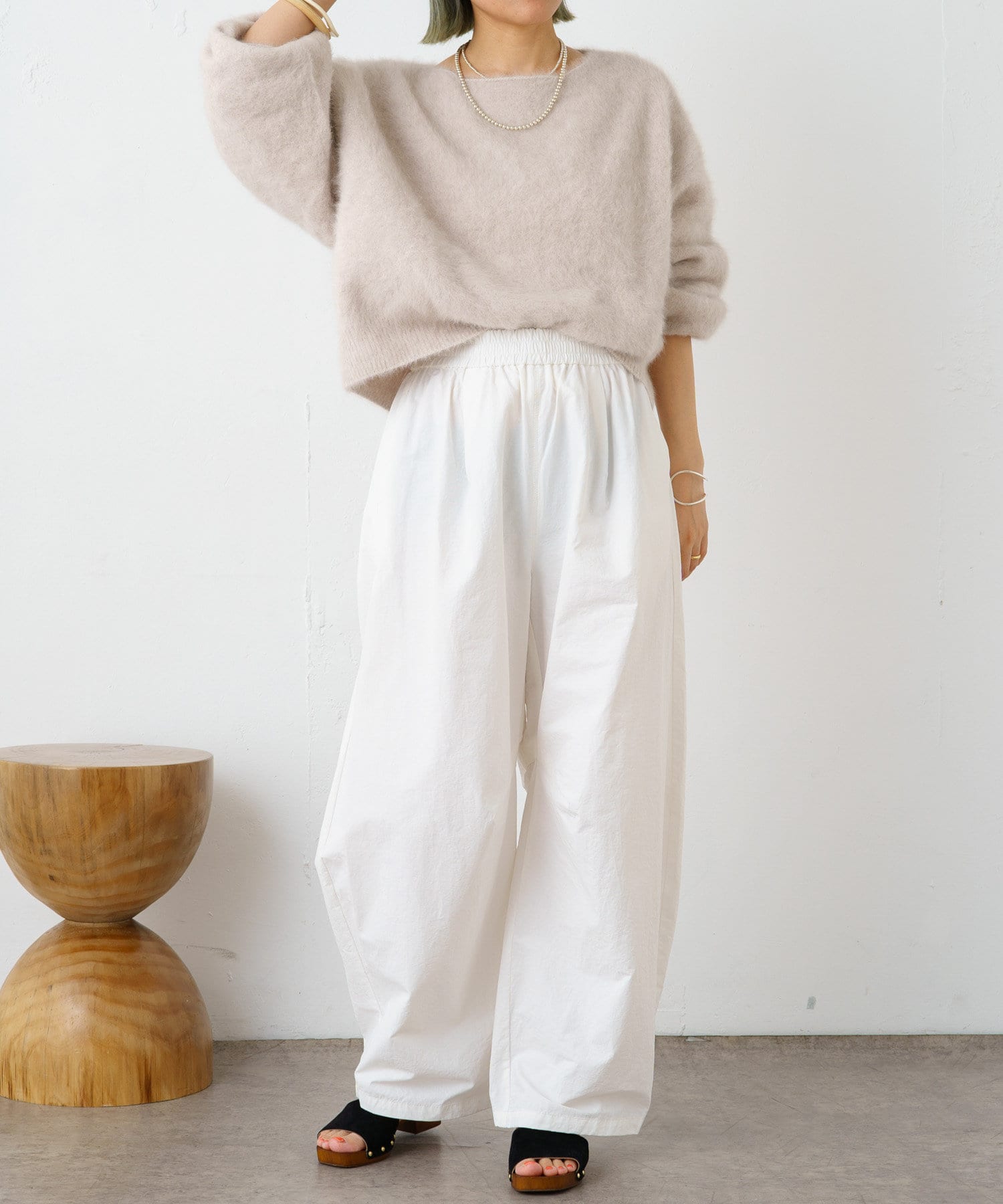 ・やや短めな身丈とワイドシルエットで合わせるボトムスを選ばない、デイリーにも着回したい上質アイテムです◎