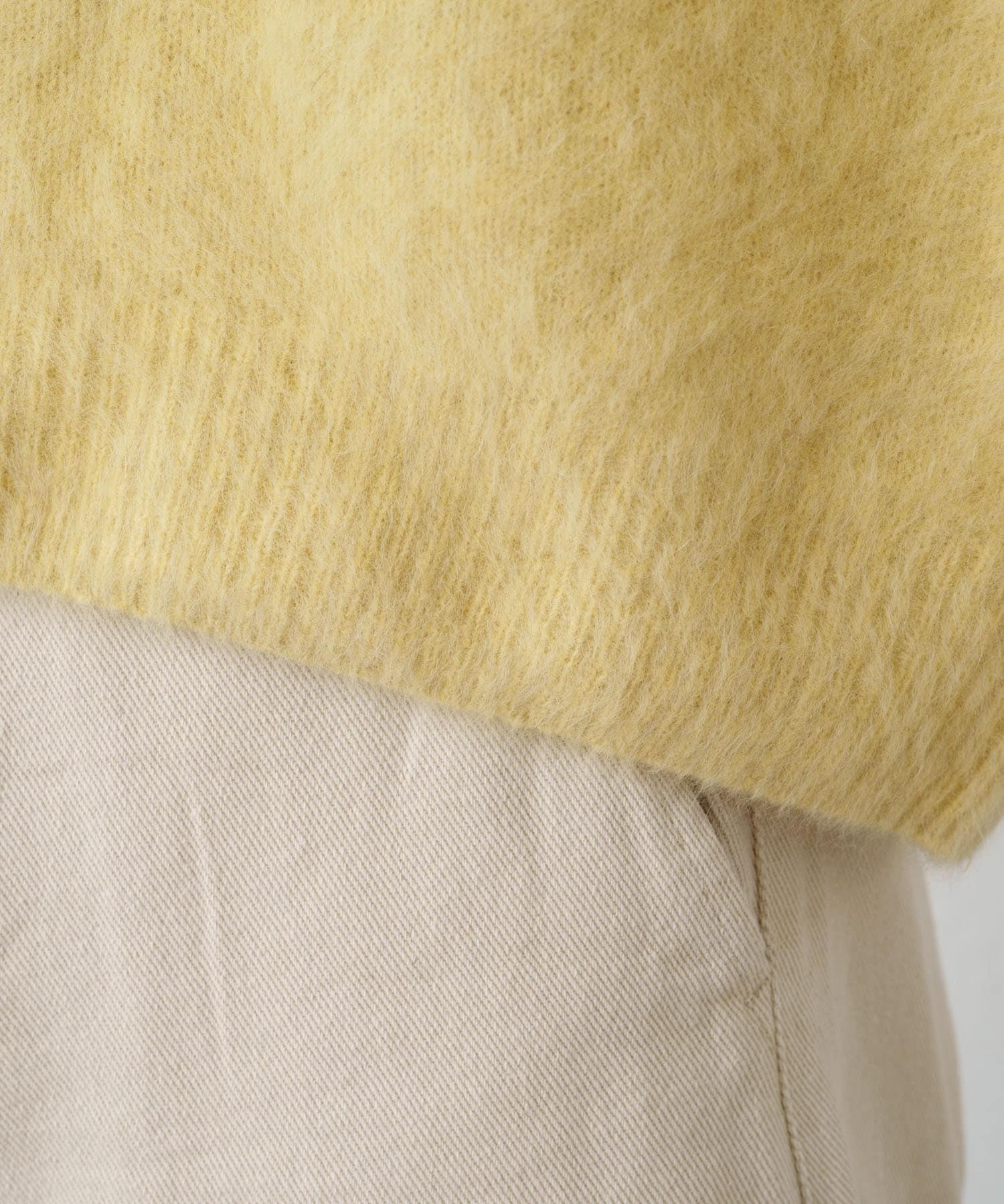 ・フォックスカシミヤのふわふわとした風合いと、保温性の高さが魅力です。チクチクしにくく、ふんわりと軽量でソフトな着心地を味わえます。