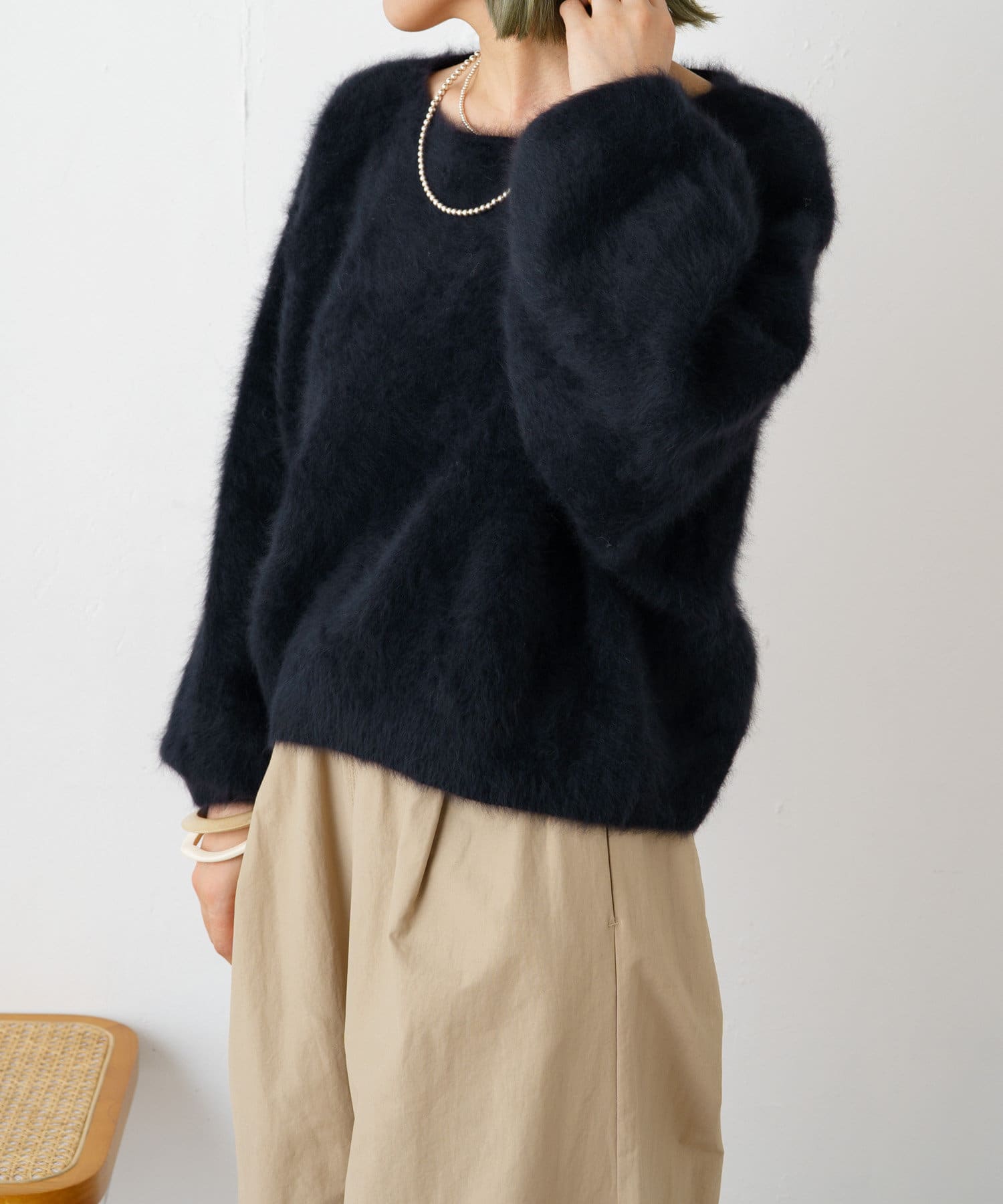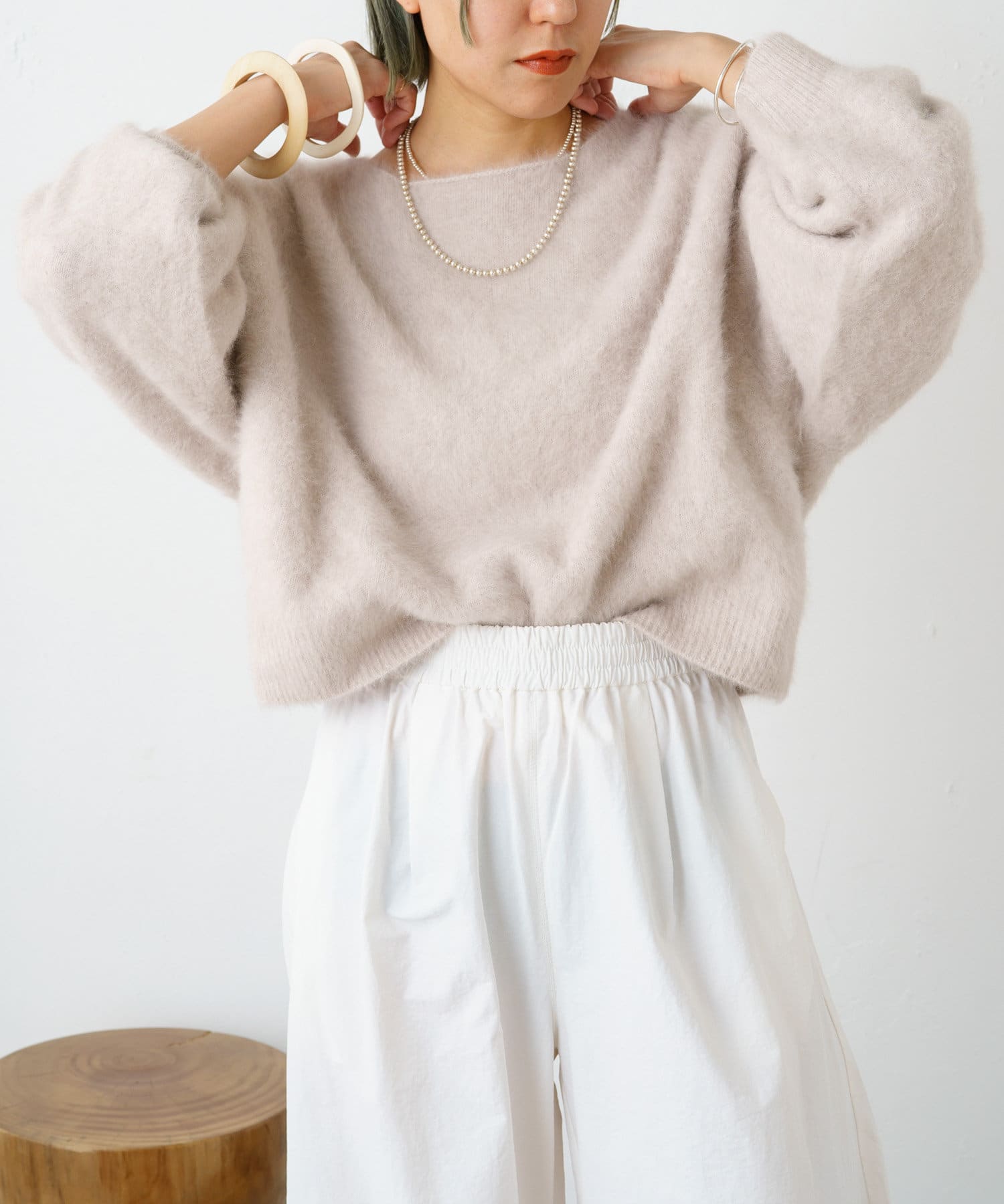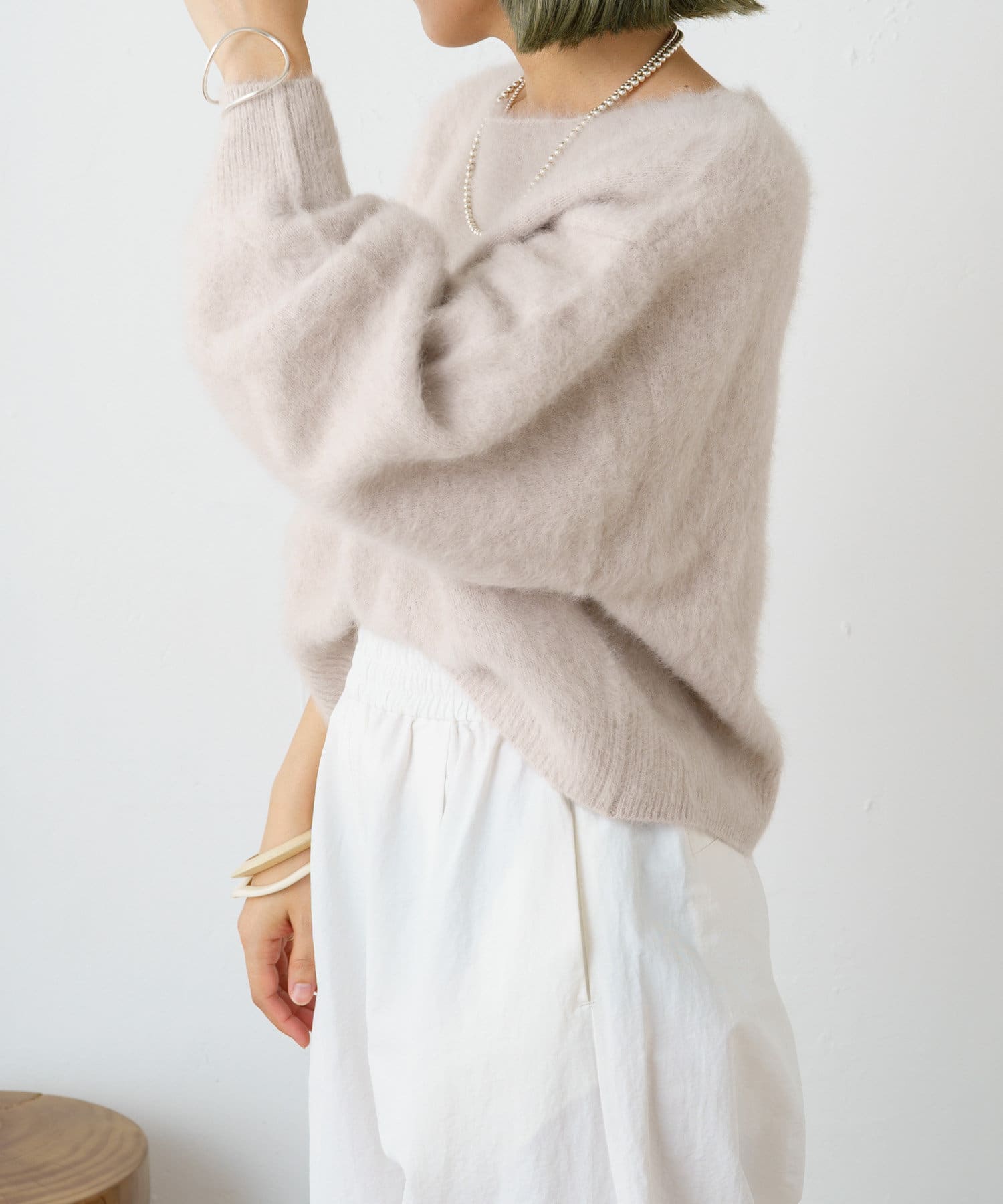 ふわふわの肌触りが気持ちいい、ファーカシミヤのプルオーバーニット
