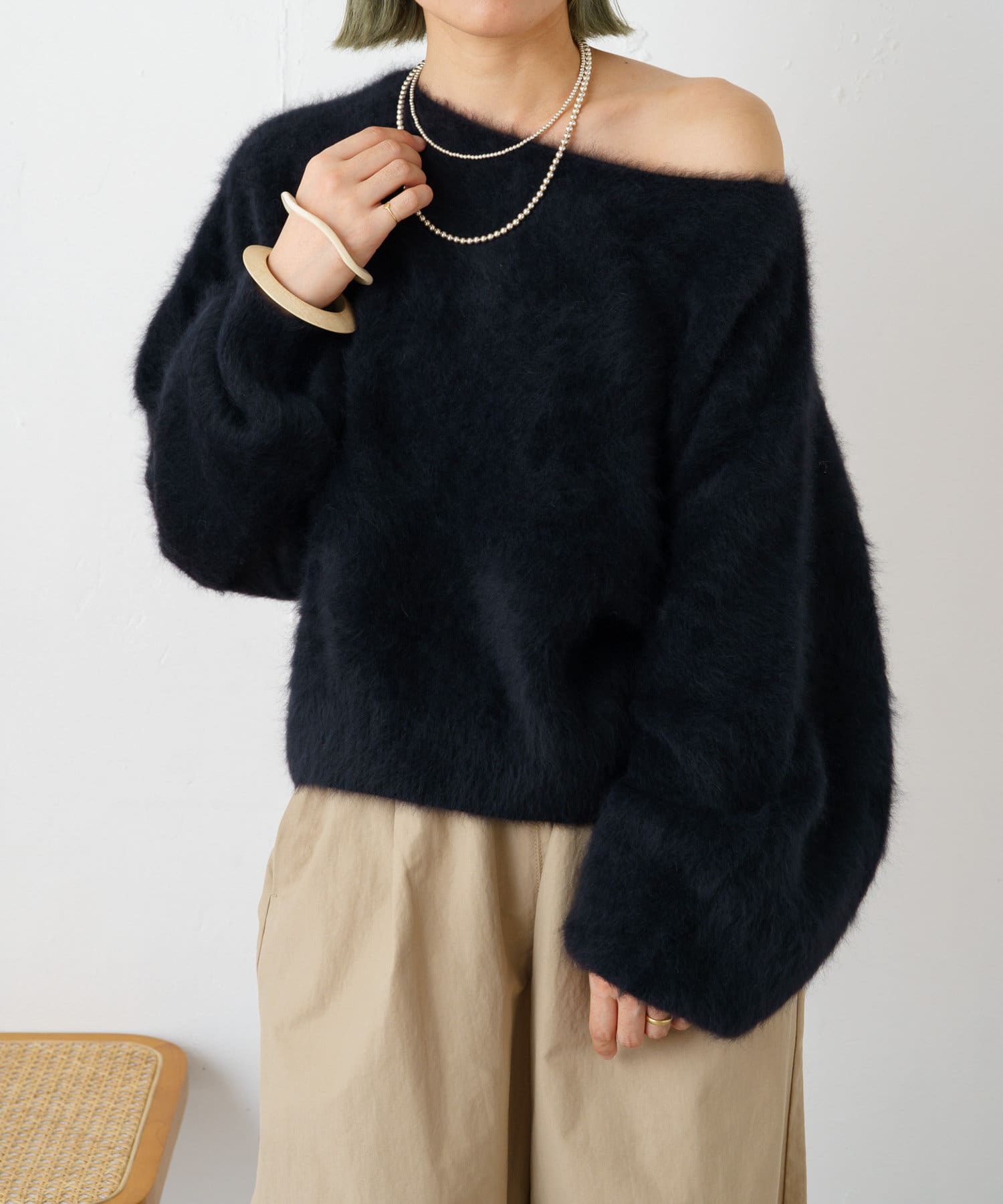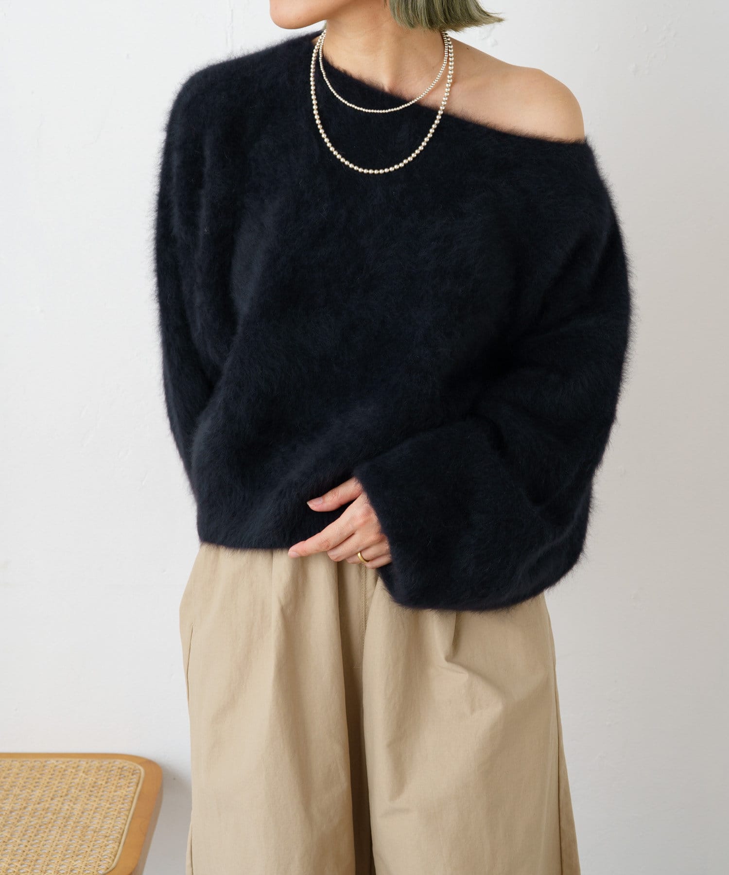 【大人カジュアルな上質ニット】ファーカシミヤワイドニットプルオーバー