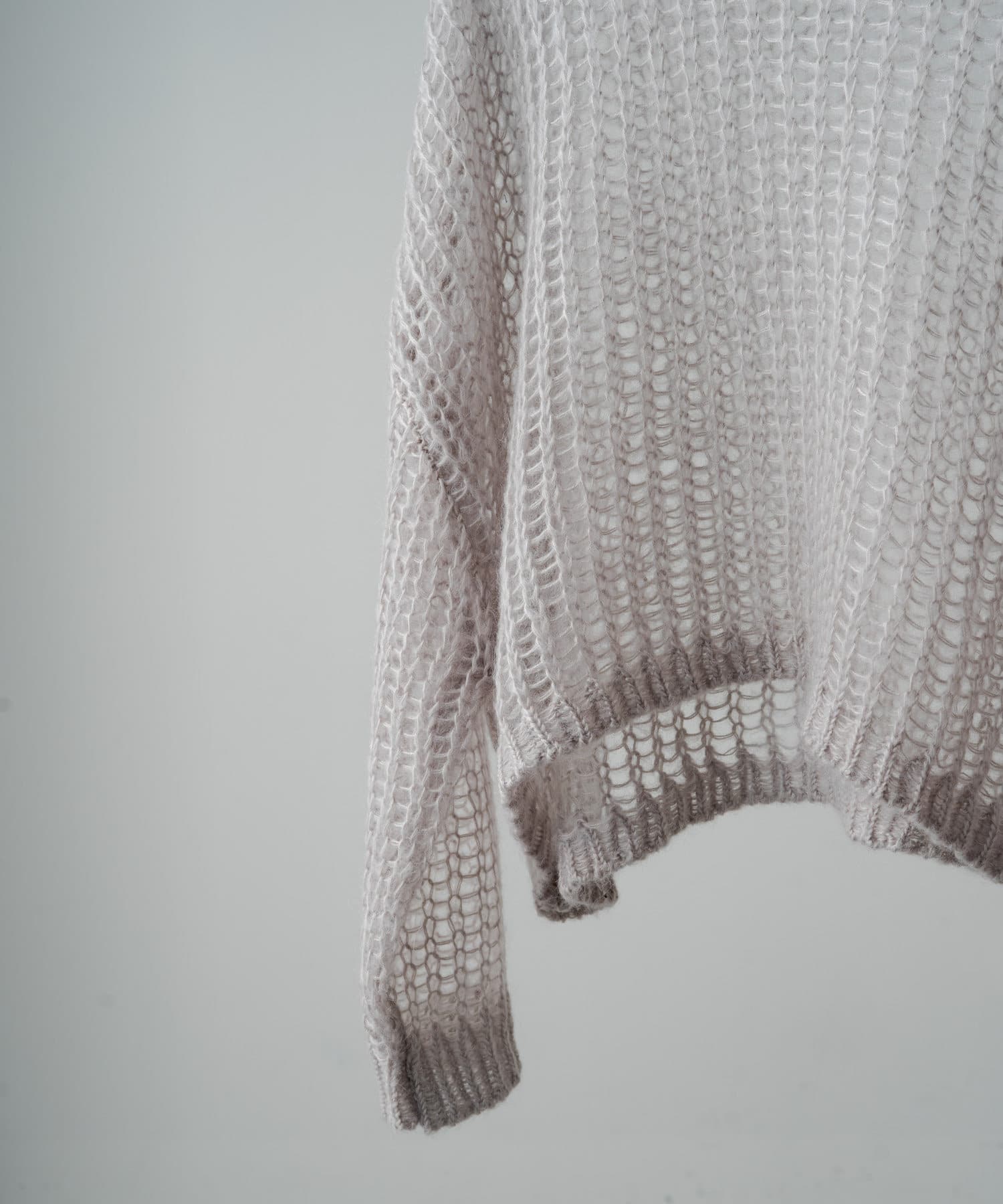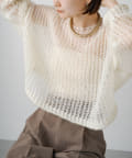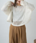 ・冬らしいざっくりとしたハシゴ編みの、女性らしい雰囲気たっぷりのニットプルオーバー。