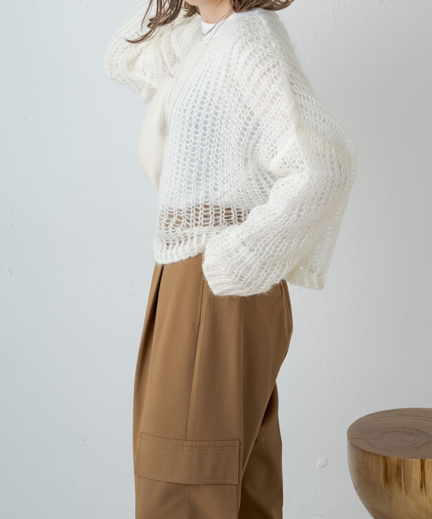 ・程よいショート丈なのでハイウエストのボトムスを合わせていただくと、さらにスタイルアップ効果も叶えてくれる一枚です。