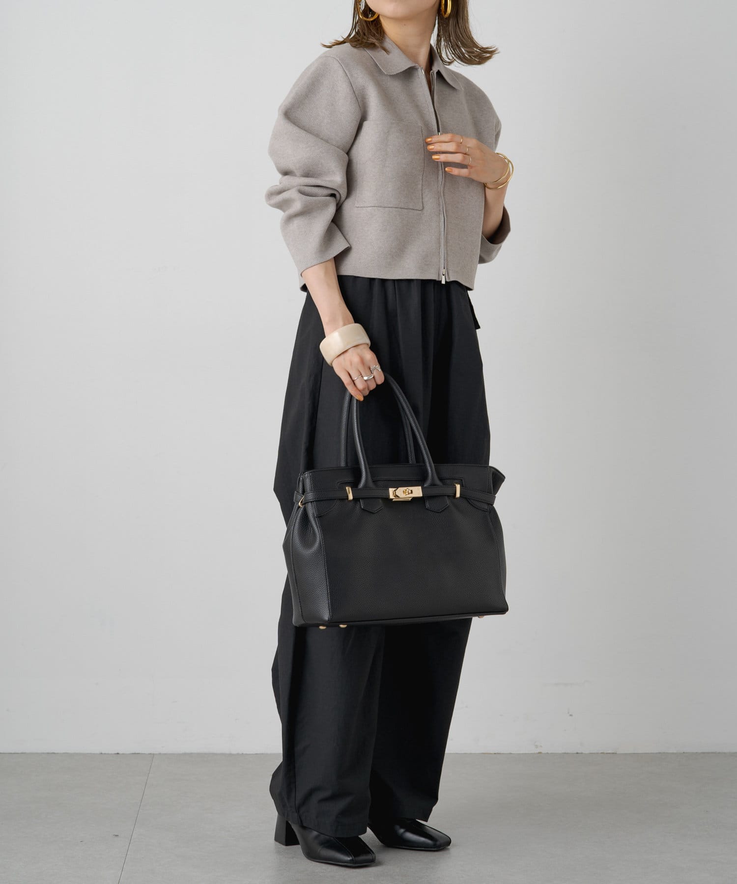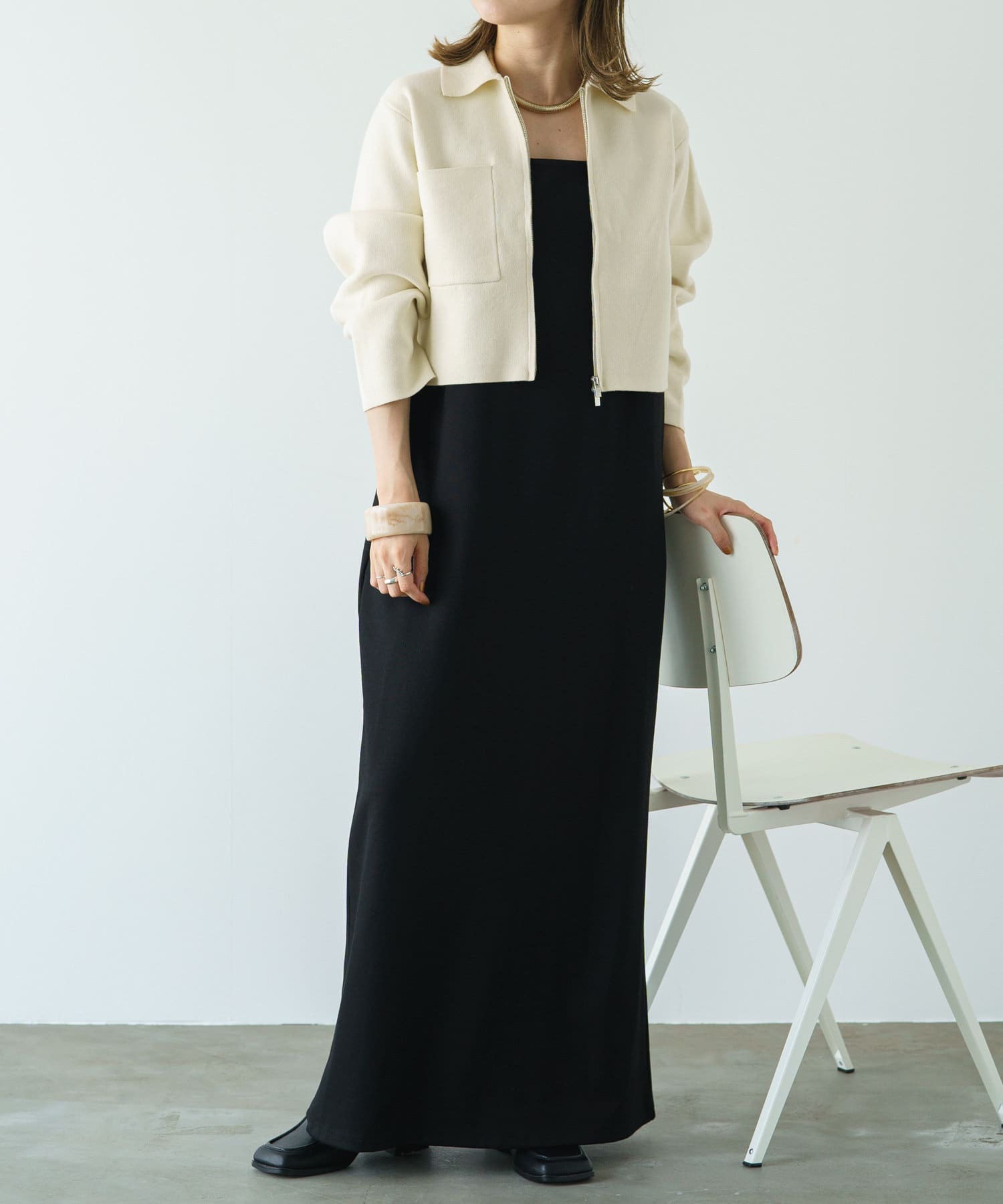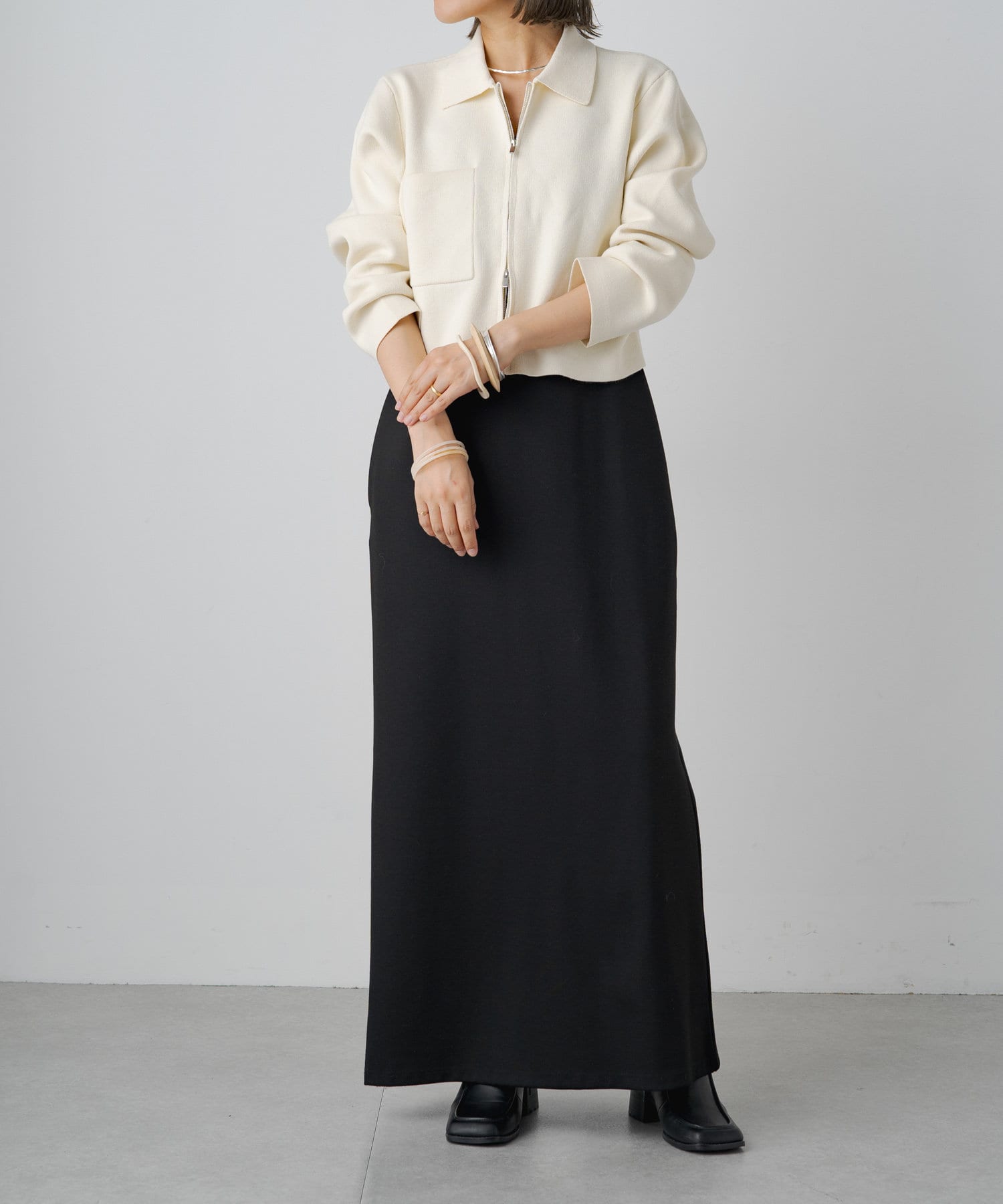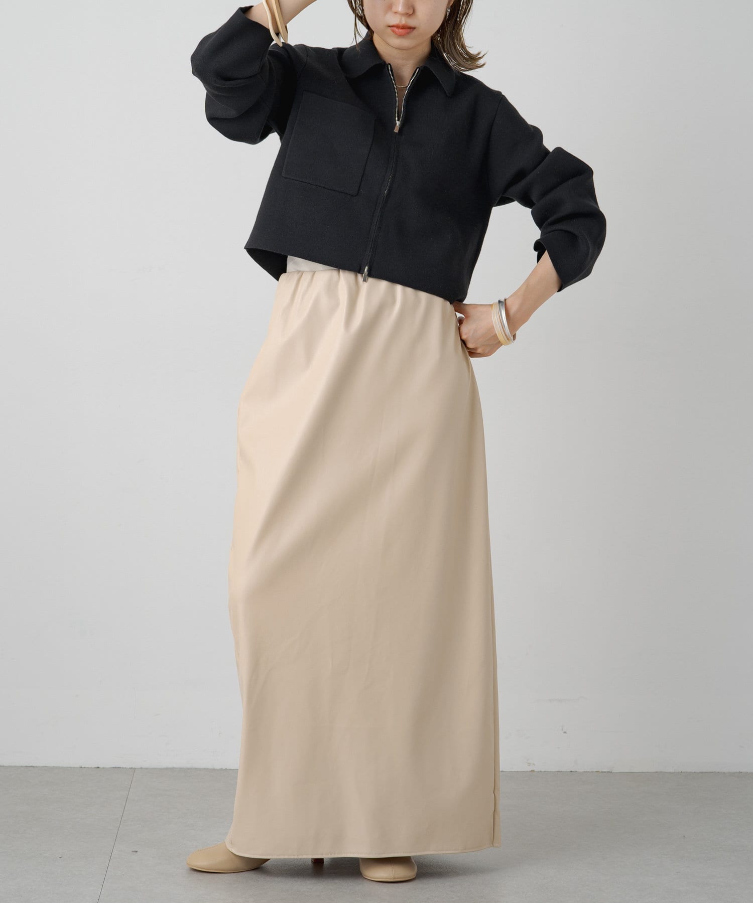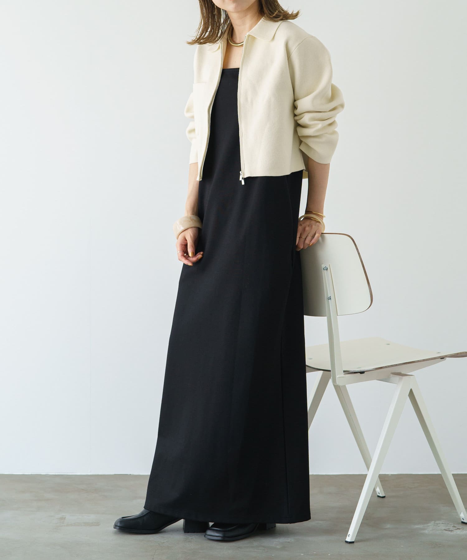 ・程よいショート丈なのでハイウエストのボトムスやボリュームのあるスカートを合わせていただくと、さらにスタイルアップ効果も叶えてくれる一枚です。