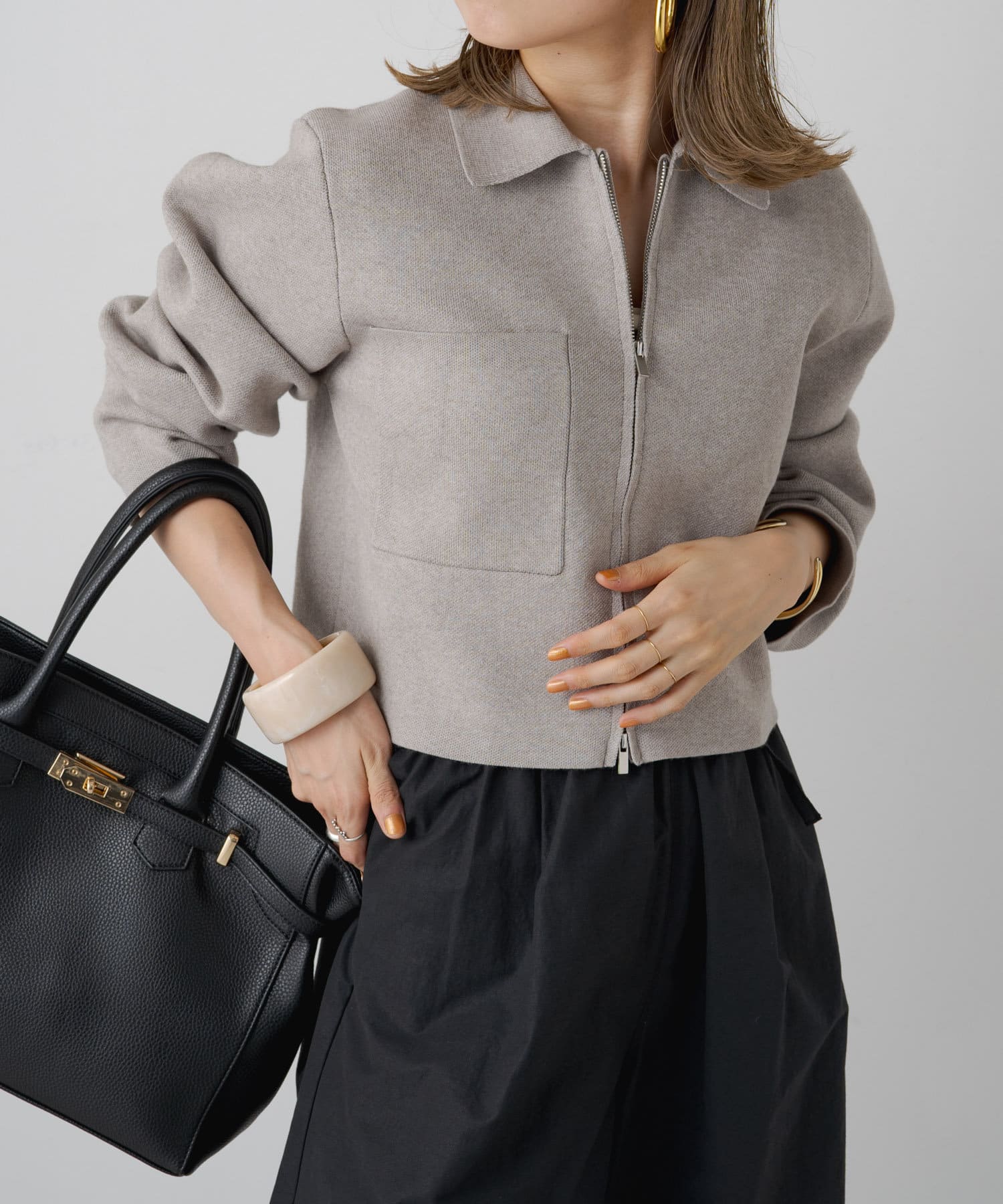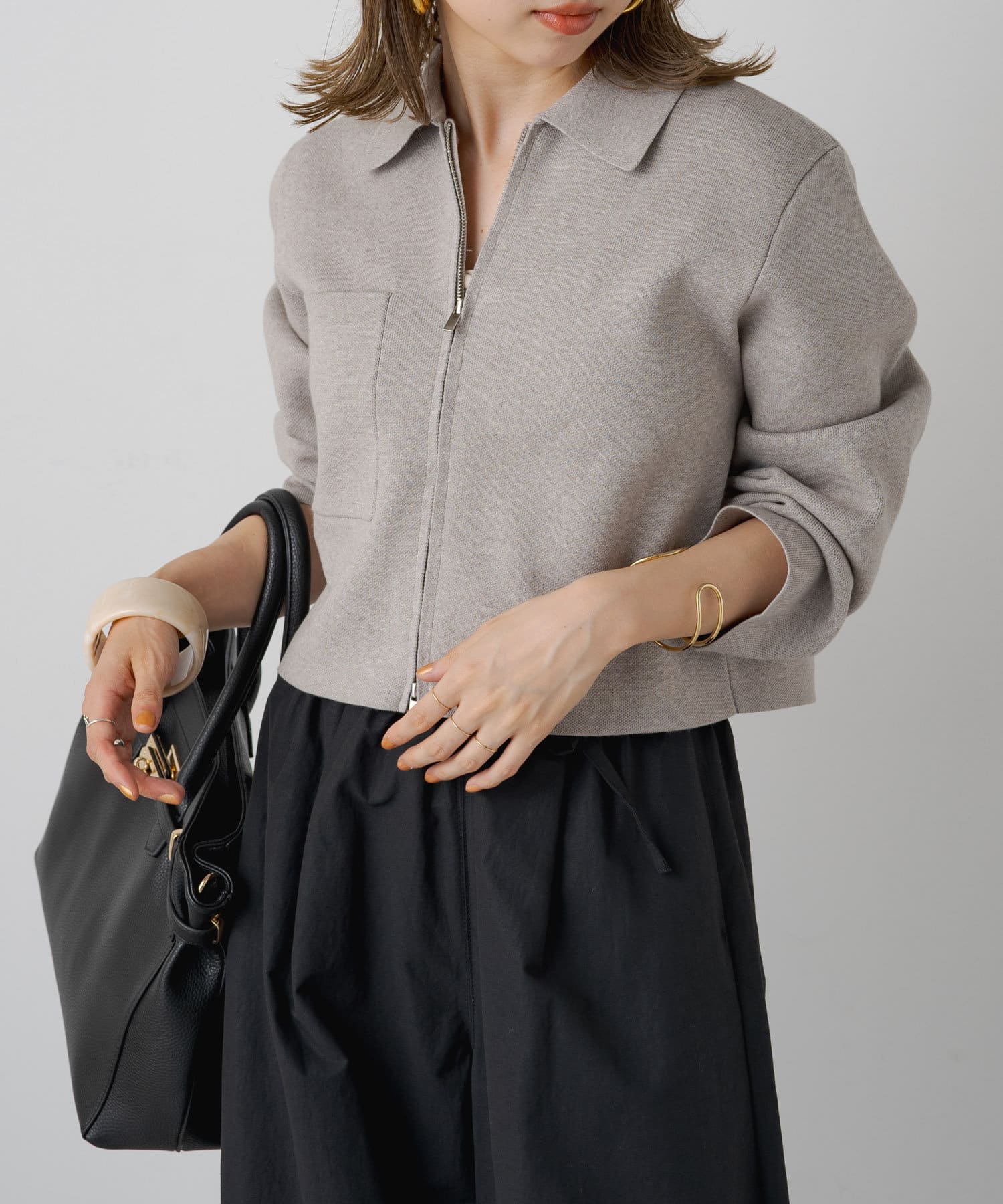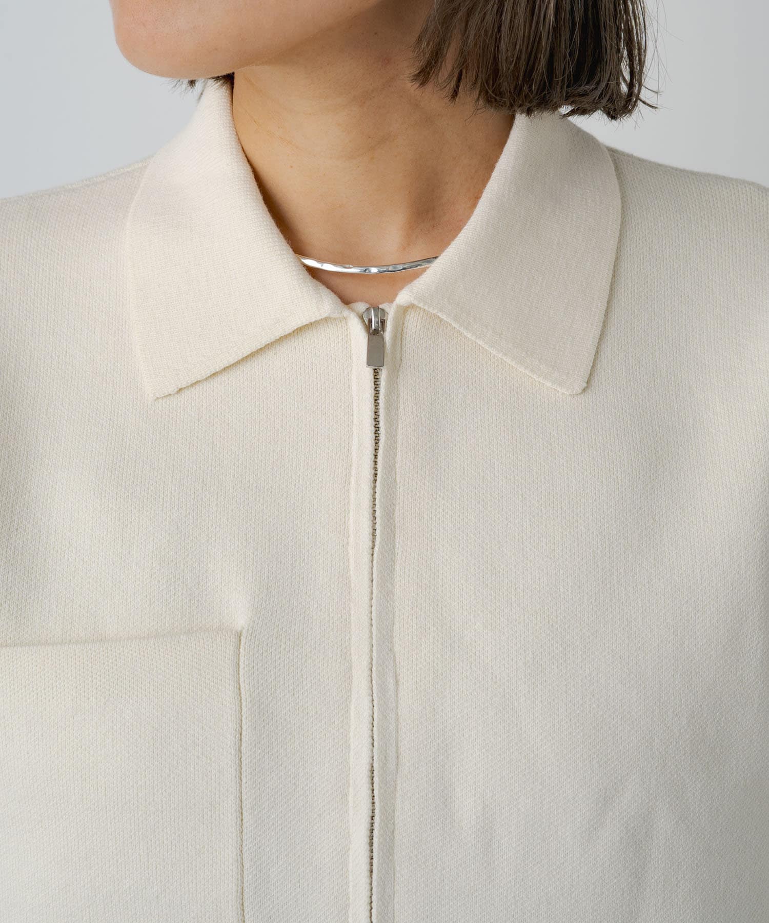 ・カジュアルでありながら上品な印象の、襟付きジップカーディガン。