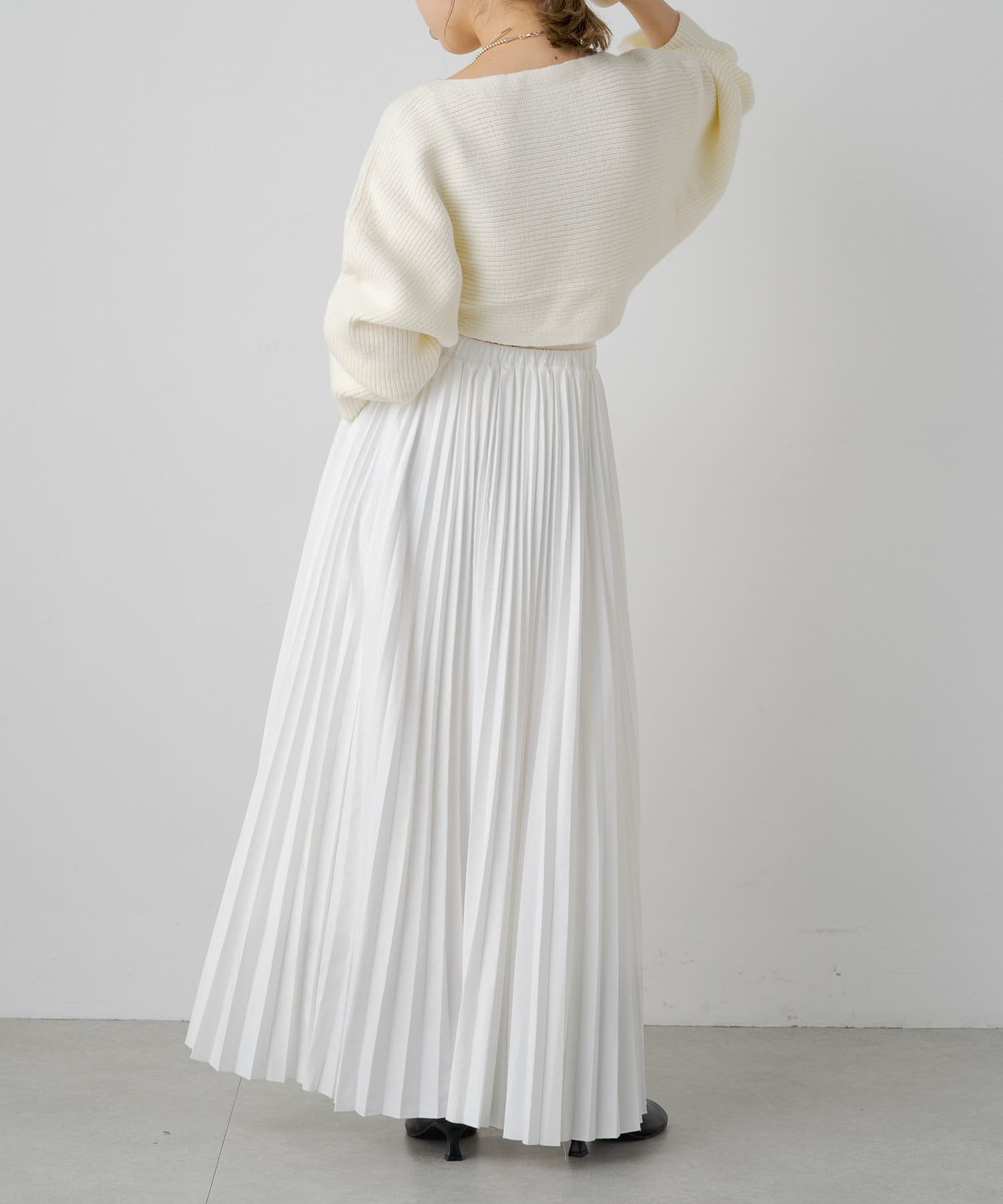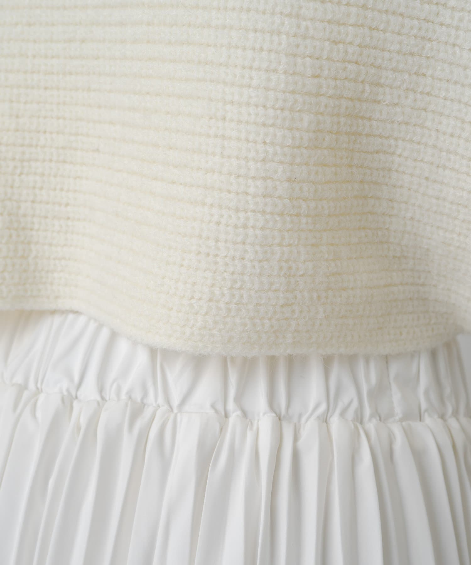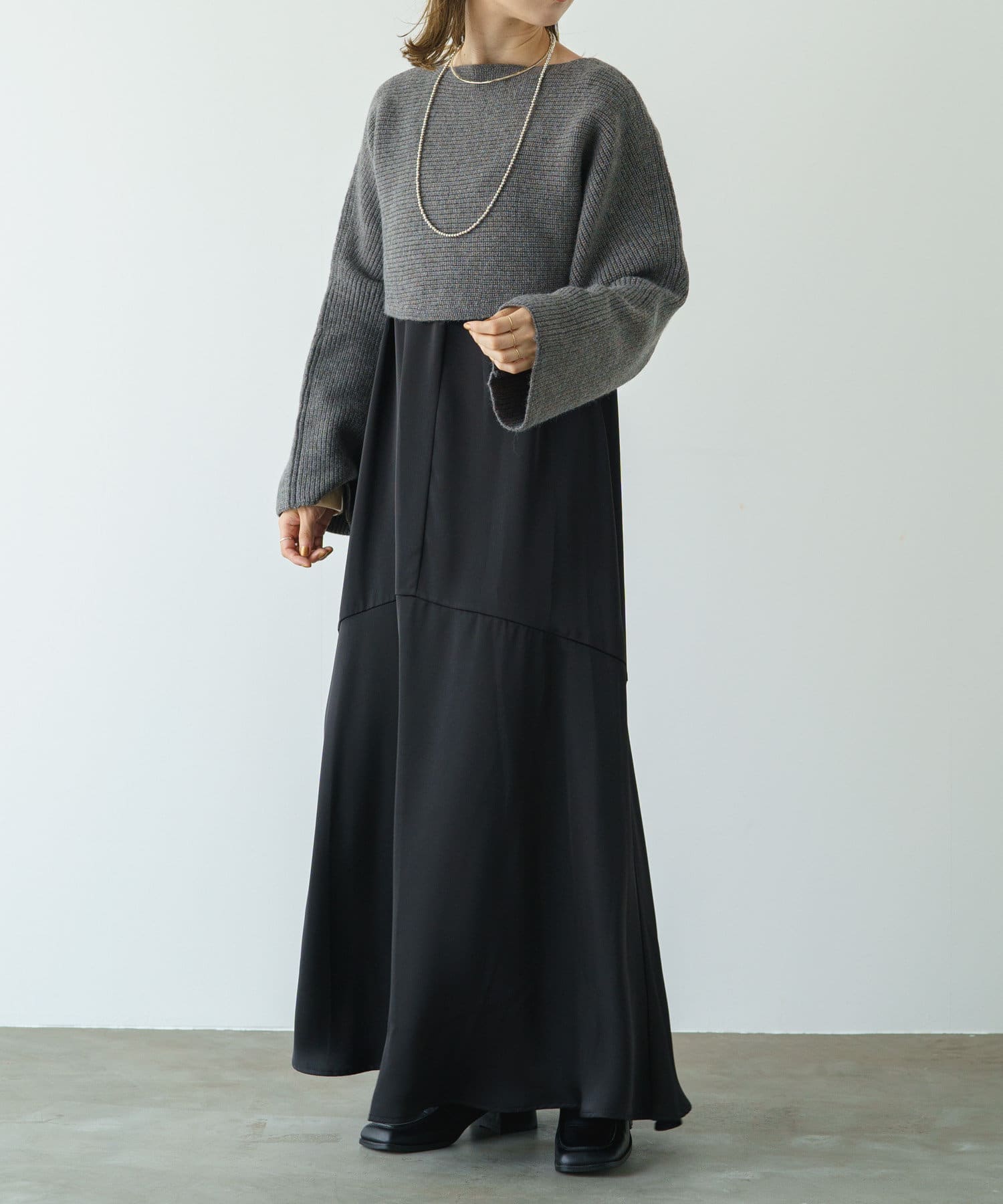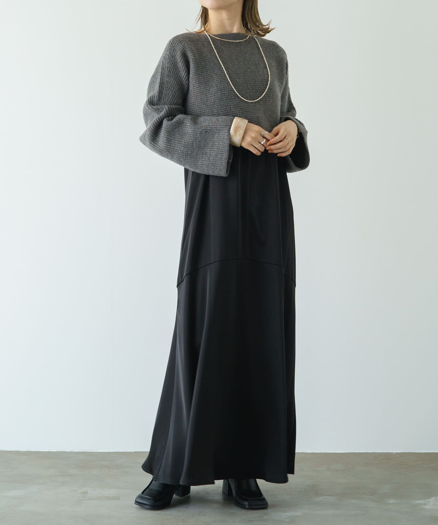 ・シンプルながらショート丈が今年らしい、旬のレイヤードスタイルが楽しめるショートニット。