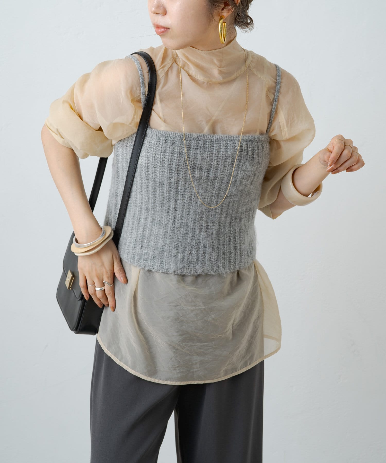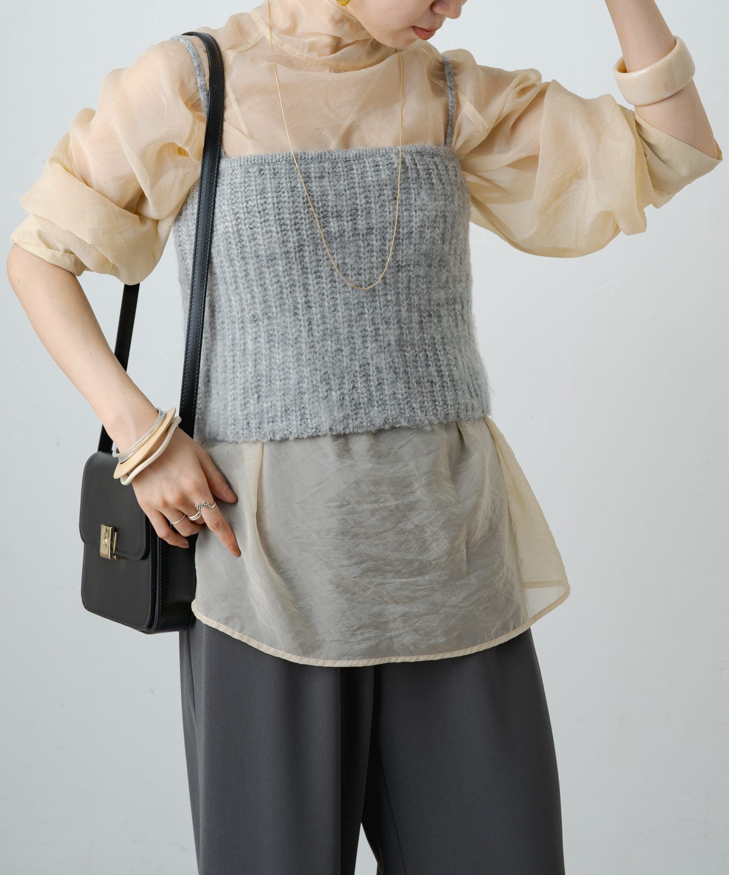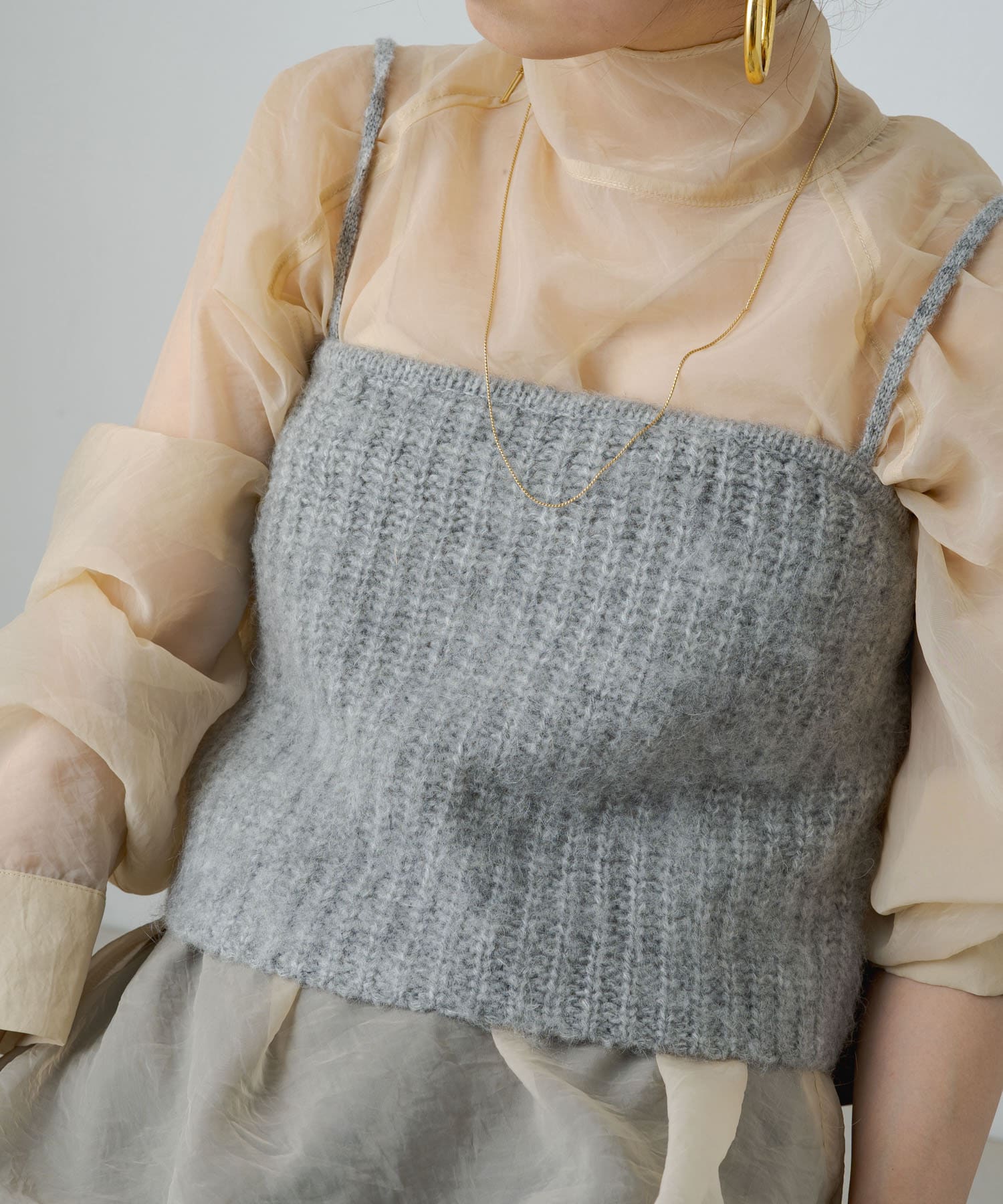 ・旬なビスチェをふわふわのウールニットで女性らしく仕上げた一着。