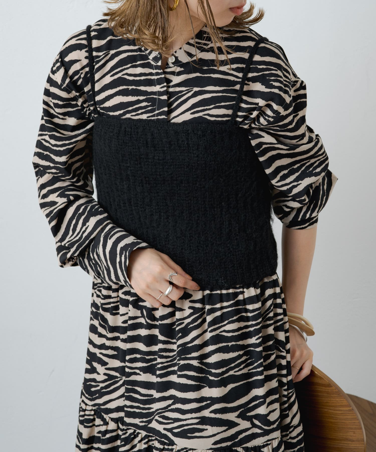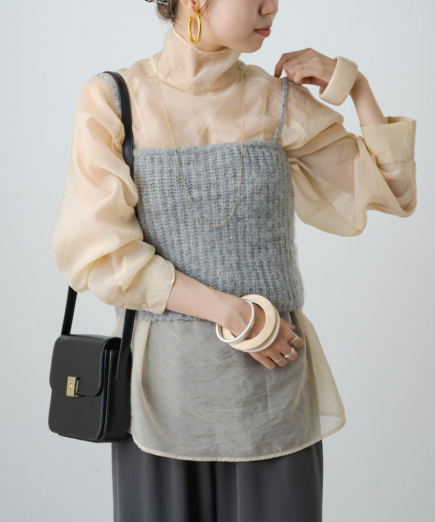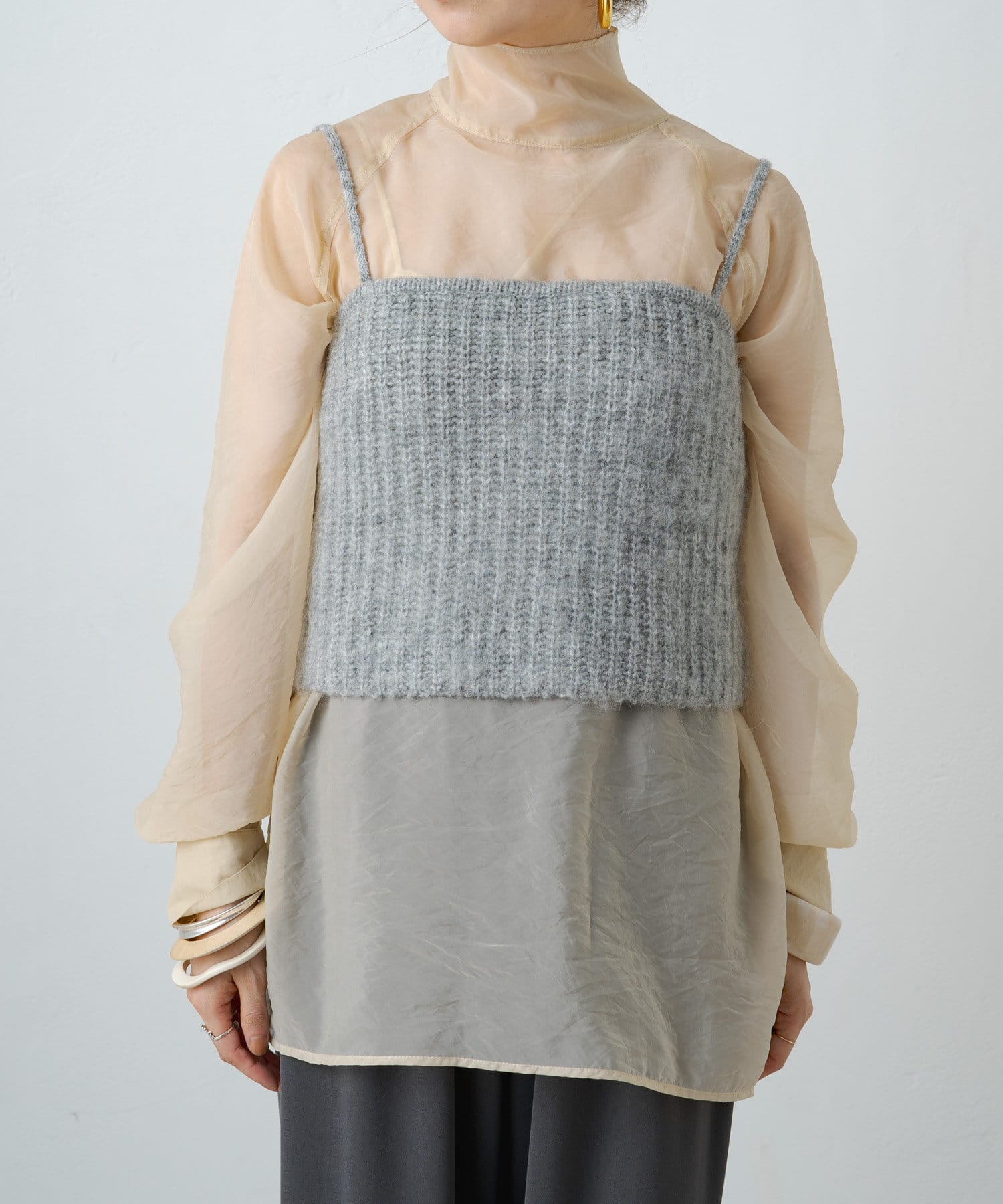 ・旬なビスチェをふわふわのウールニットで女性らしく仕上げた一着。