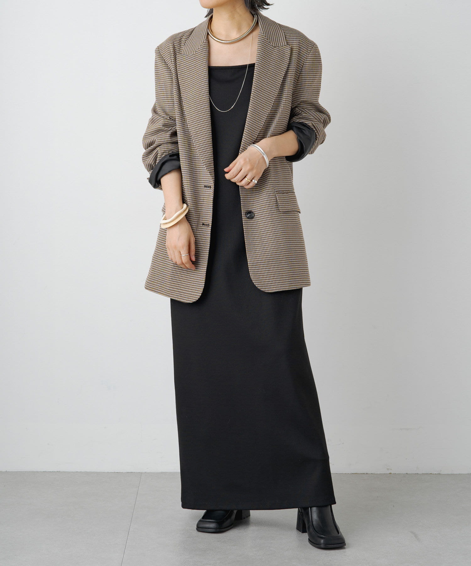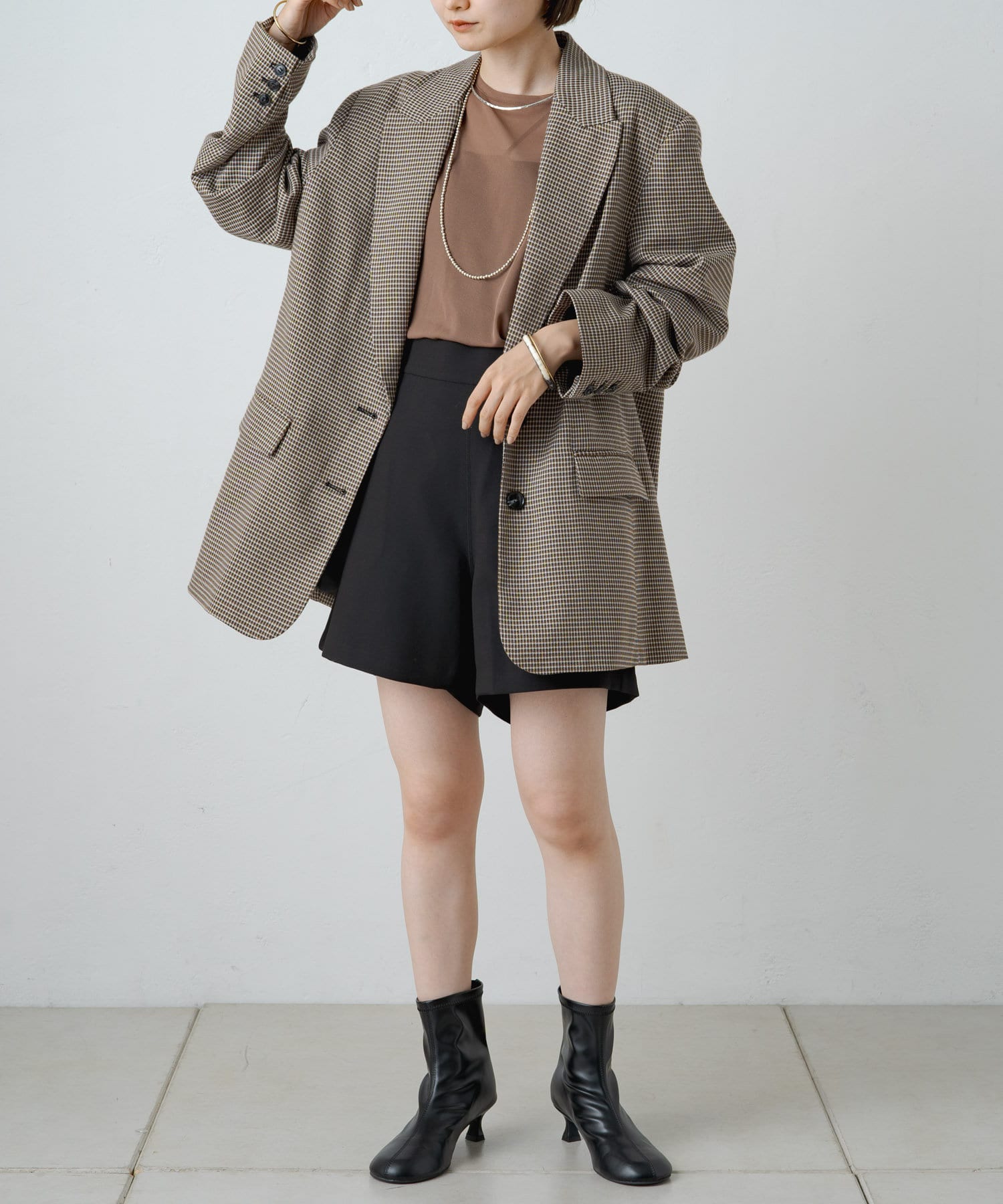 ・少し長めの着丈なので合わせるアイテムを選ばず、オン、オフ幅広く使えるジャケットです。