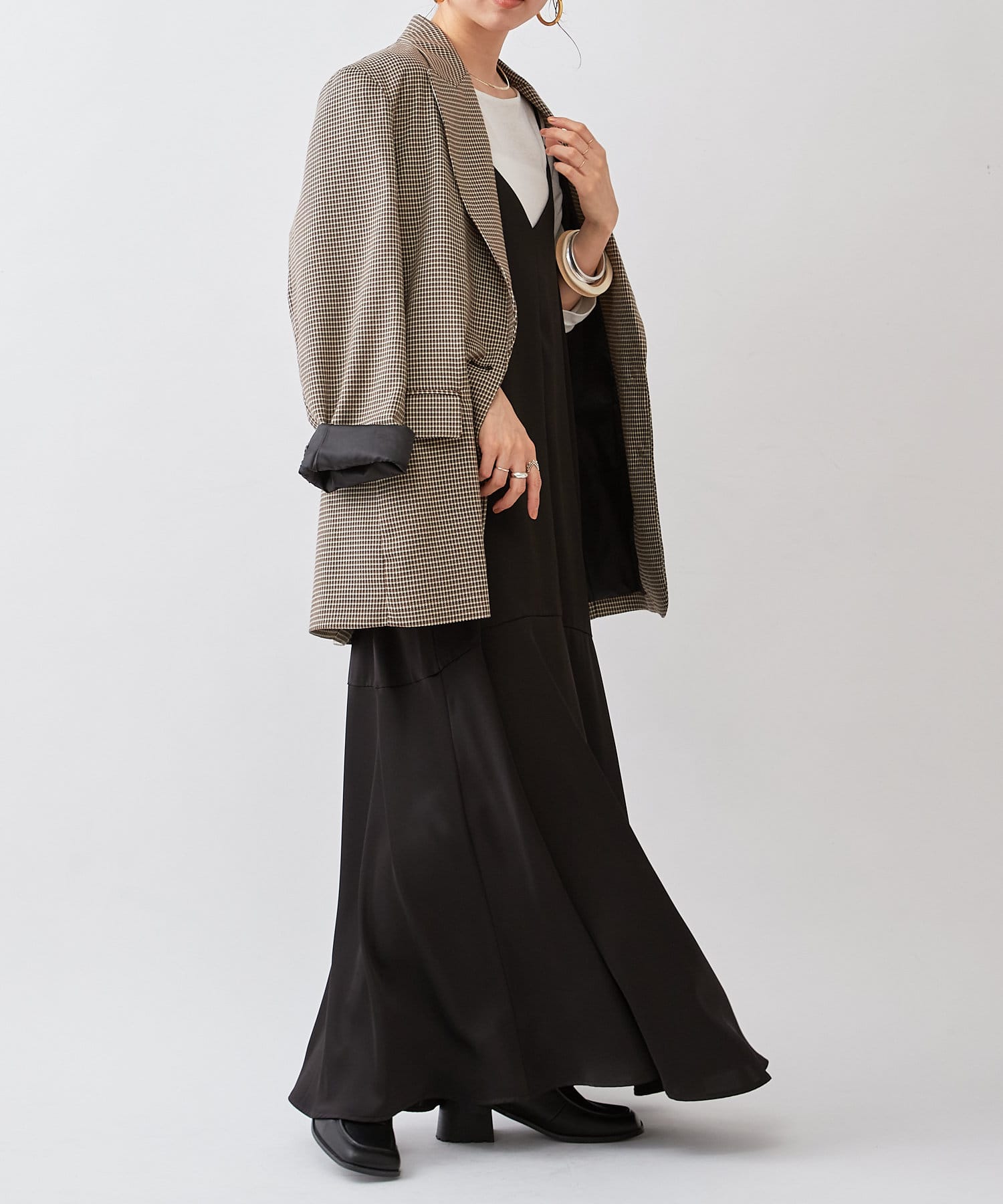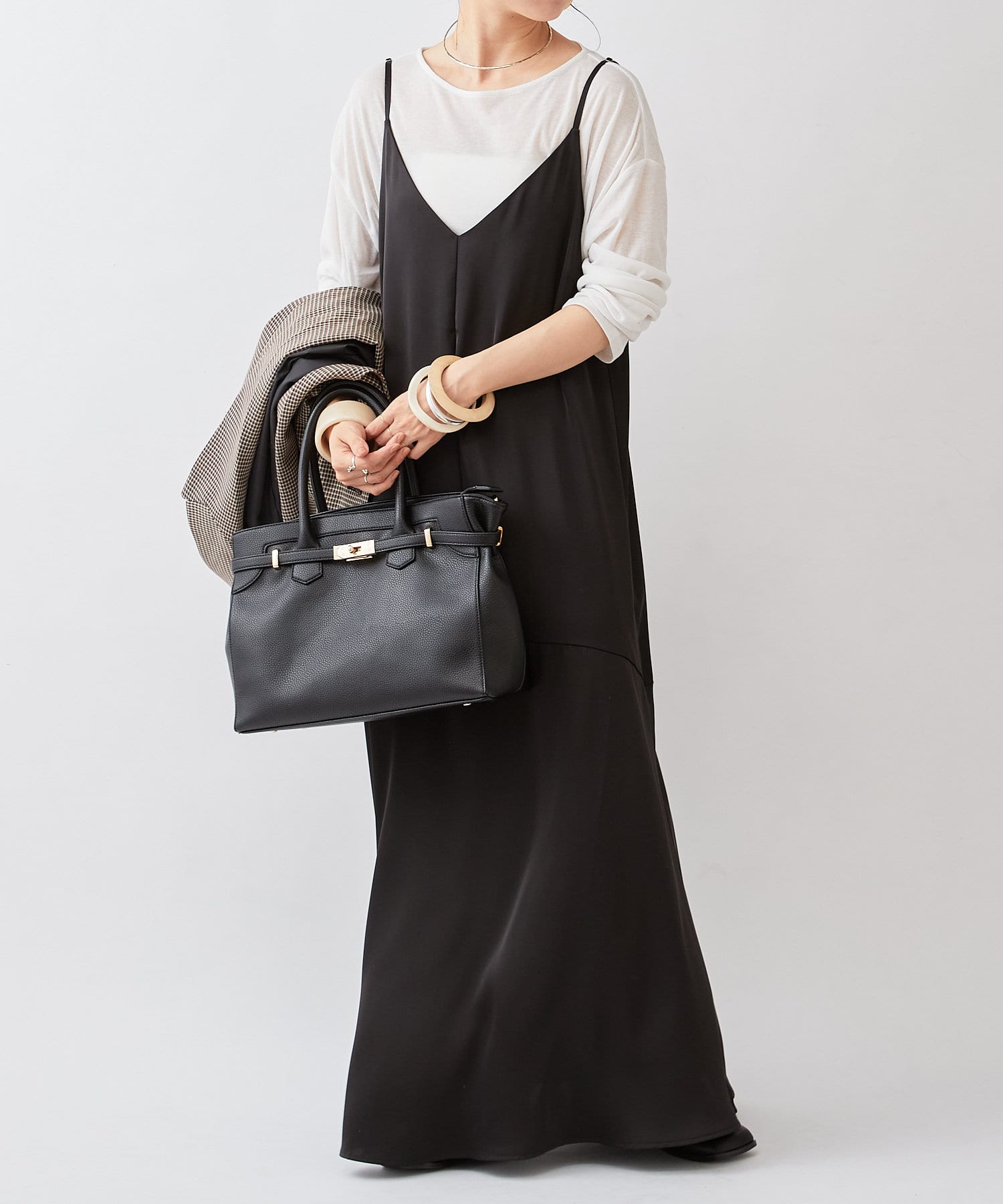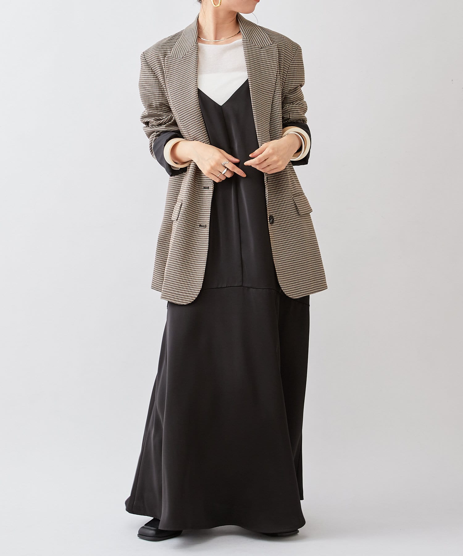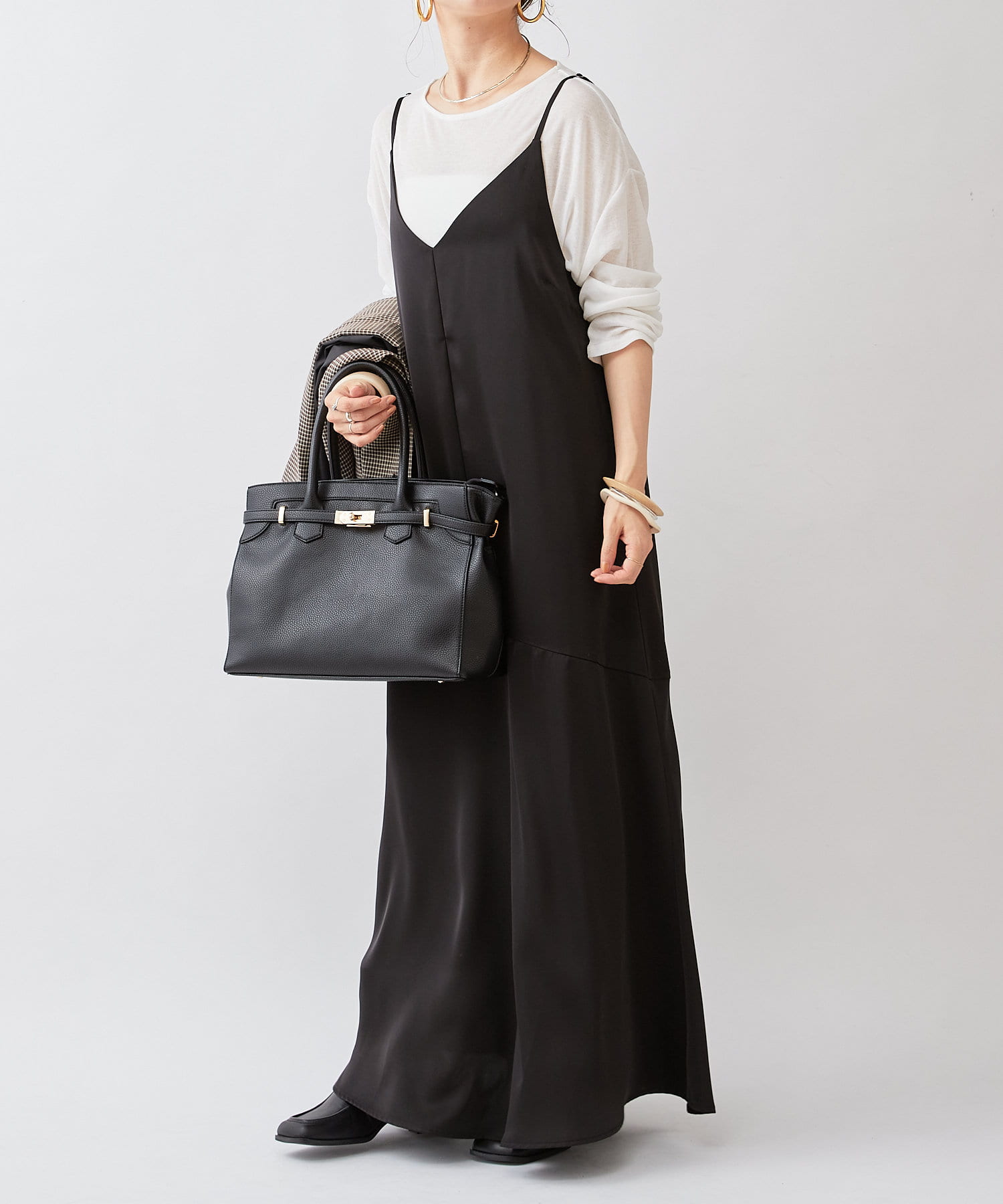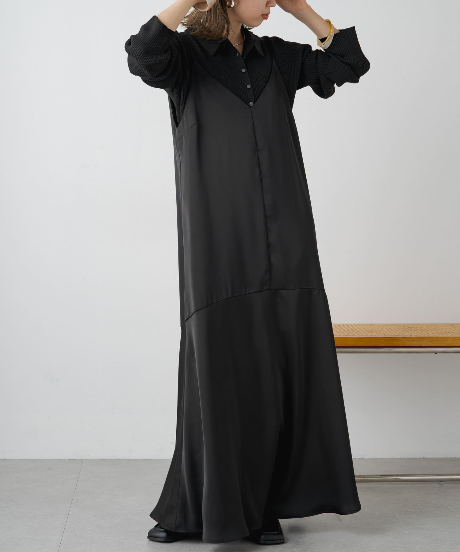 ・柔らかなつや感が派手になり過ぎず、上品な雰囲気を演出してくれるサテンワンピース。