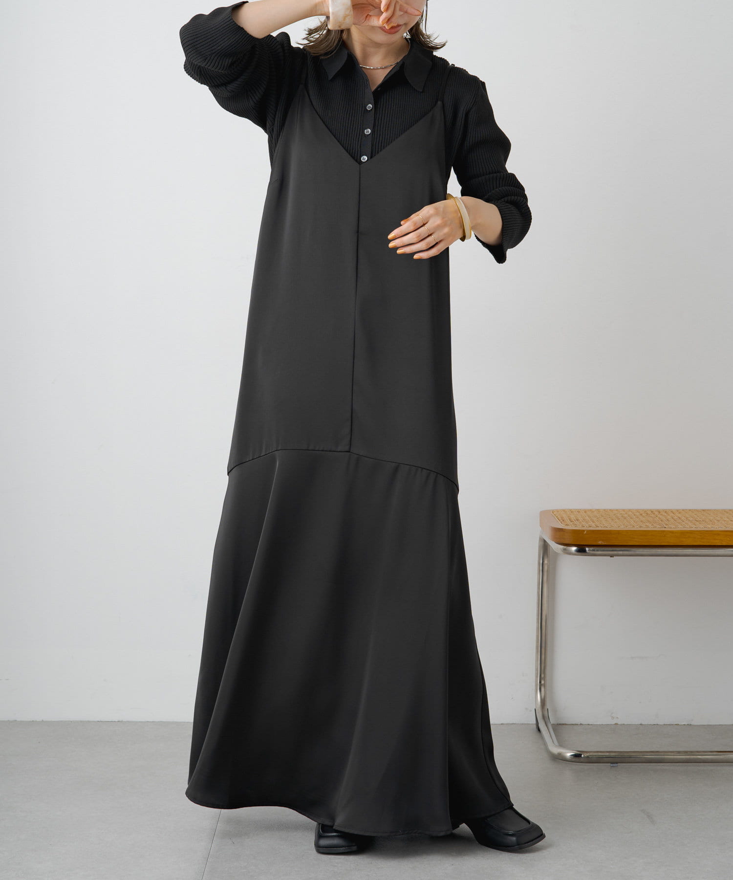 【オールシーズン使える◎】サテンフレアキャミワンピース