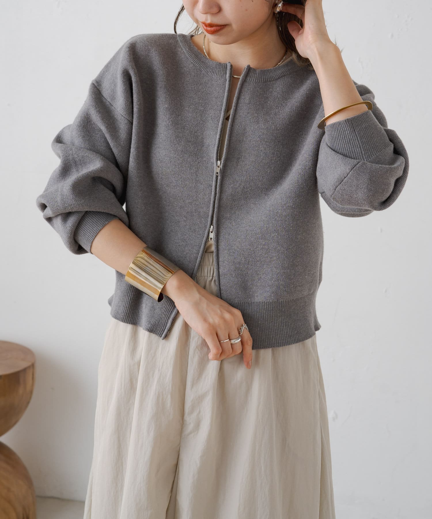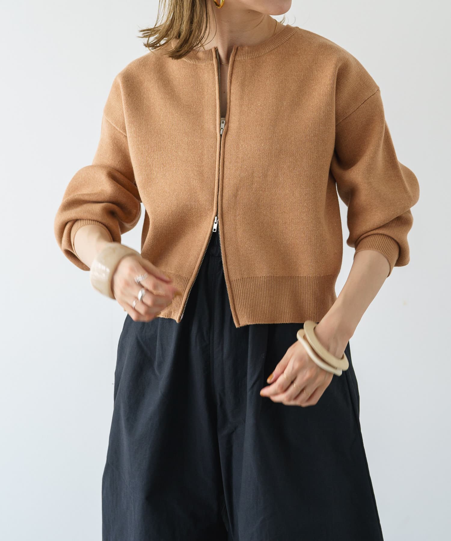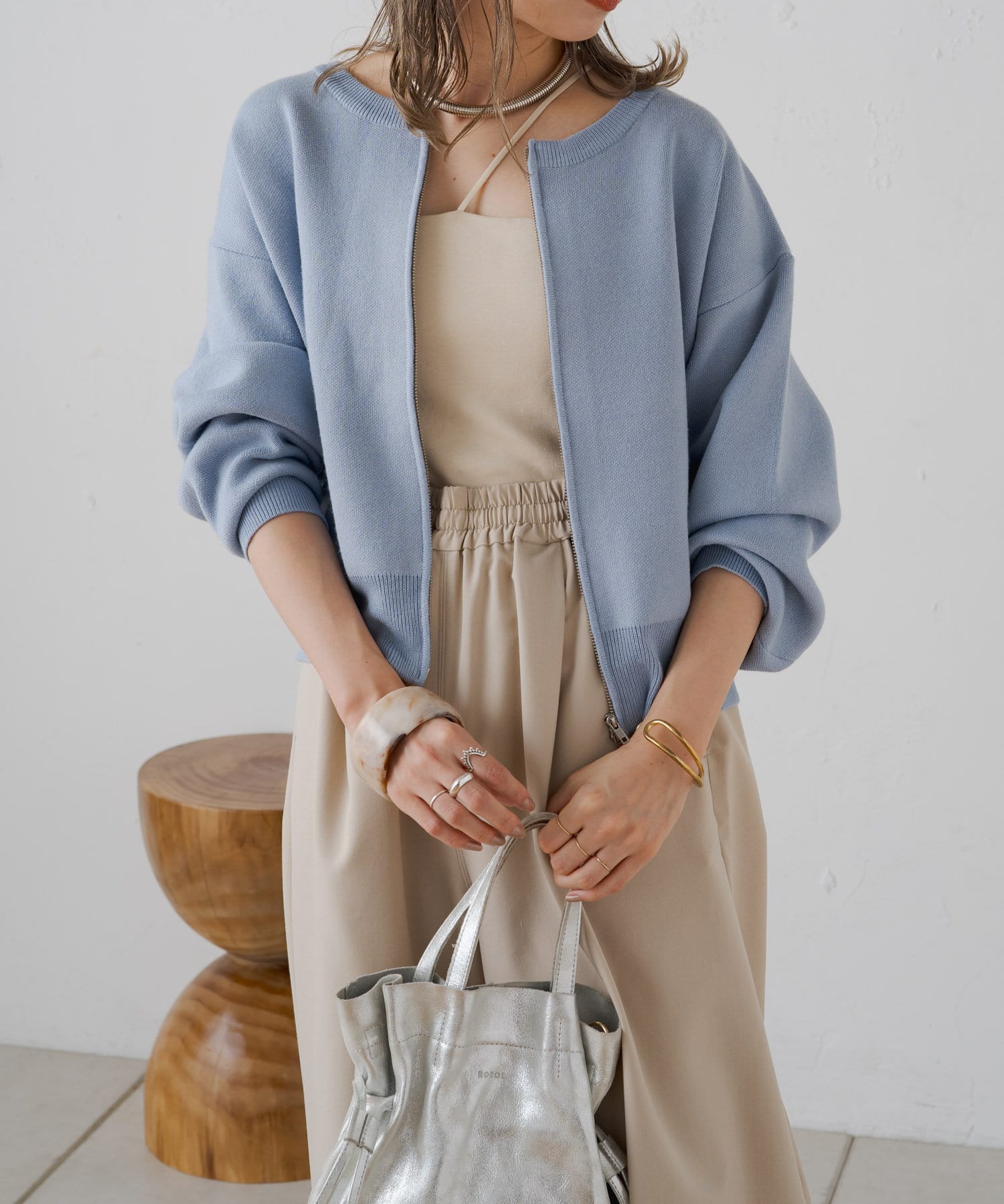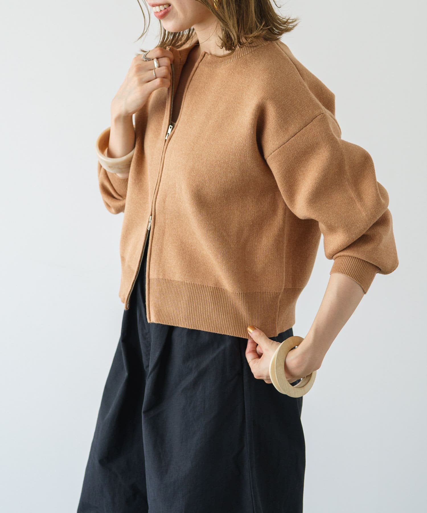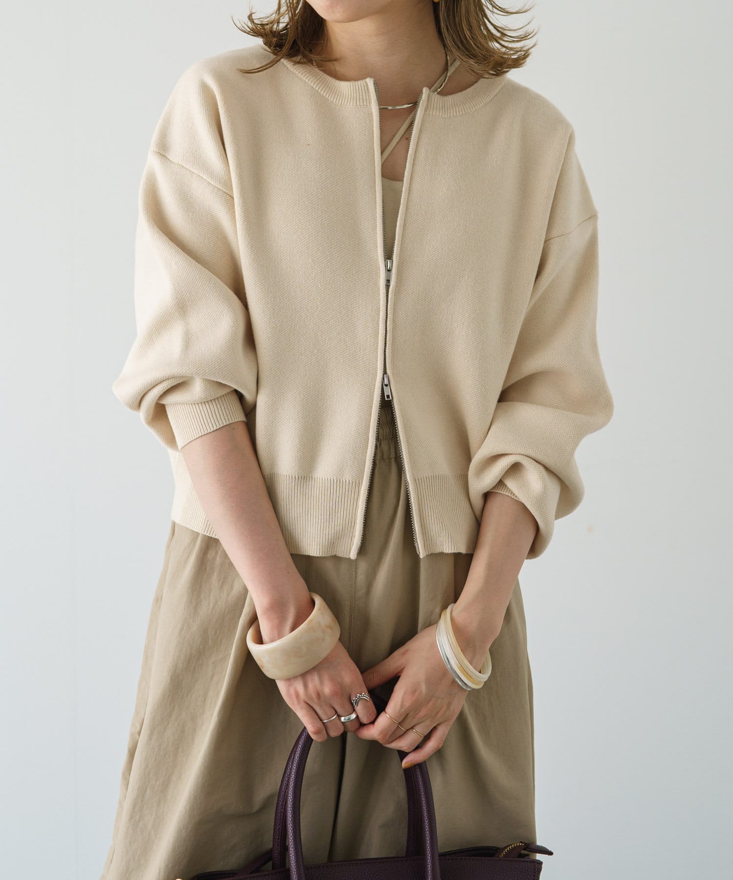 ・シンプルで合わせやすく、カジュアルでありながら上品な印象のニットカーディガン。