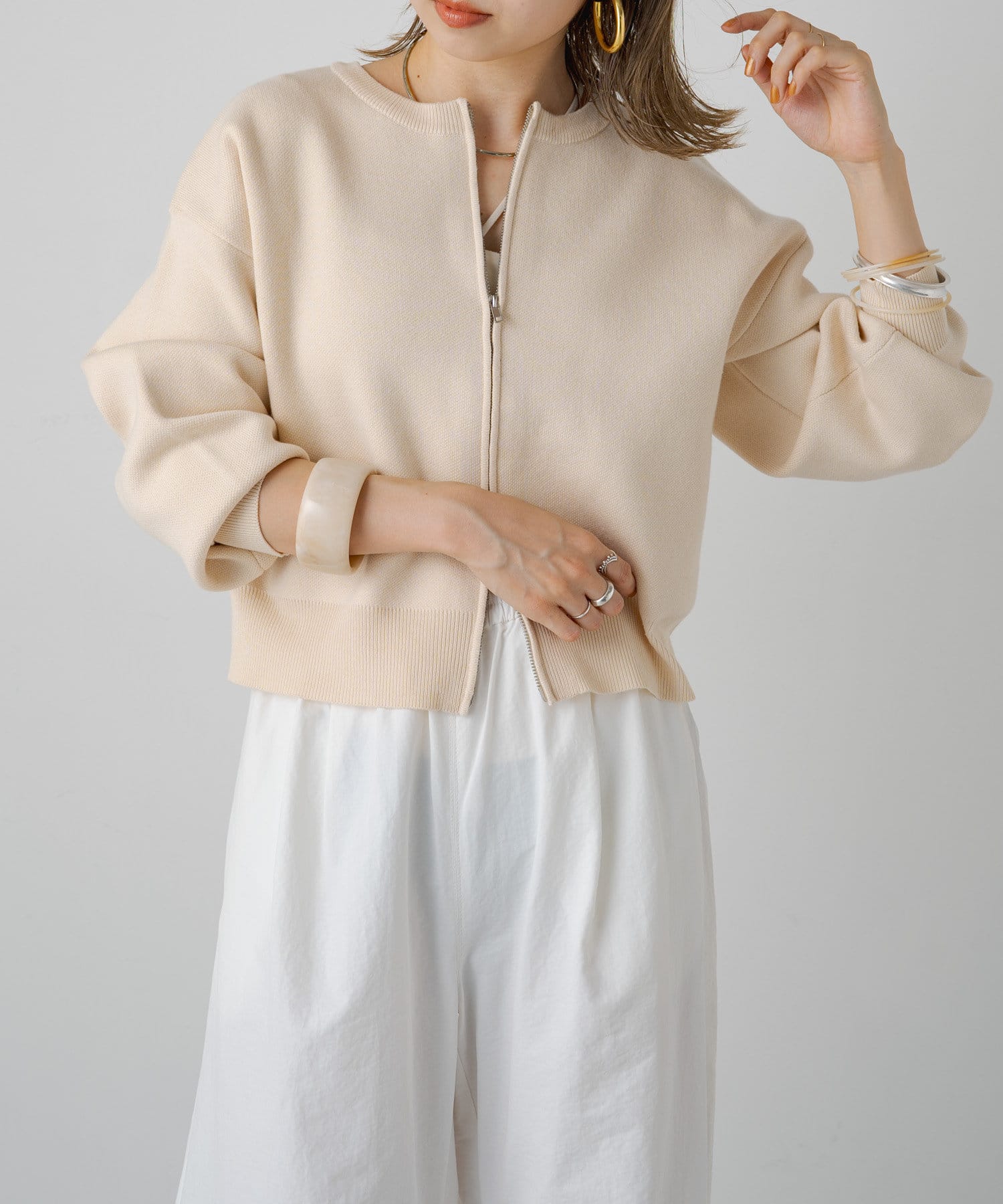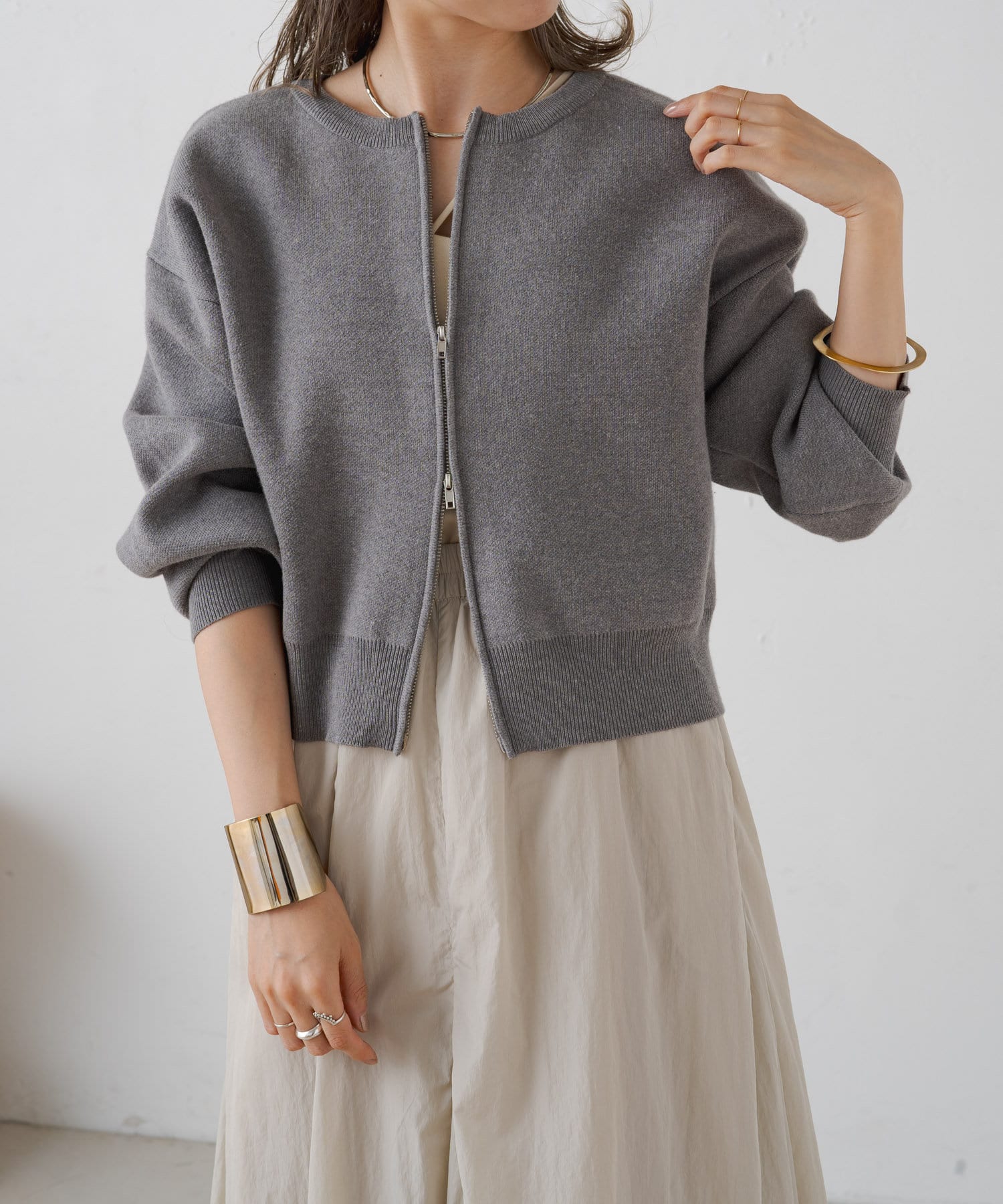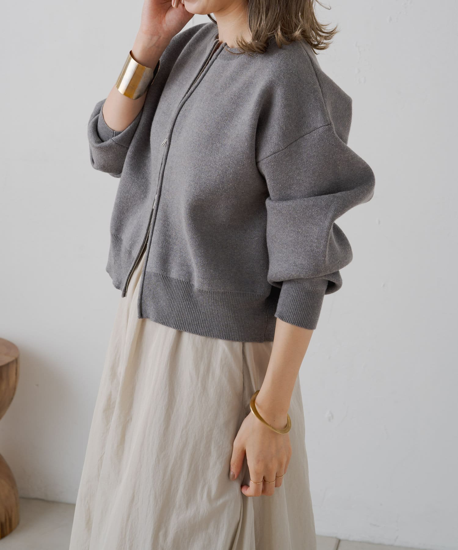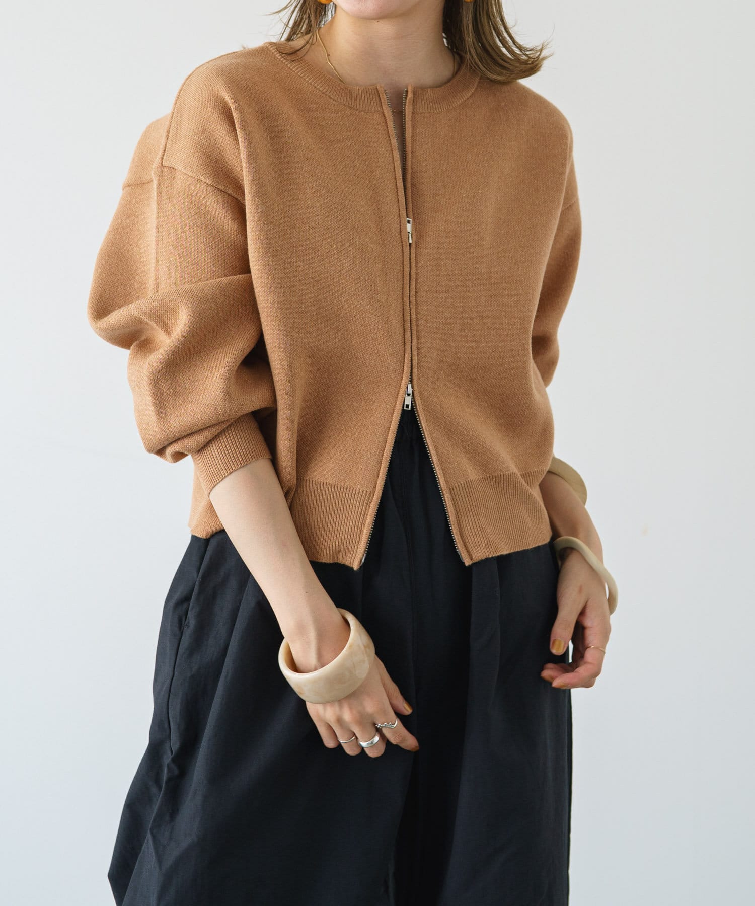 ・シンプルで合わせやすく、カジュアルでありながら上品な印象のニットカーディガン。