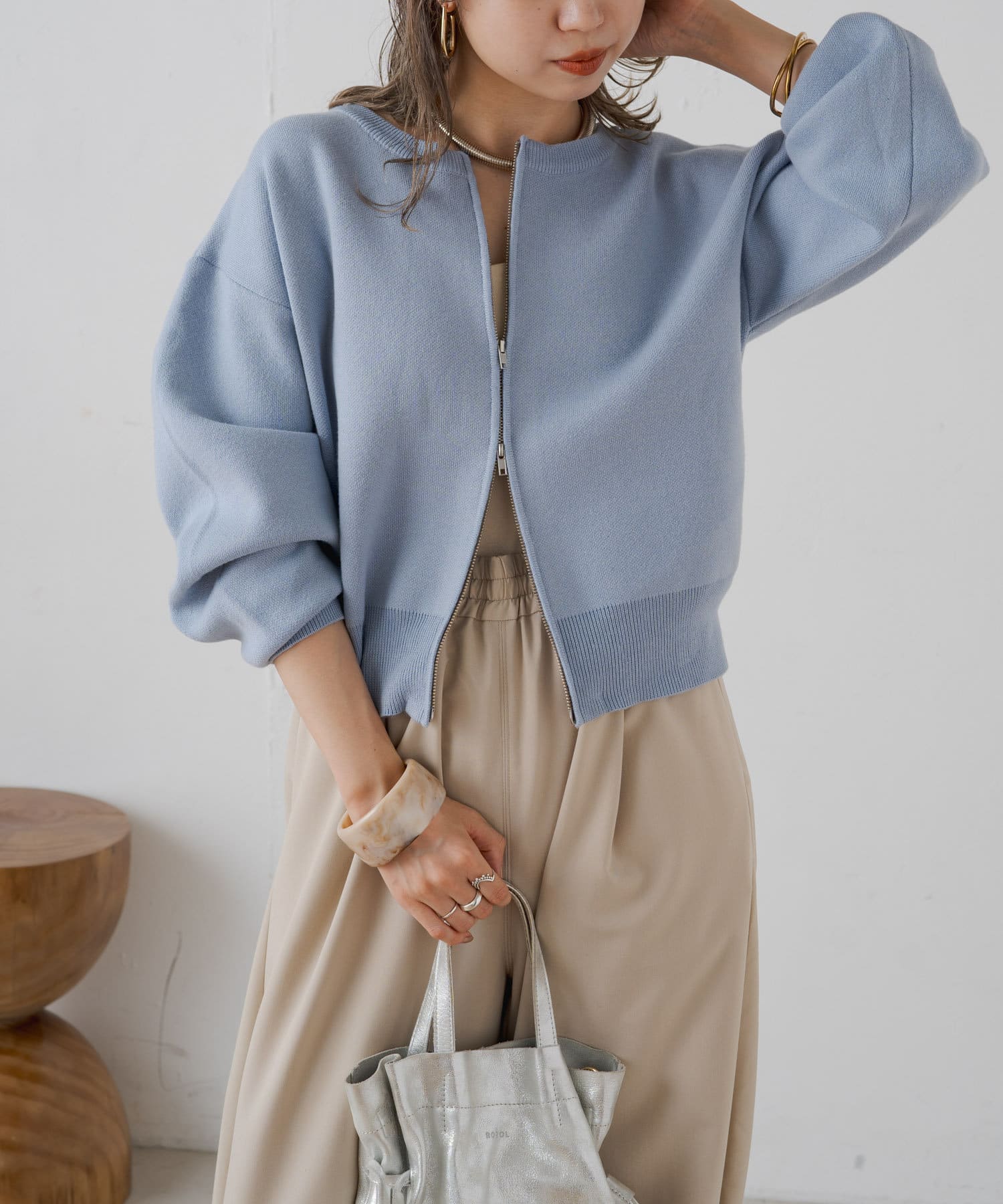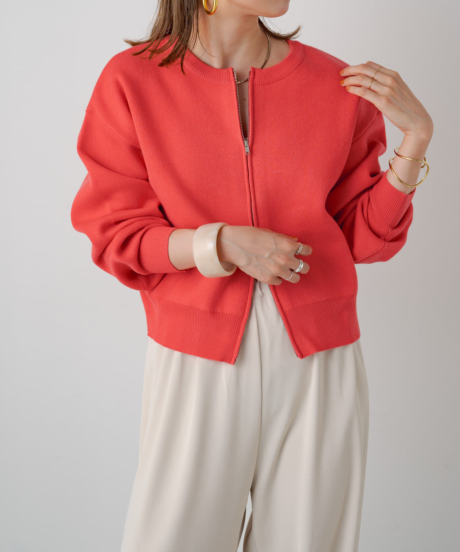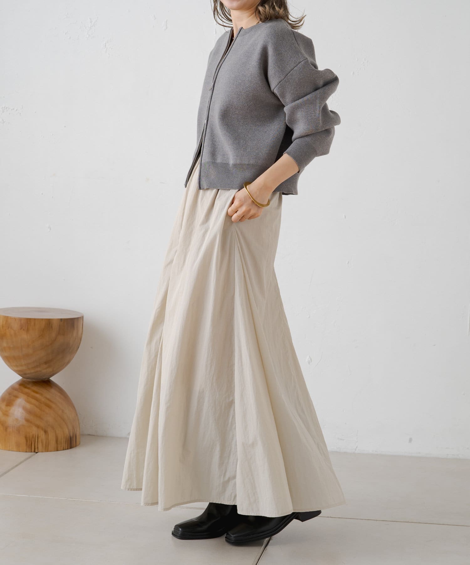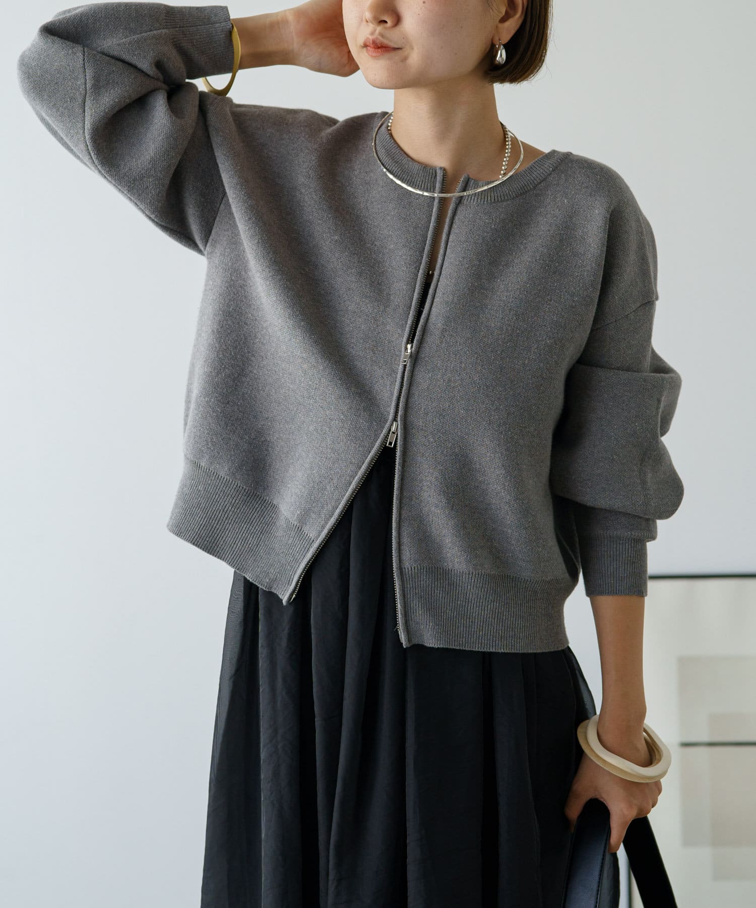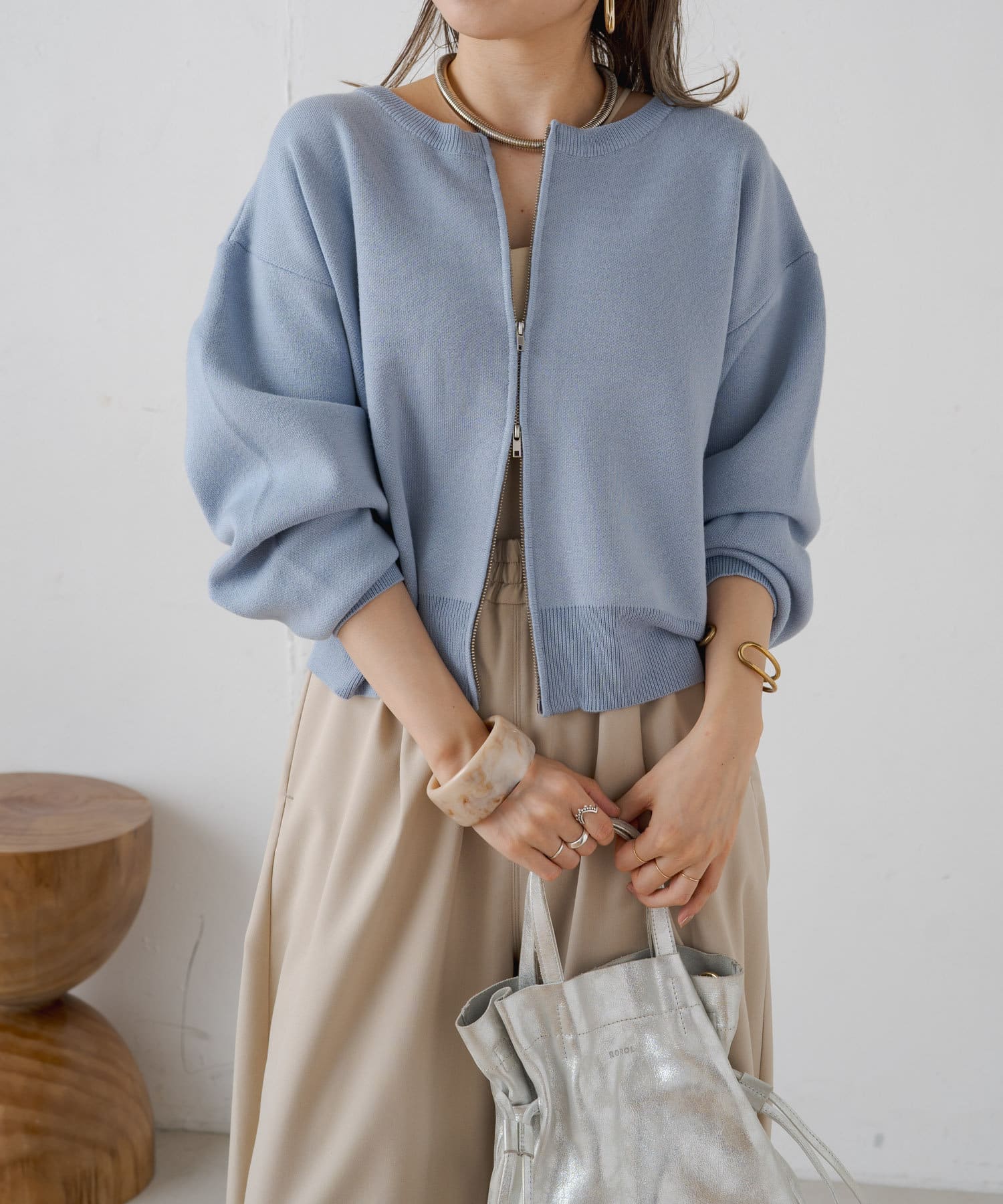・シンプルで合わせやすく、カジュアルでありながら上品な印象のニットカーディガン。