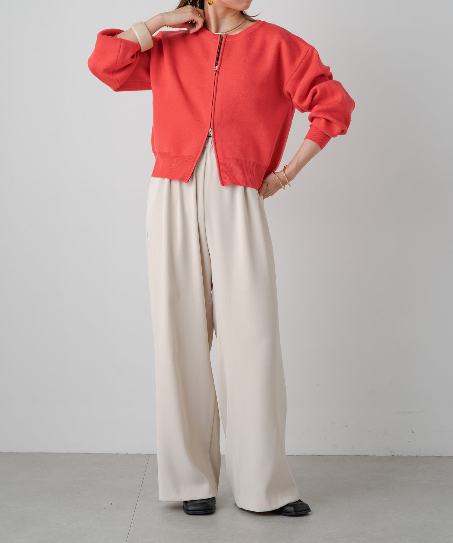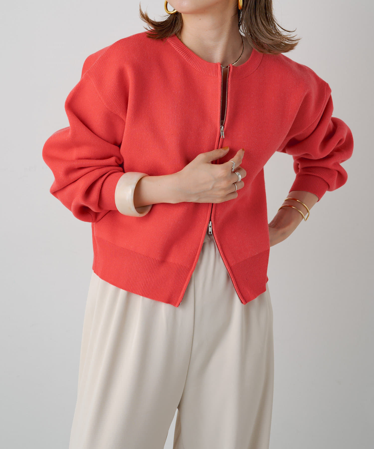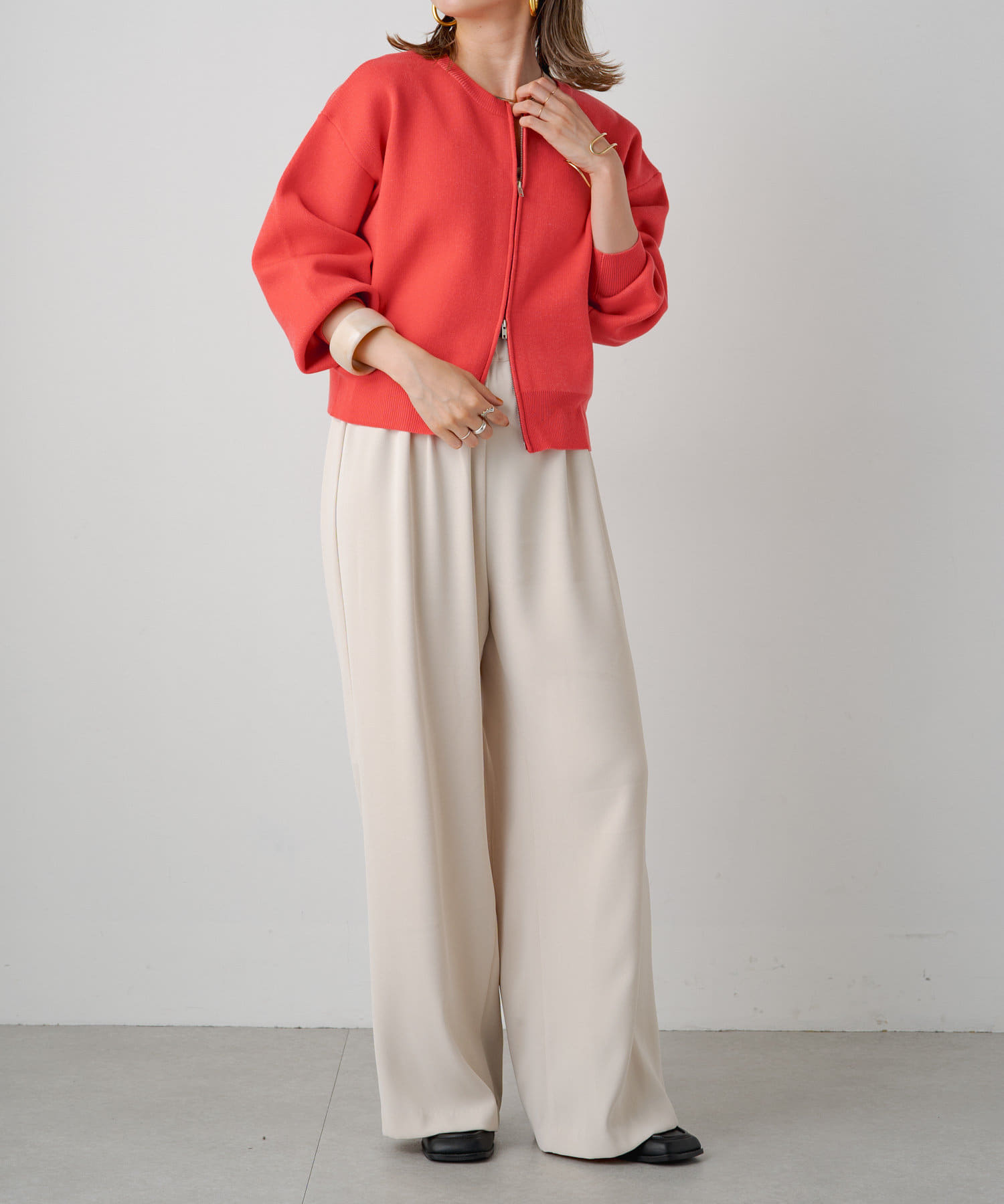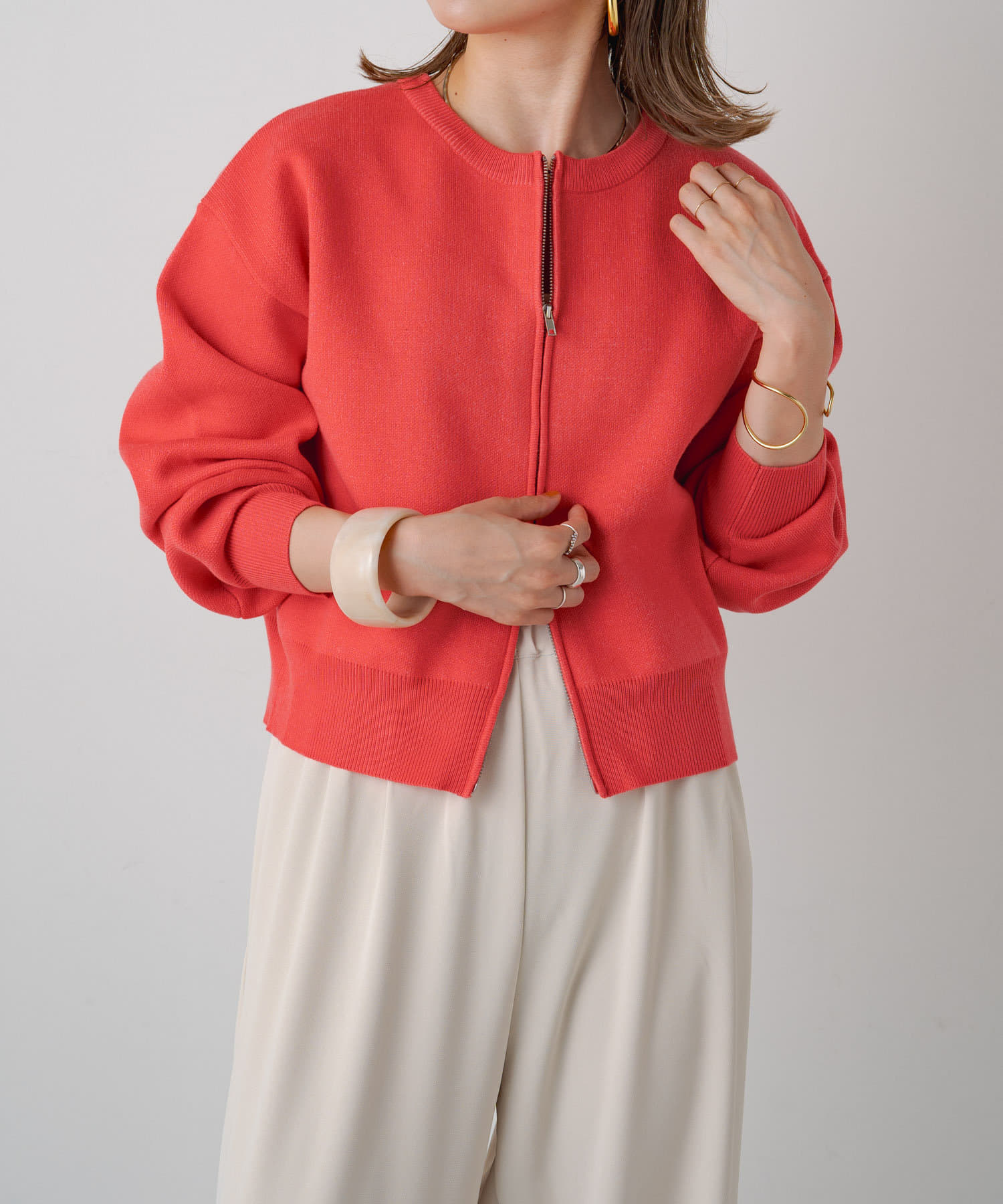 ・シンプルで合わせやすく、カジュアルでありながら上品な印象のニットカーディガン。