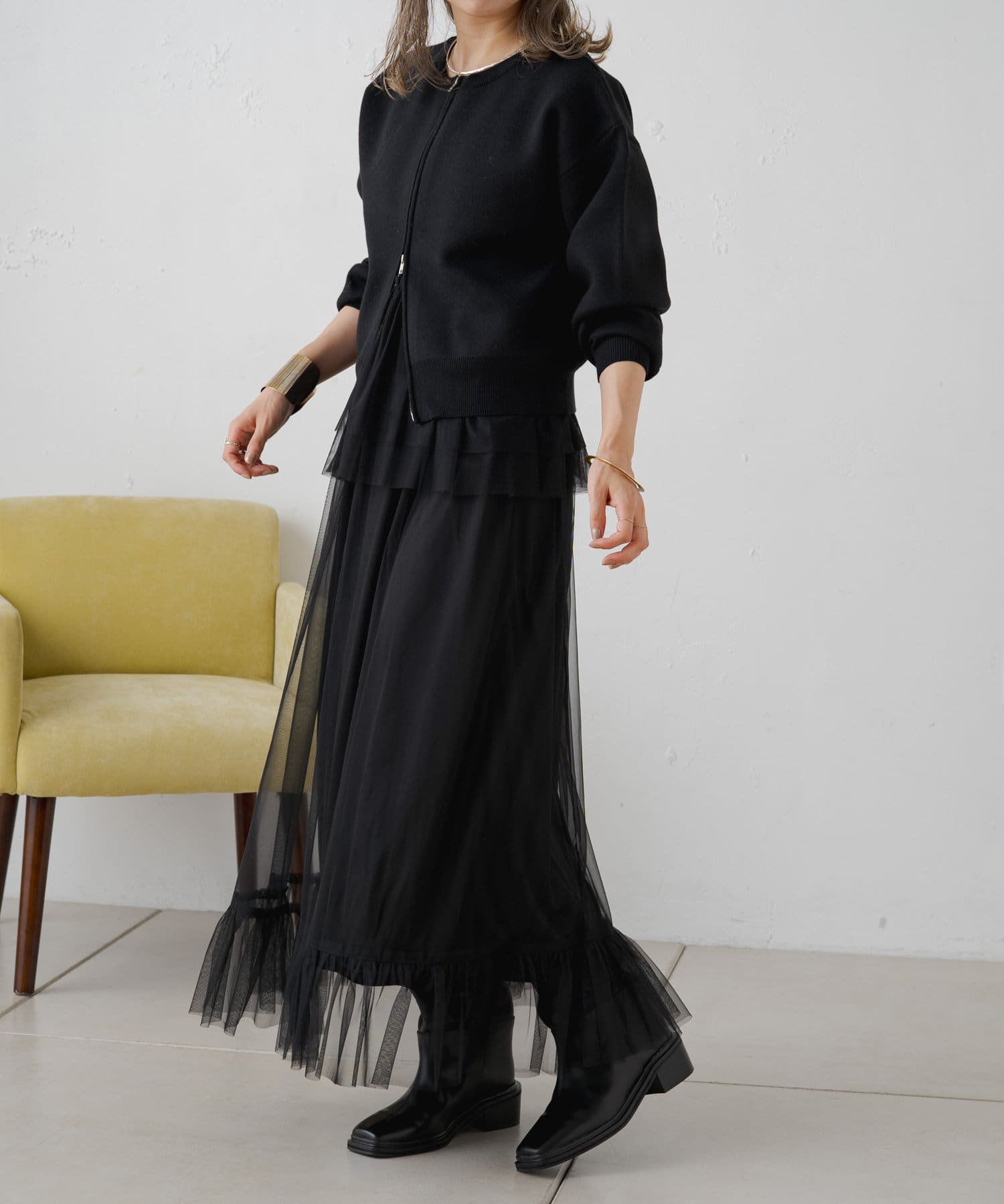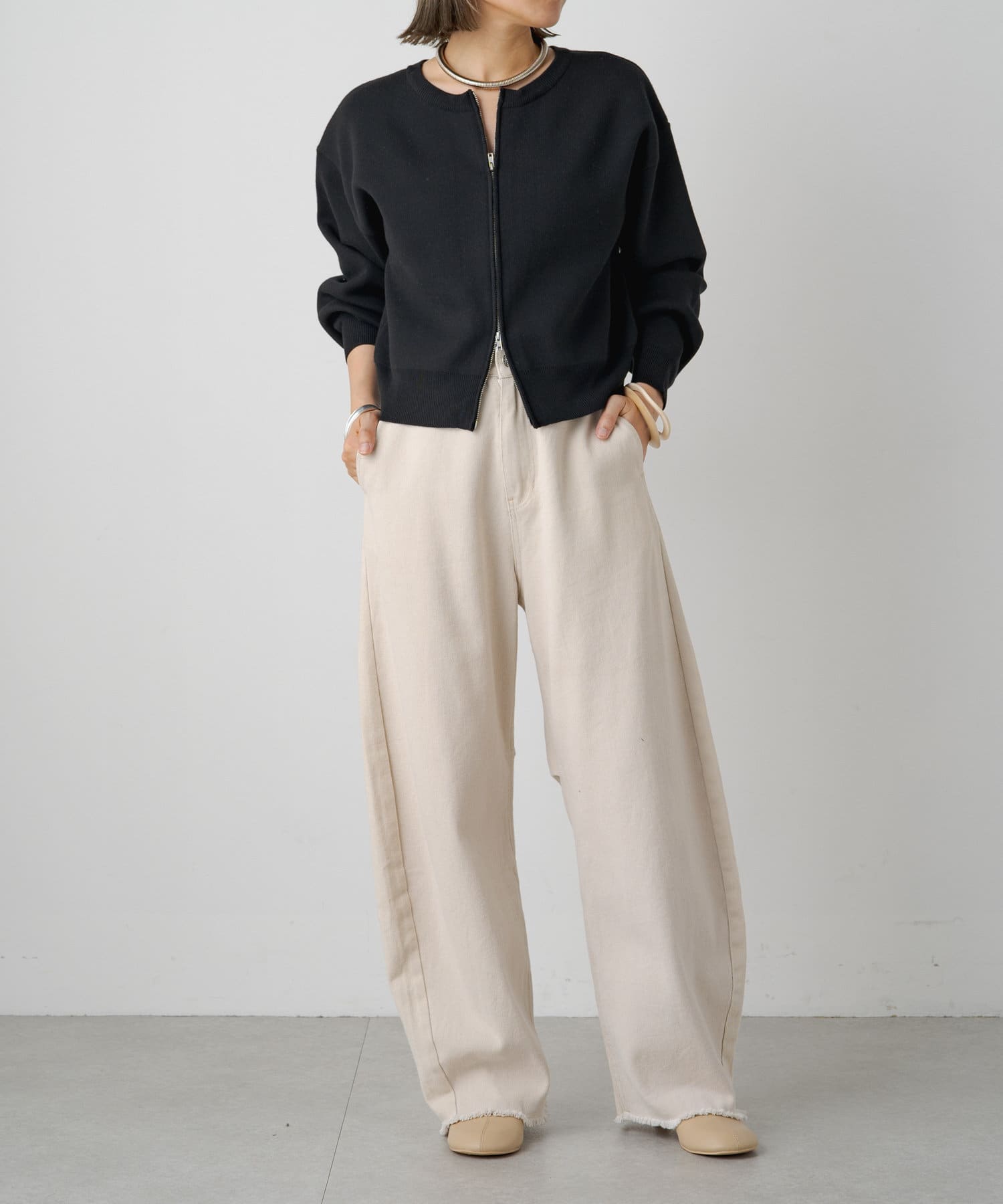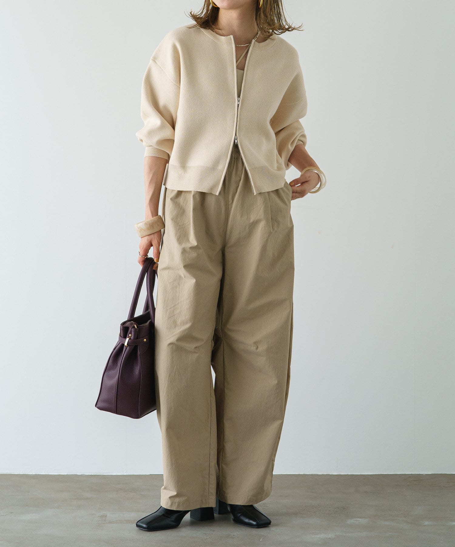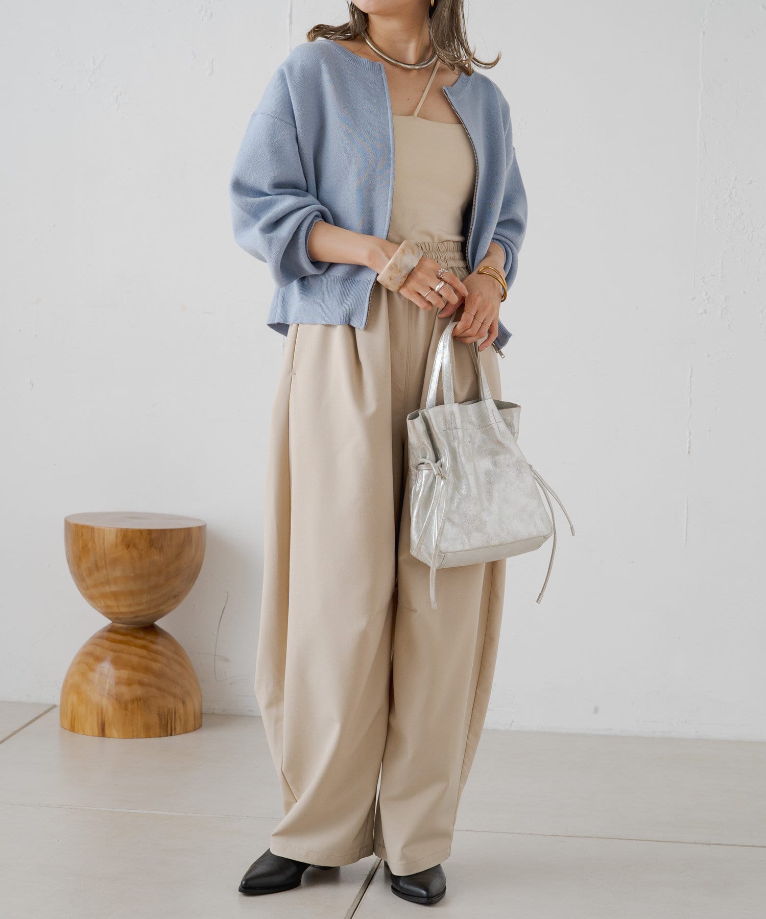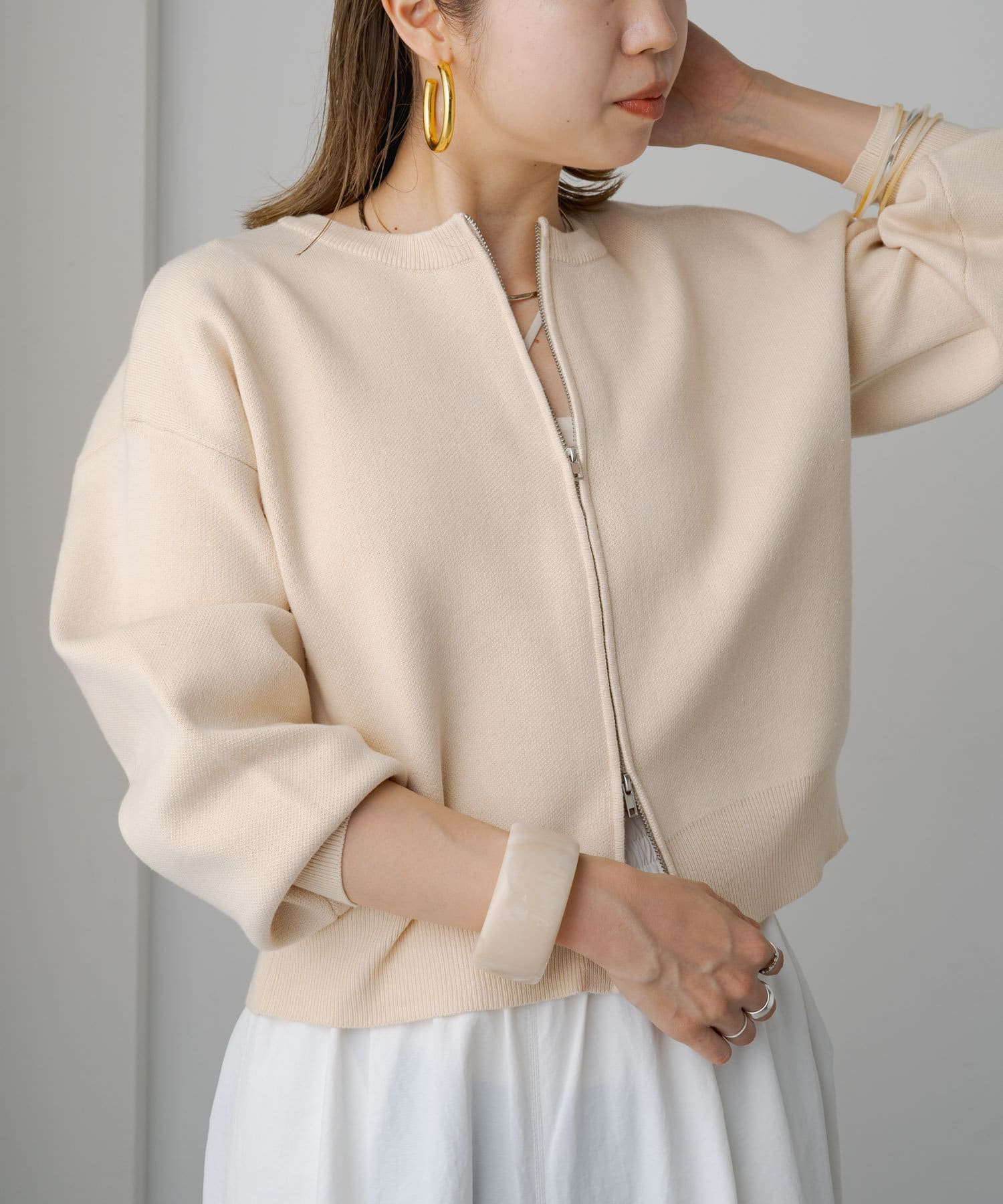 ・シンプルで合わせやすく、カジュアルでありながら上品な印象のニットカーディガン。