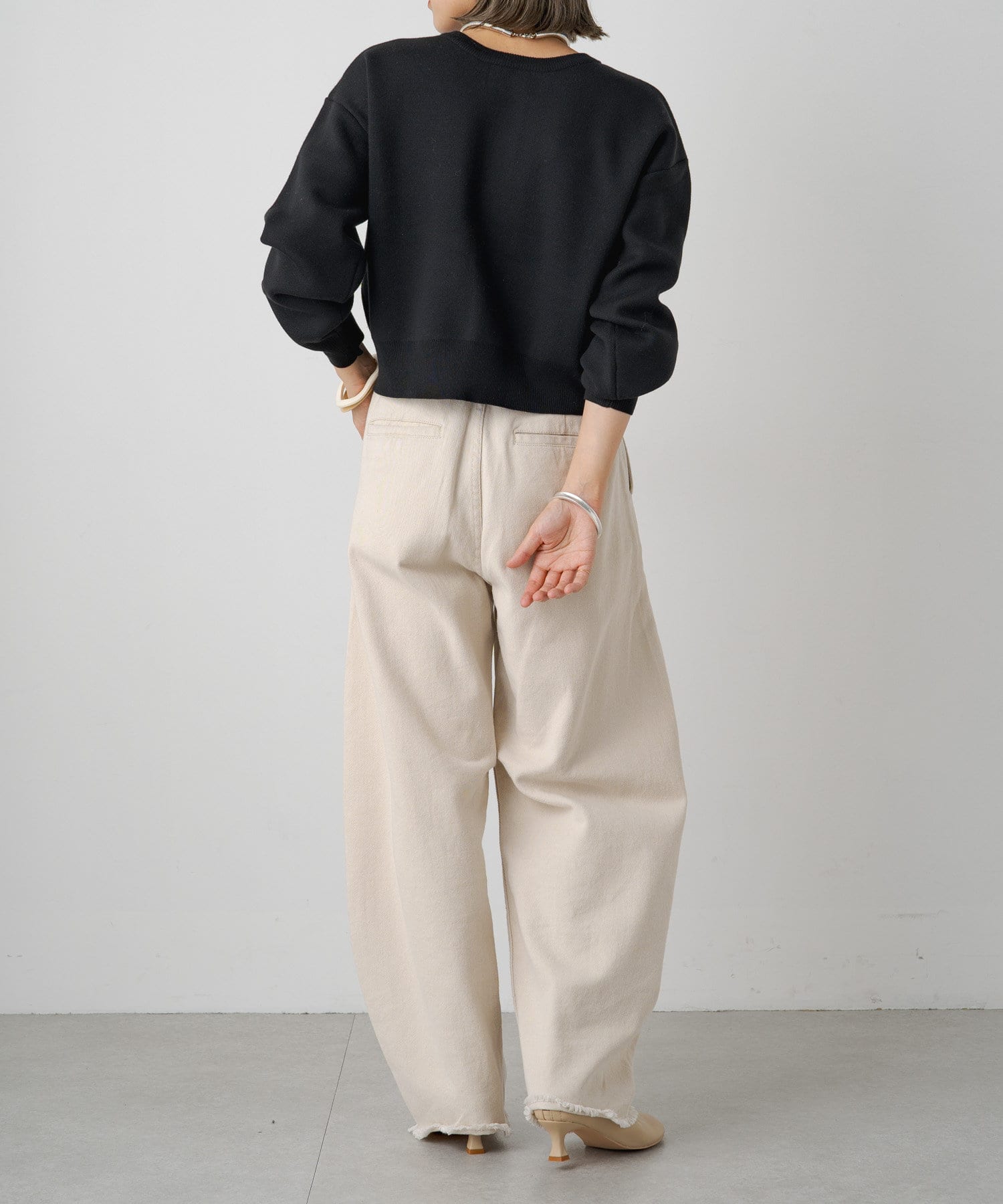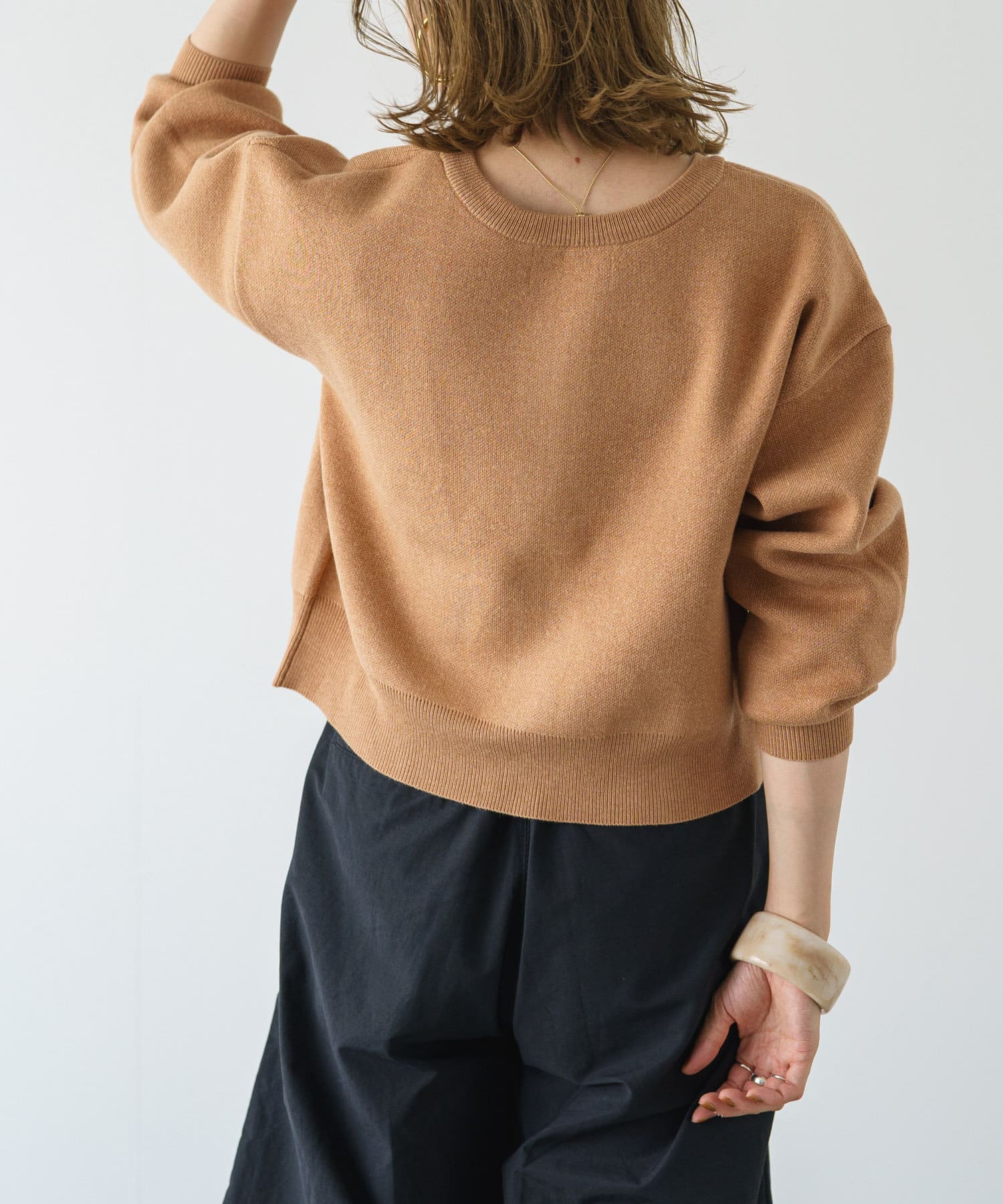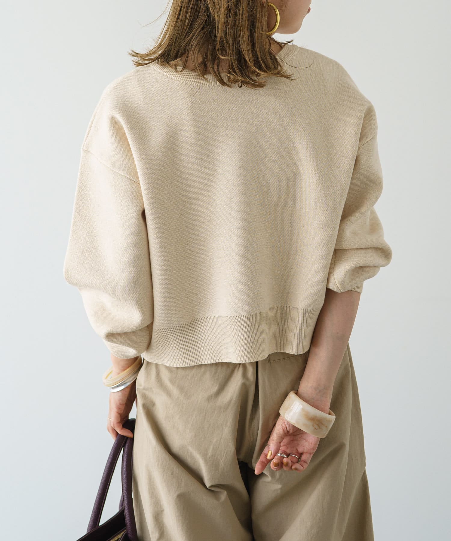 ・ニット素材ですが、スウェットの様にしっかりとしたややハリのある生地感で、長くお使いいただけます。
