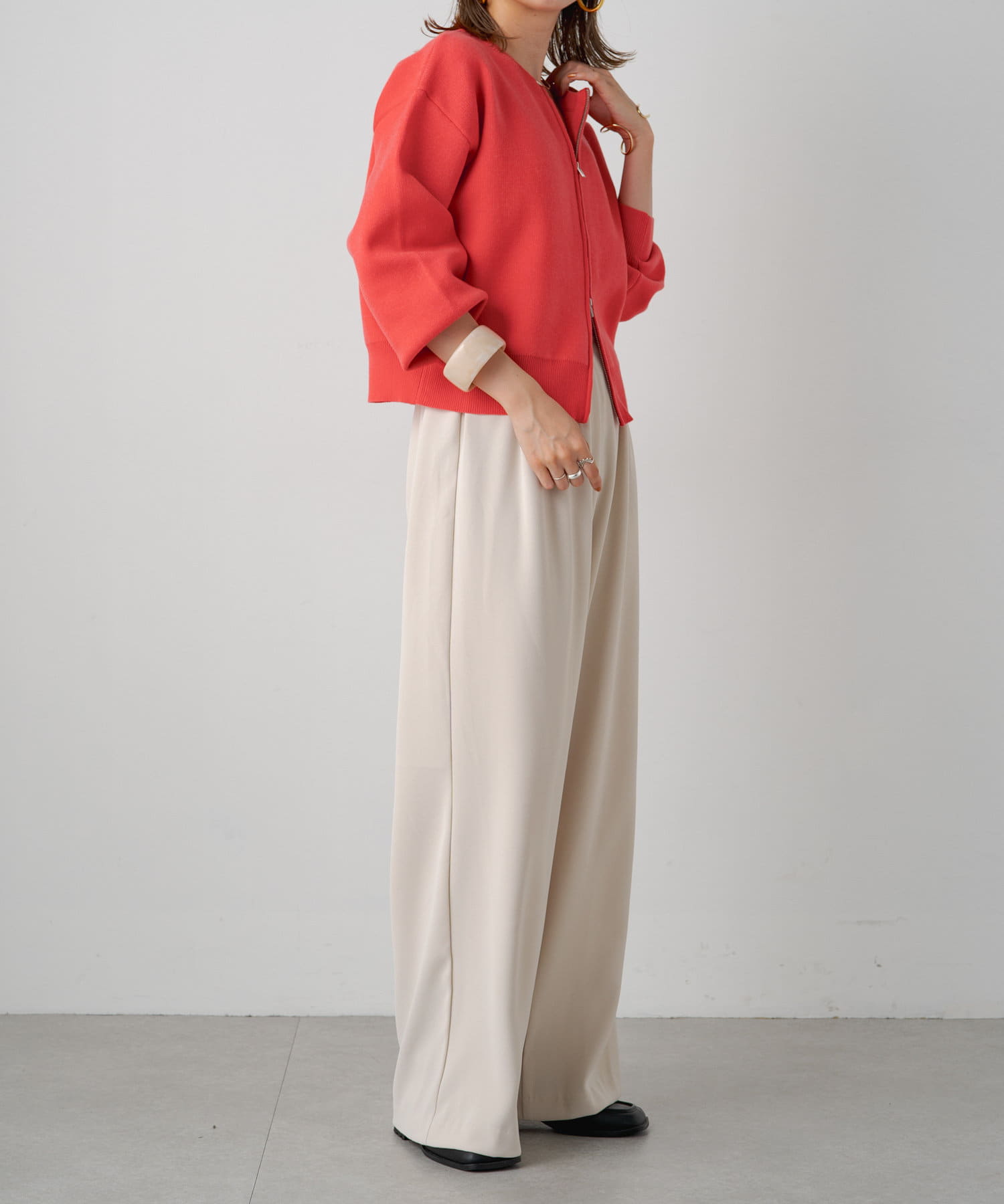 ・シンプルなデザインですが、旬なショート丈で今年らしいコーディネートに仕上がります。