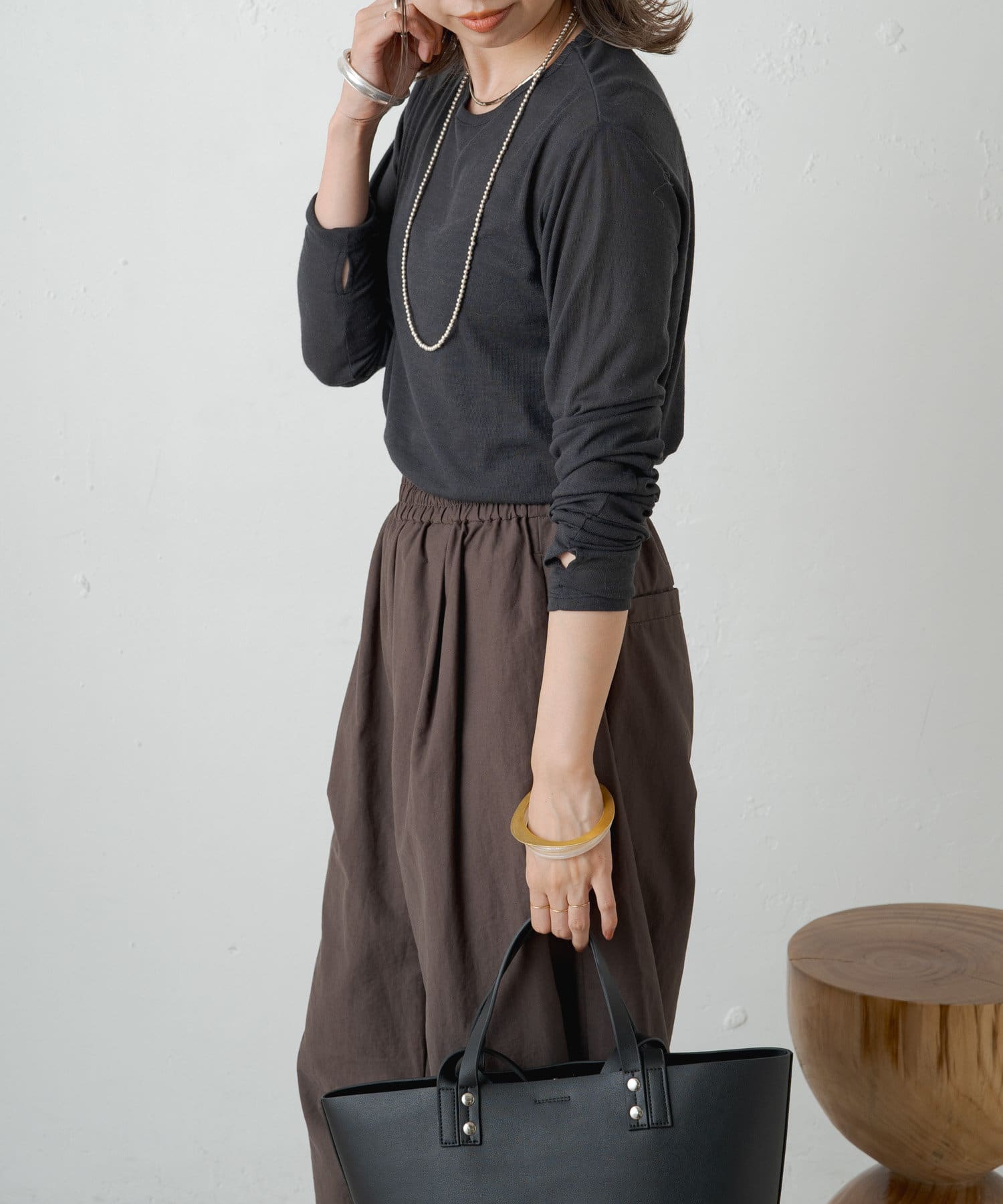 ・一枚ではもちろん、カーディガンやジャケットなどのインナーに着用し、レイヤードを楽しんでいただけます。