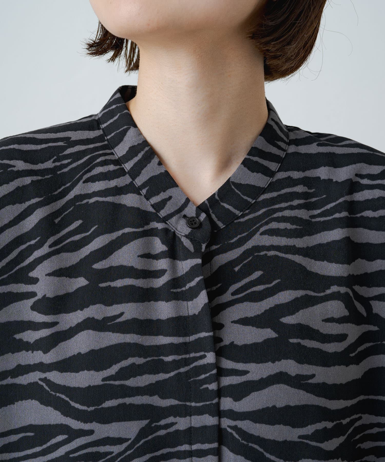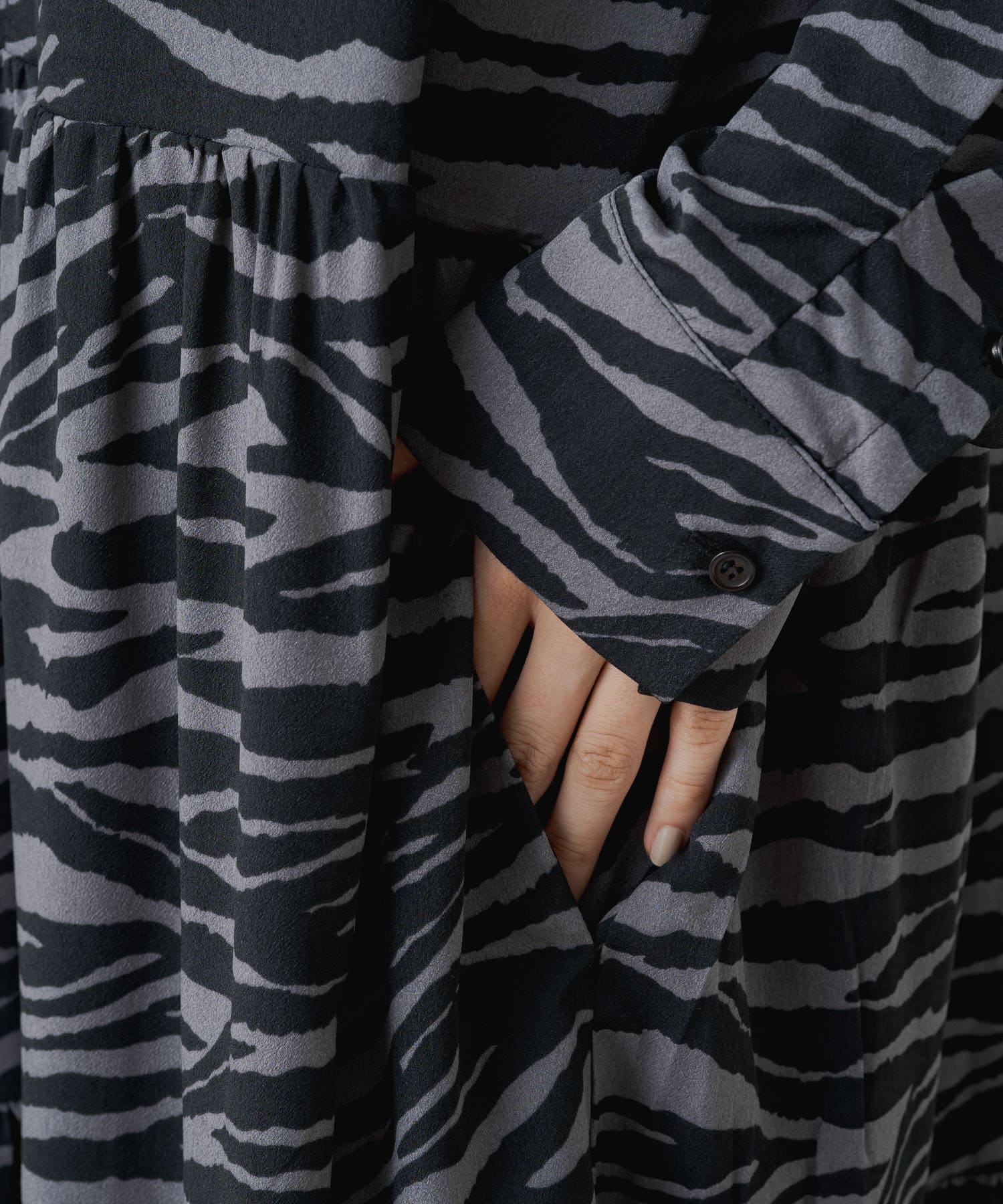 ・軽やかな素材と女性らしいシルエットで、激しくならない女性らしいゼブラ柄のワンピースです。
