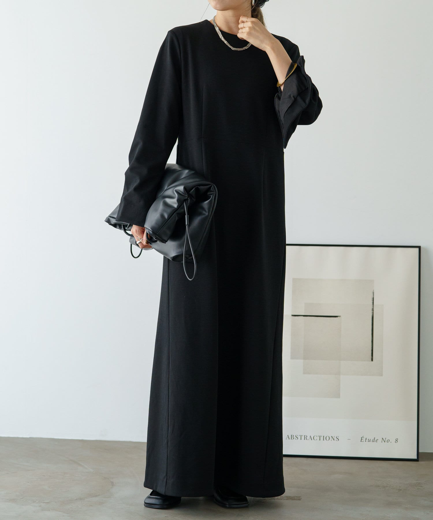 ・肌に溶け込むようなしっとり感のある着心地のカットワンピース。