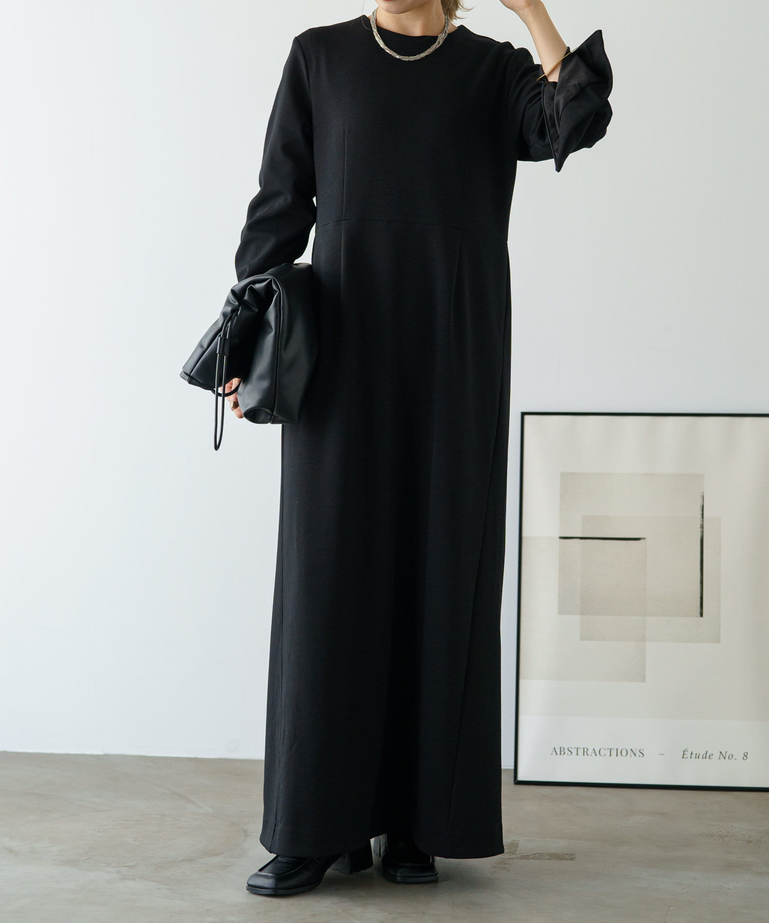 ・ウエストの高めの位置でのフレアの切り替えが、スタイルアップ効果◎女性らしくポイントになります