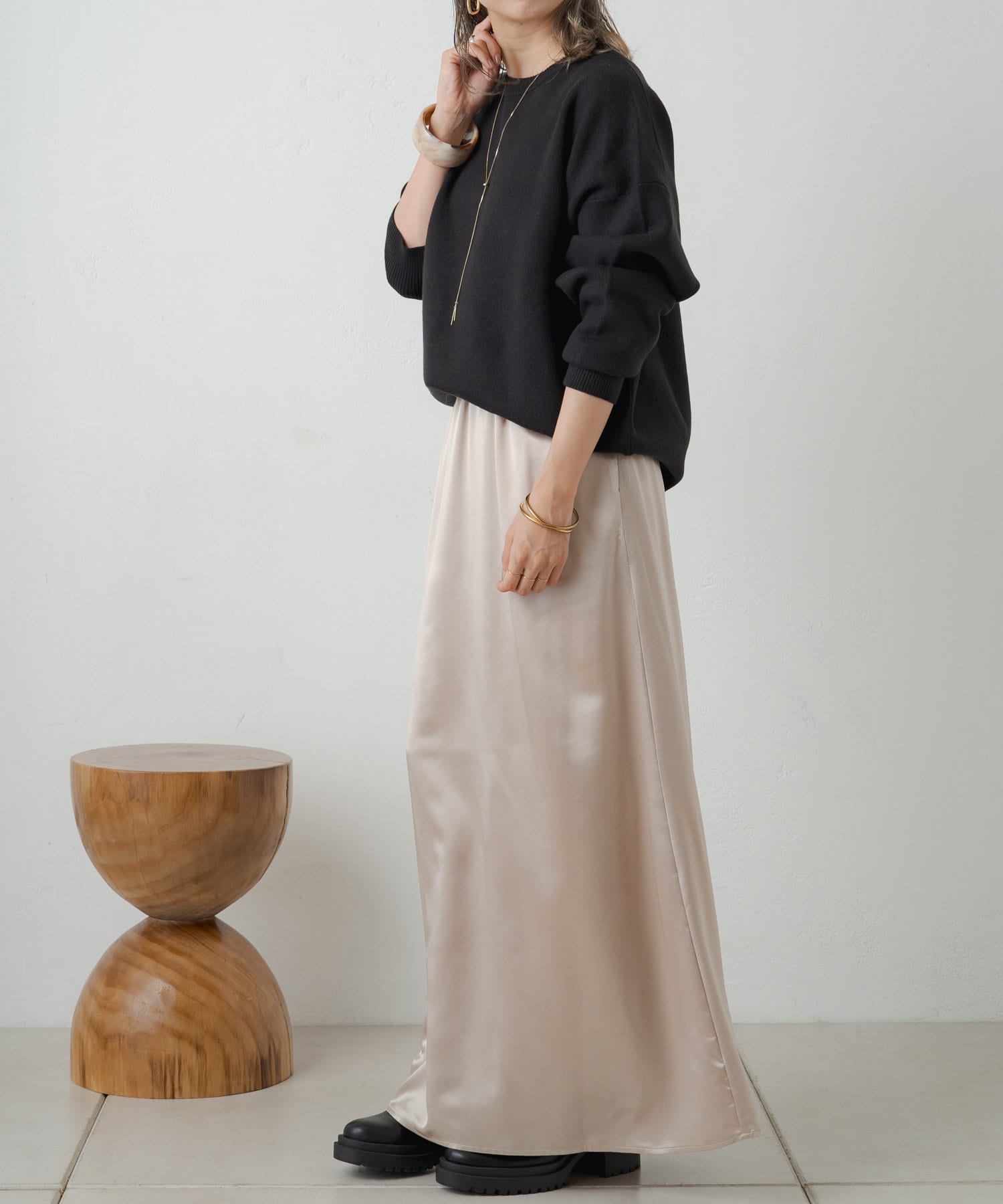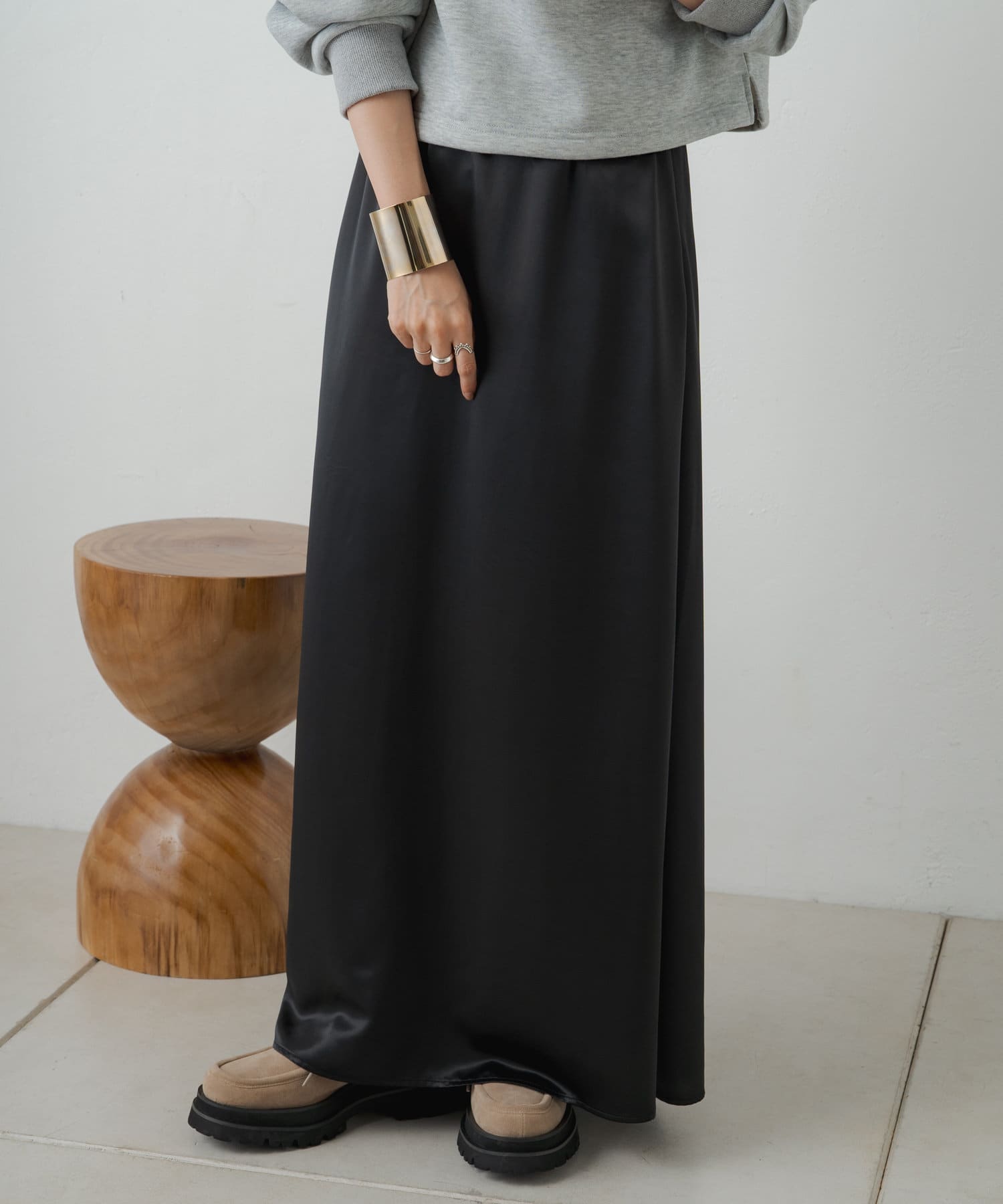 穿くだけで主役級の華やかなサテンスカート