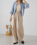 ・ウエストはゴム仕様と紐でも絞れるのでストレスフリーで着心地抜群です。