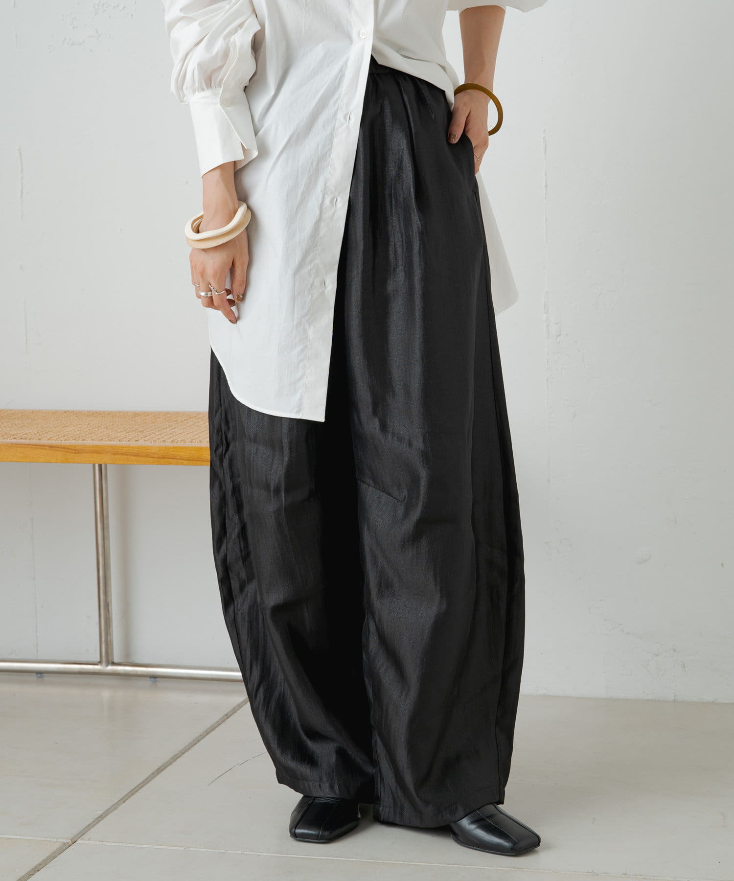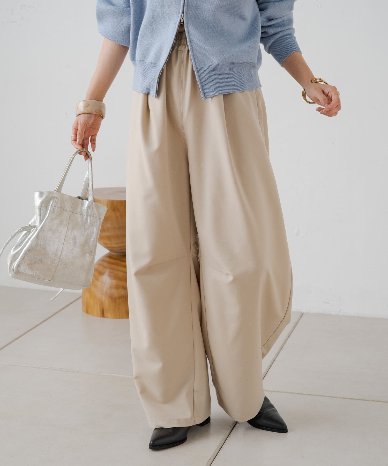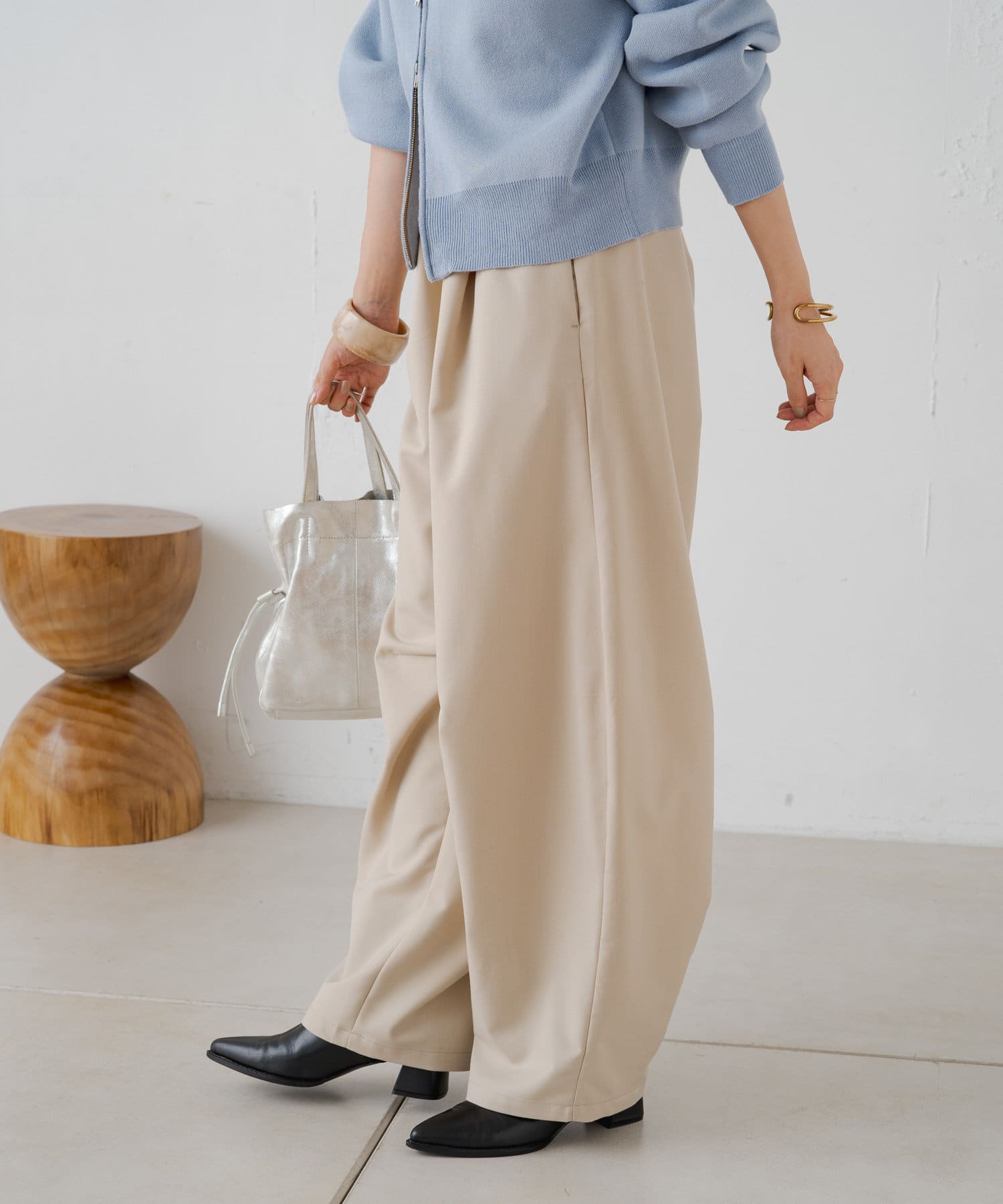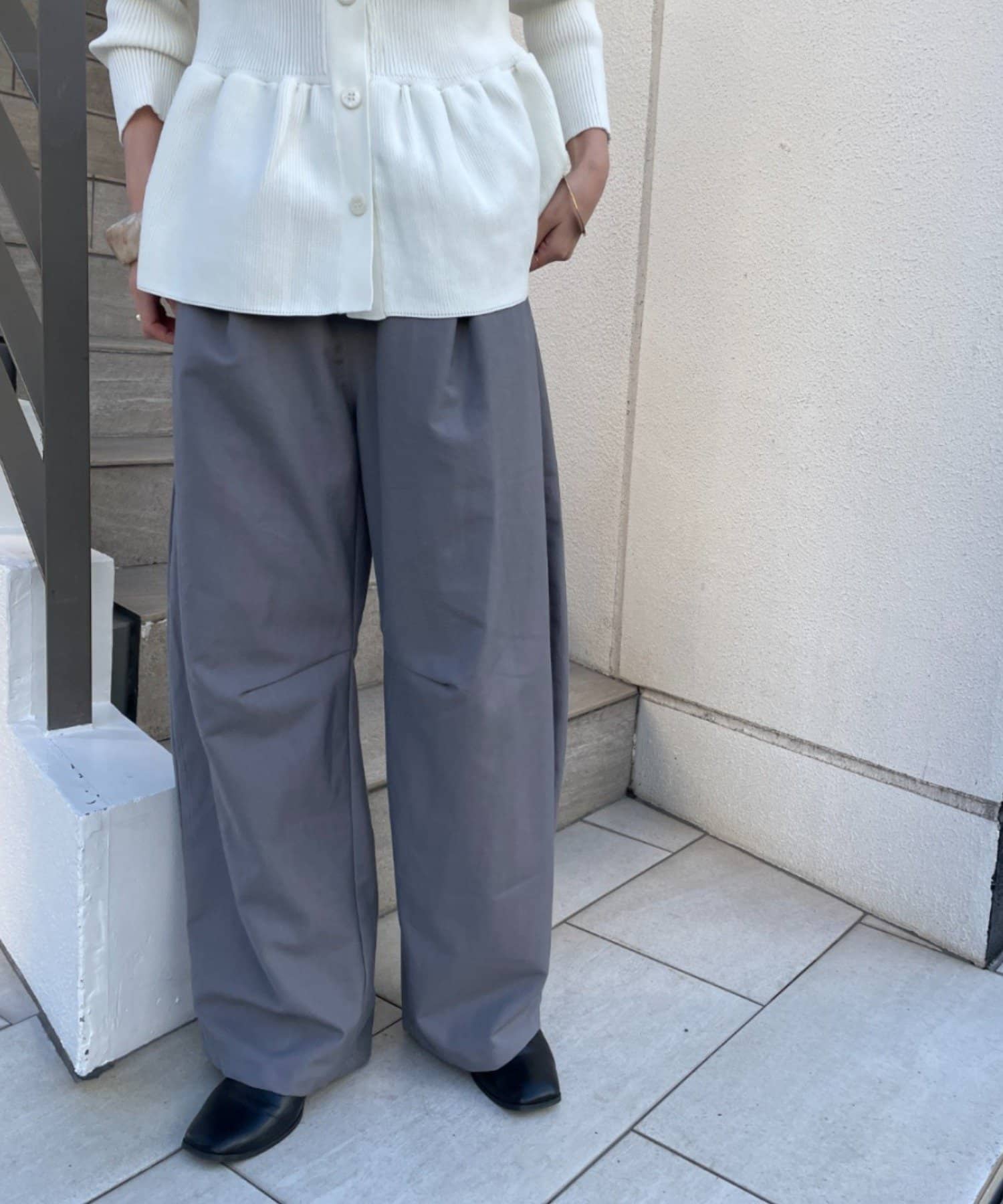 ・ヒップから膝にかけてのカーブが特徴的で、ボリューム感があるので華奢見えしてくれるパンツです。
