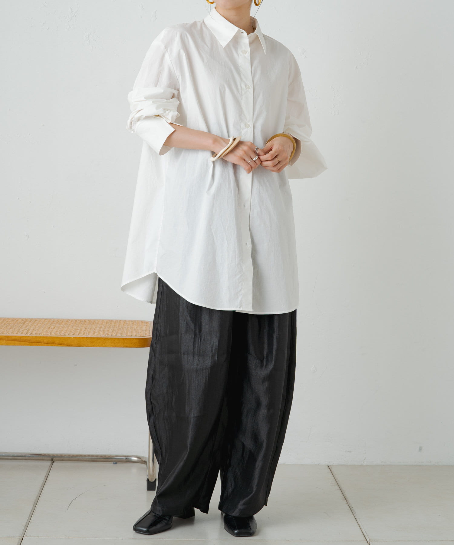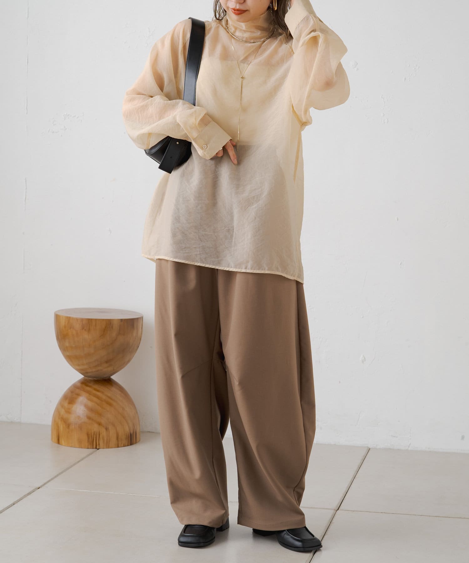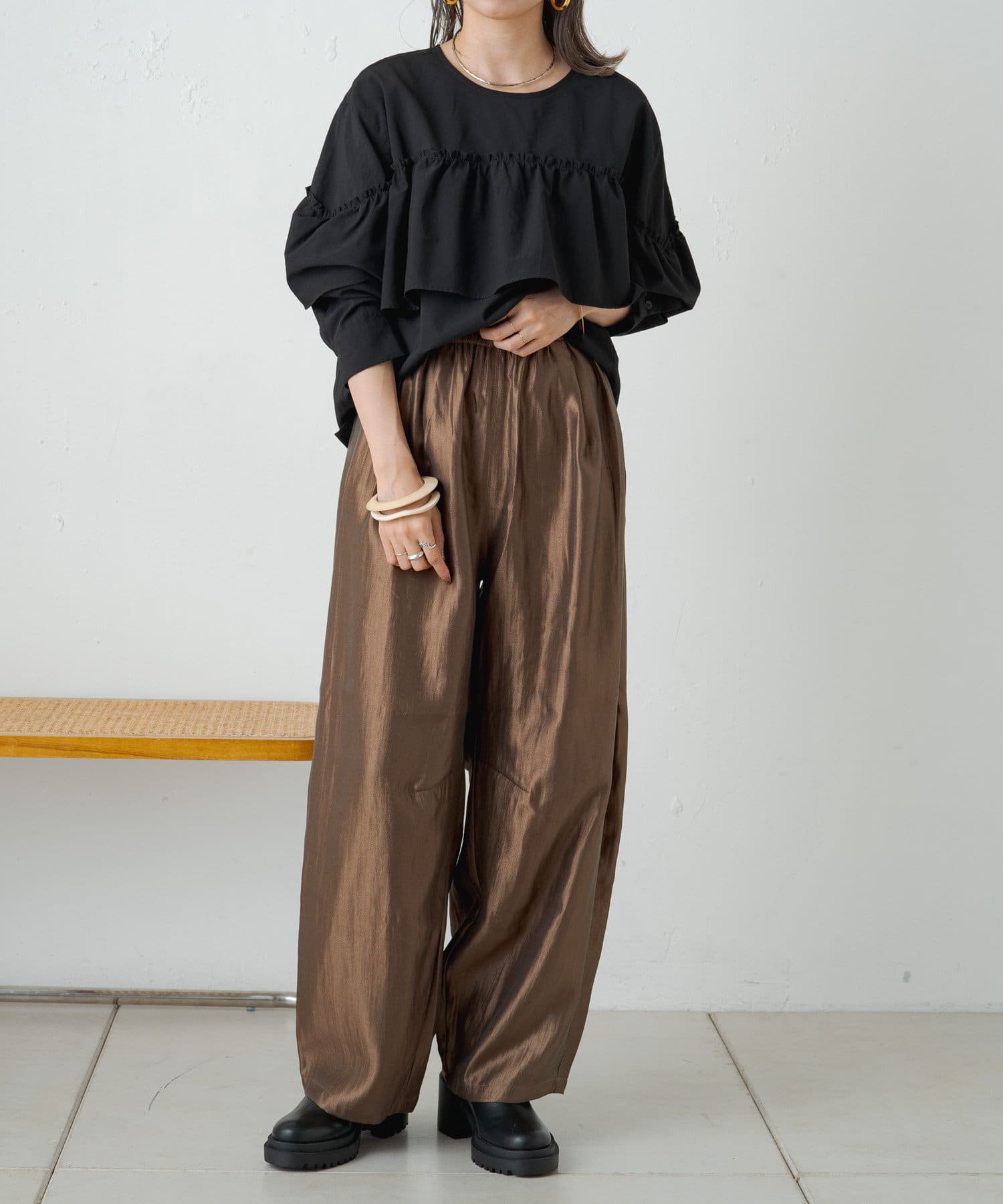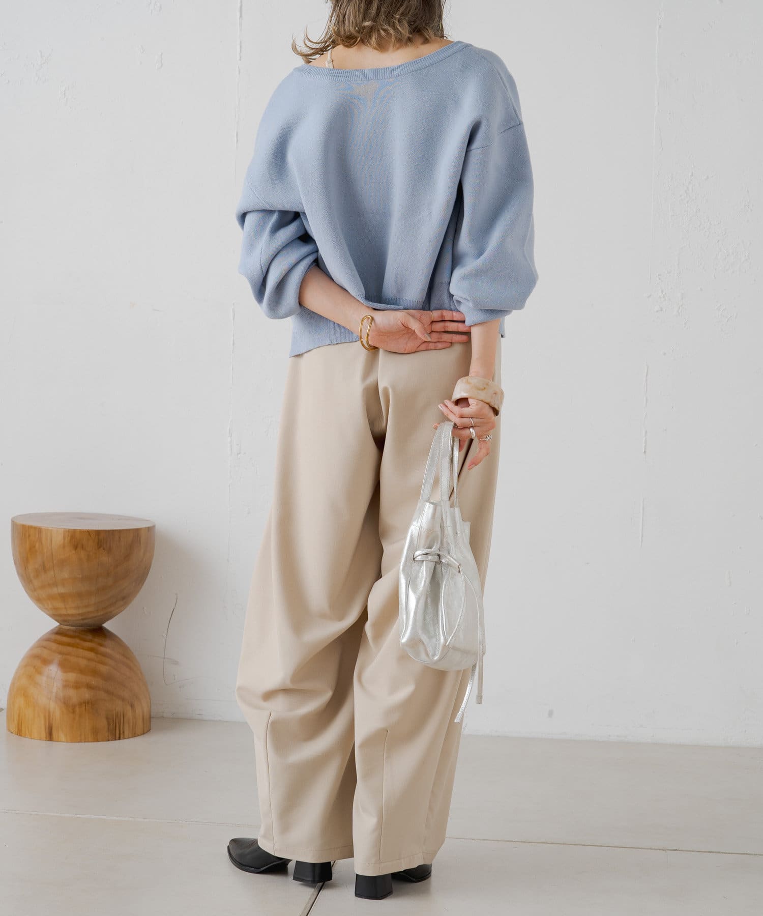 ・ヒップから膝にかけてのカーブが特徴的で、ボリューム感があるので華奢見えしてくれるパンツです。