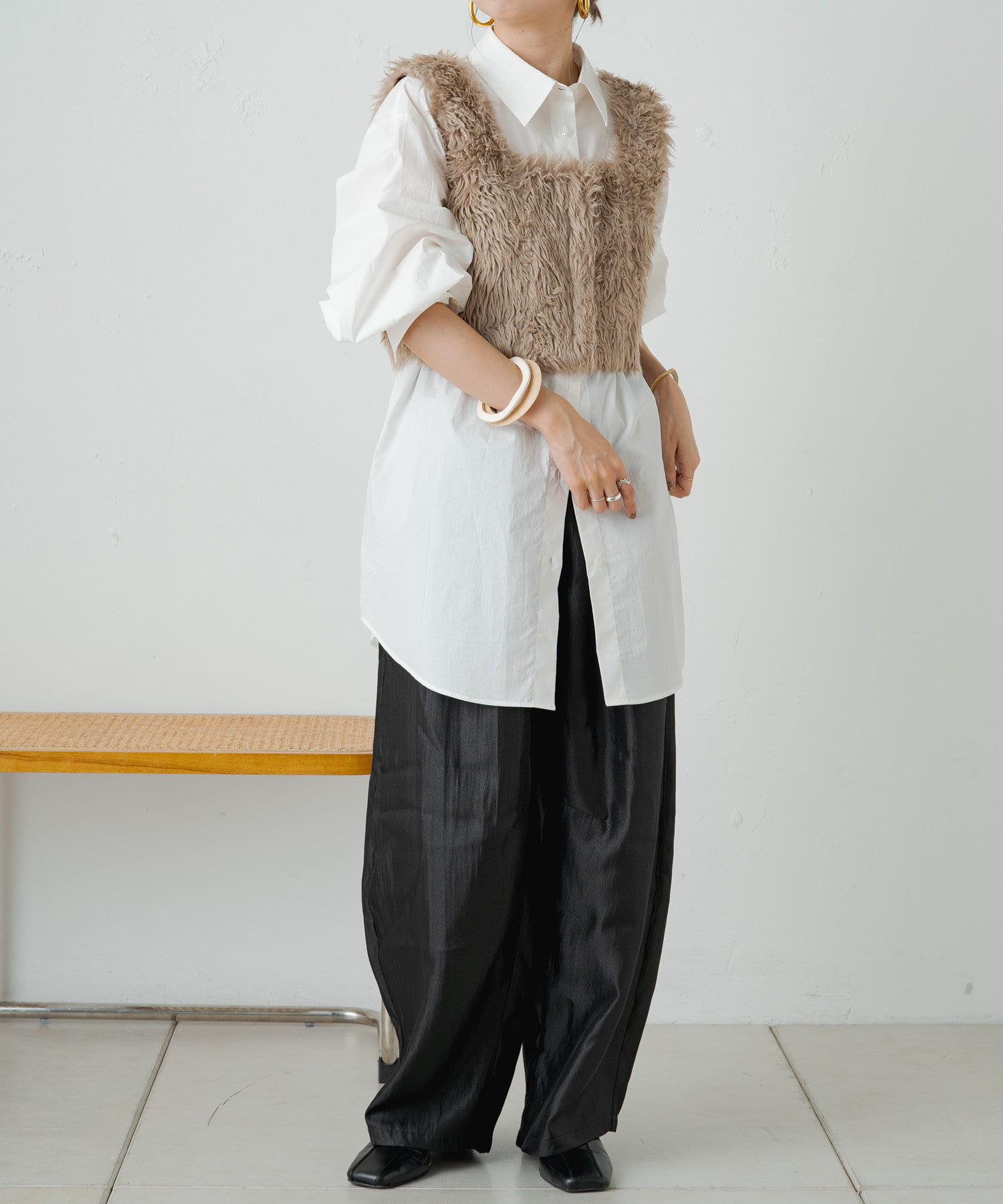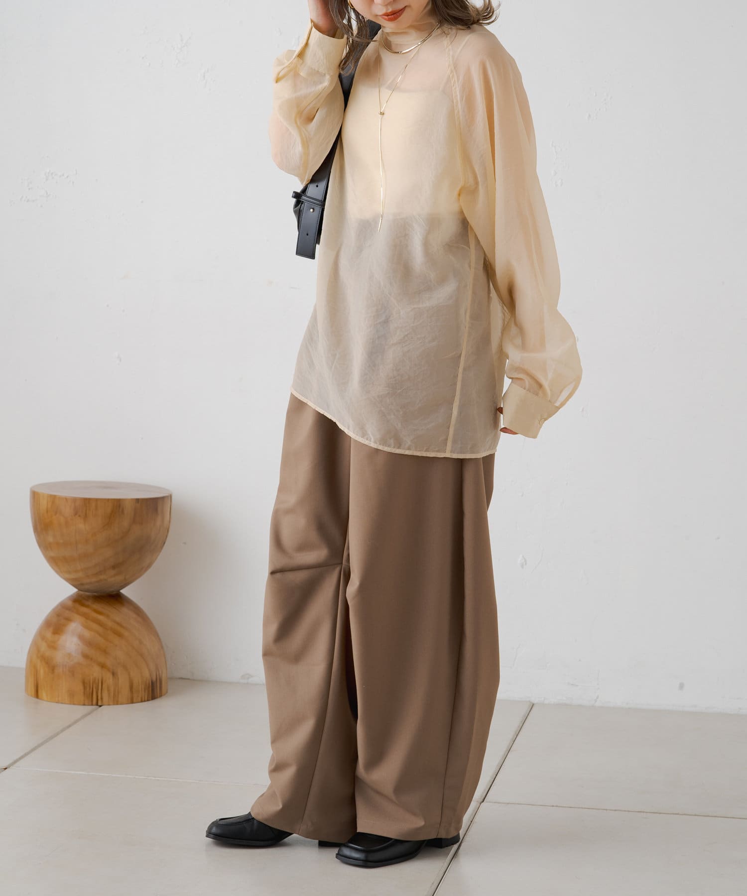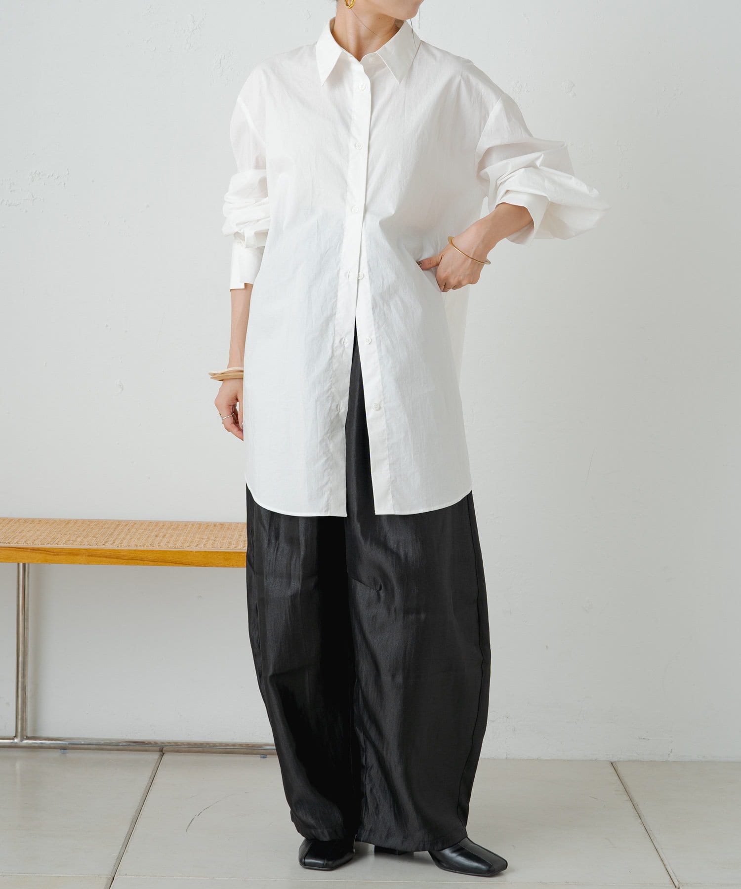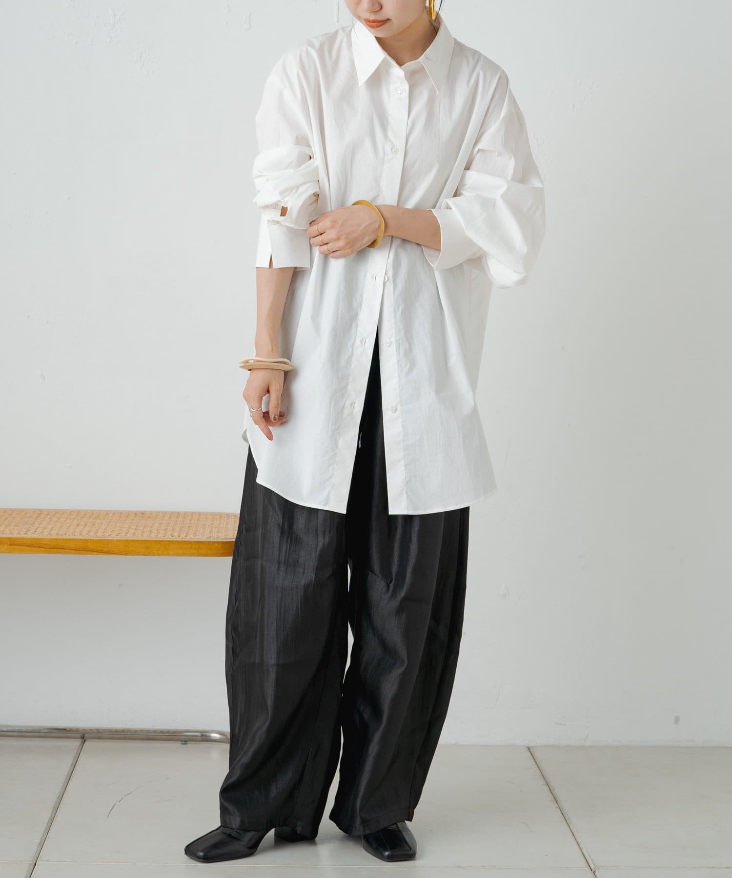 ・ヒップから膝にかけてのカーブが特徴的で、ボリューム感があるので華奢見えしてくれるパンツです。