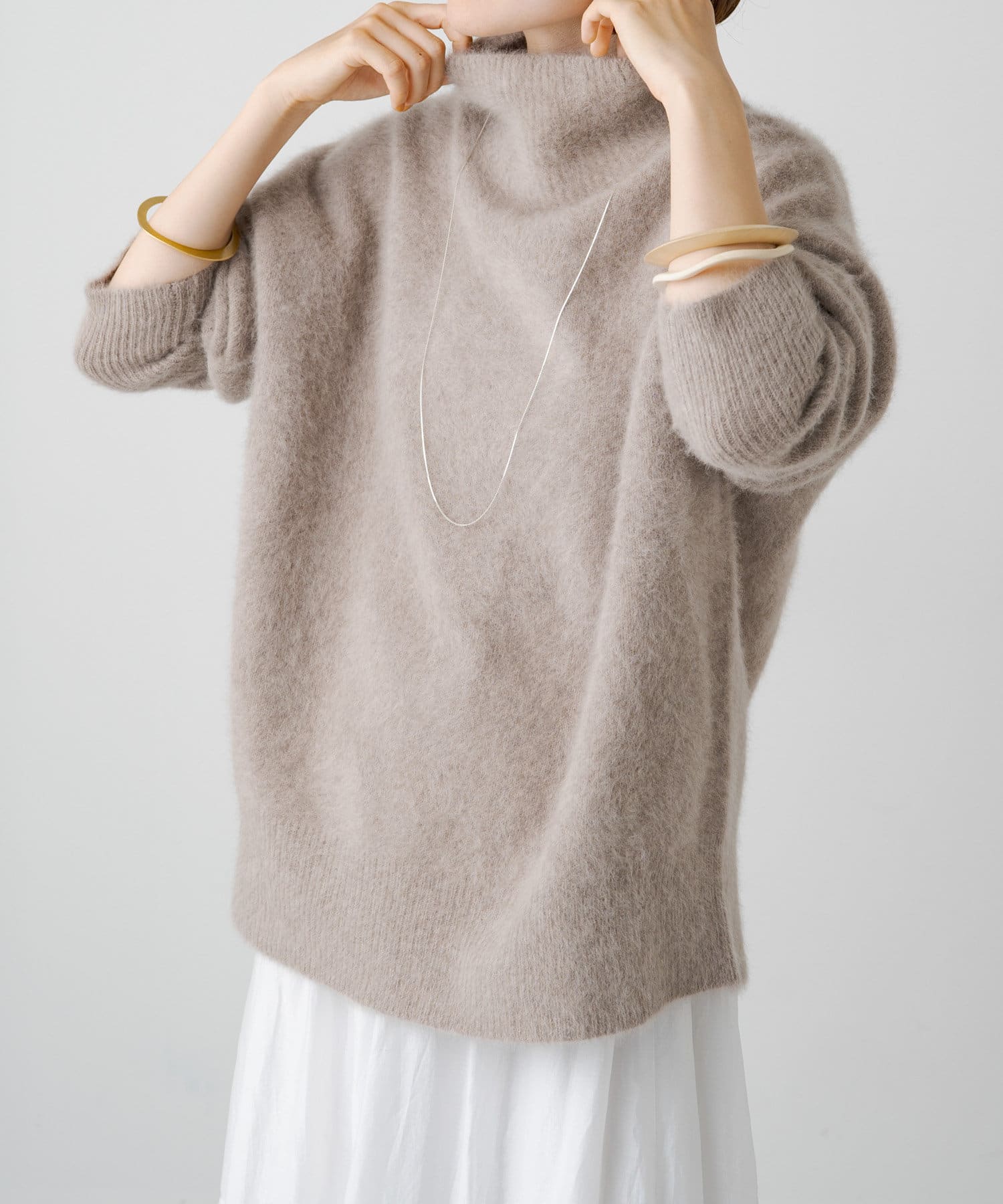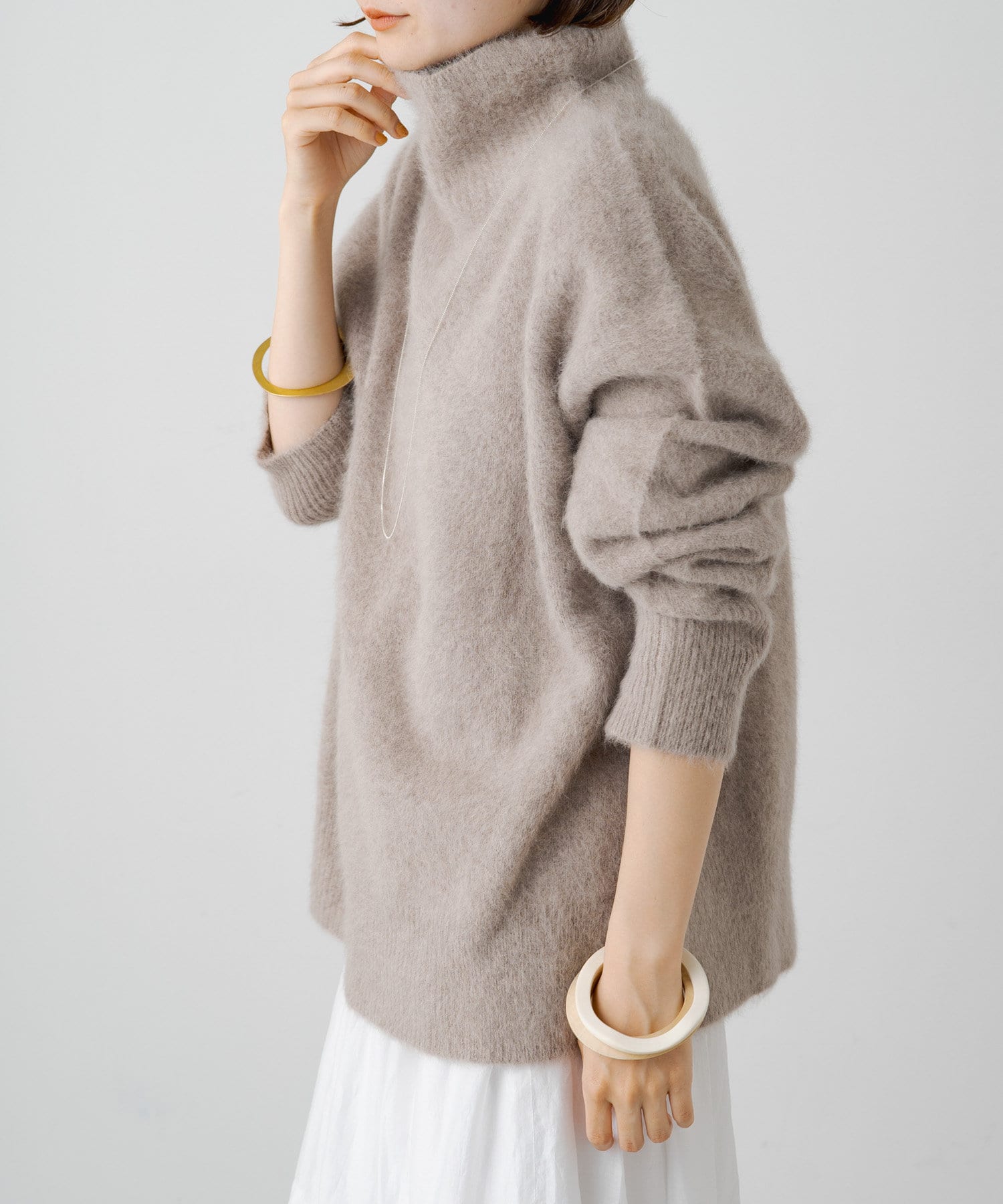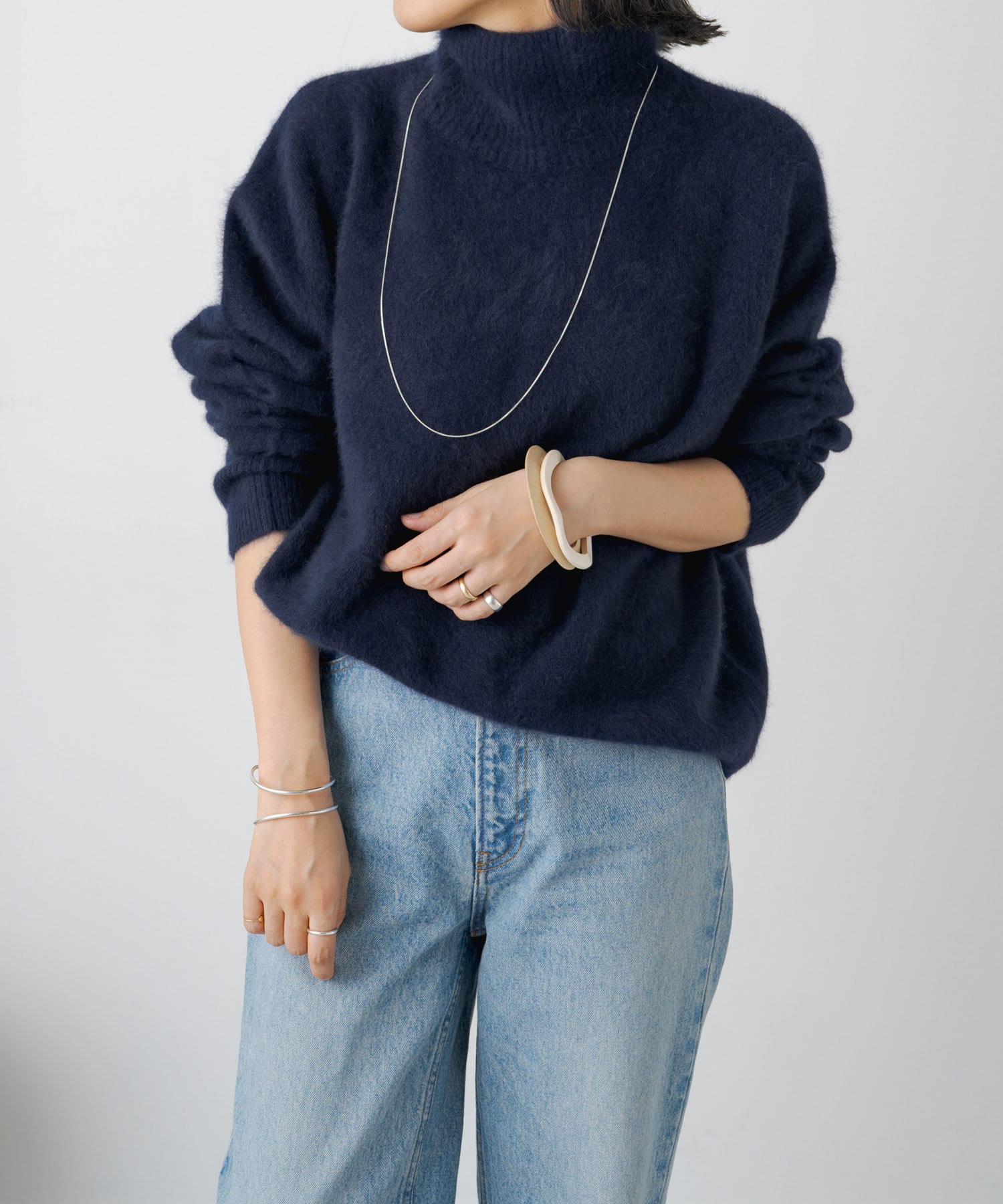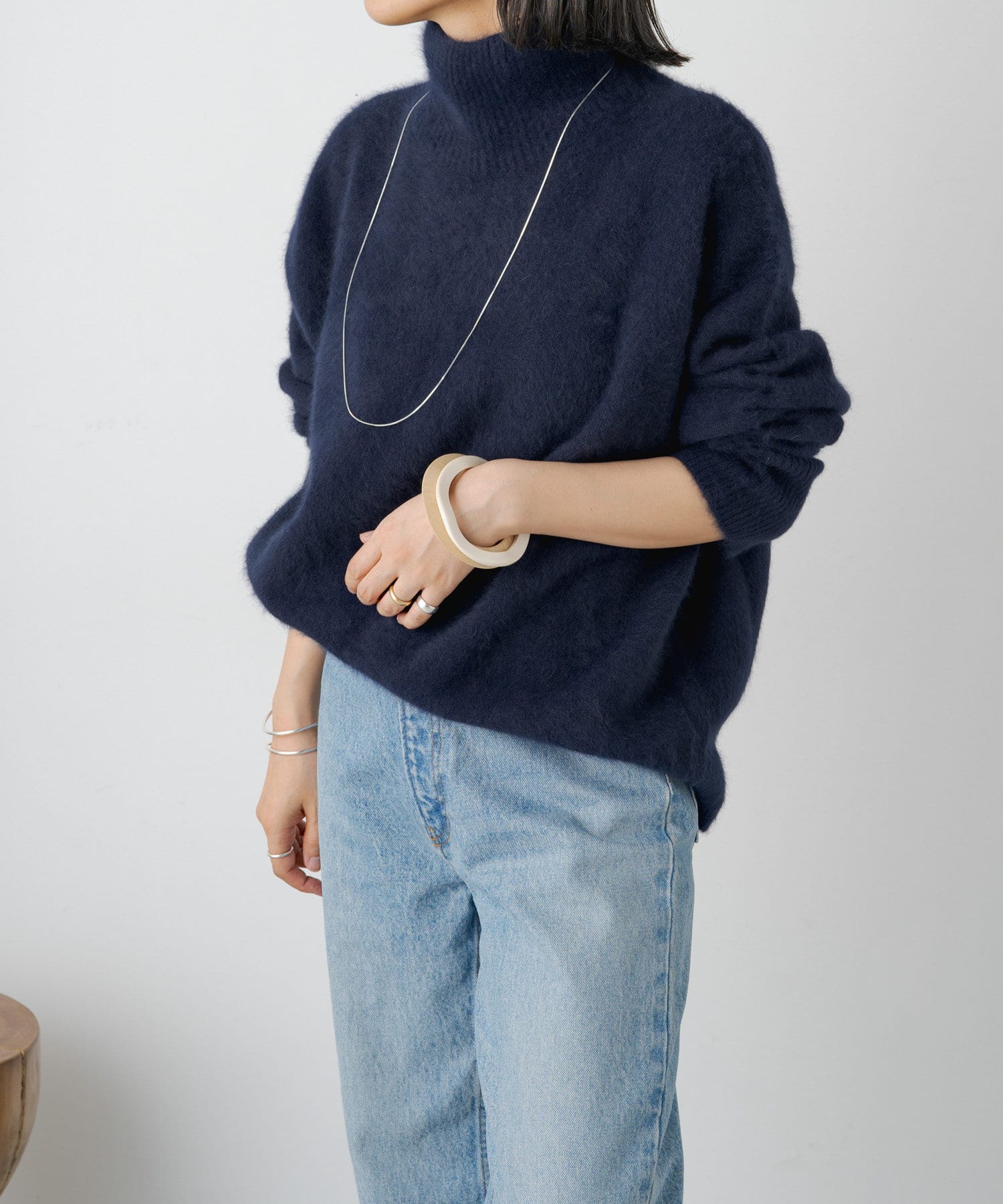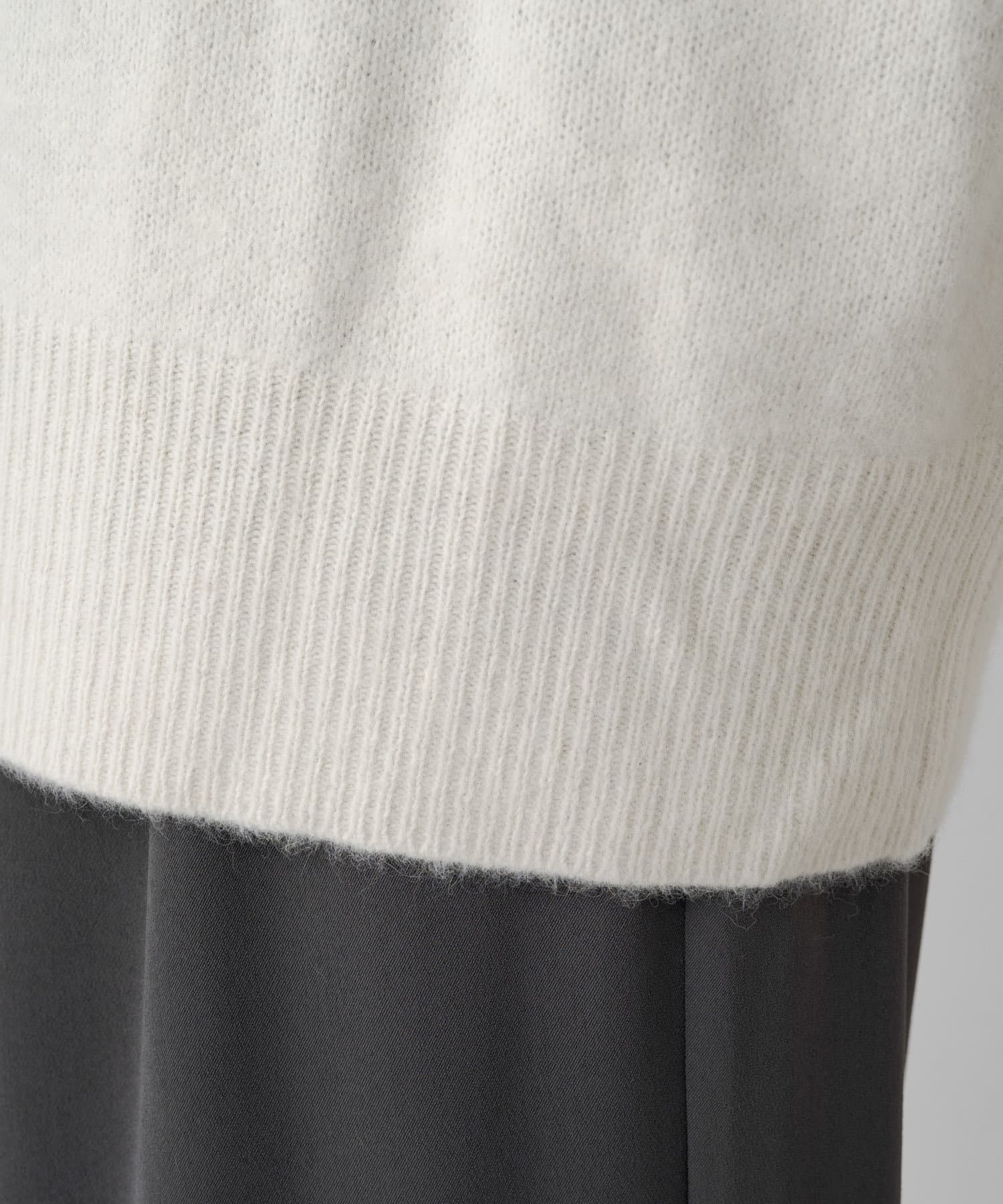 ・程よいボリュームと、表情が映えるヘアリーな風合いがニュアンス感ある雰囲気のニットです。