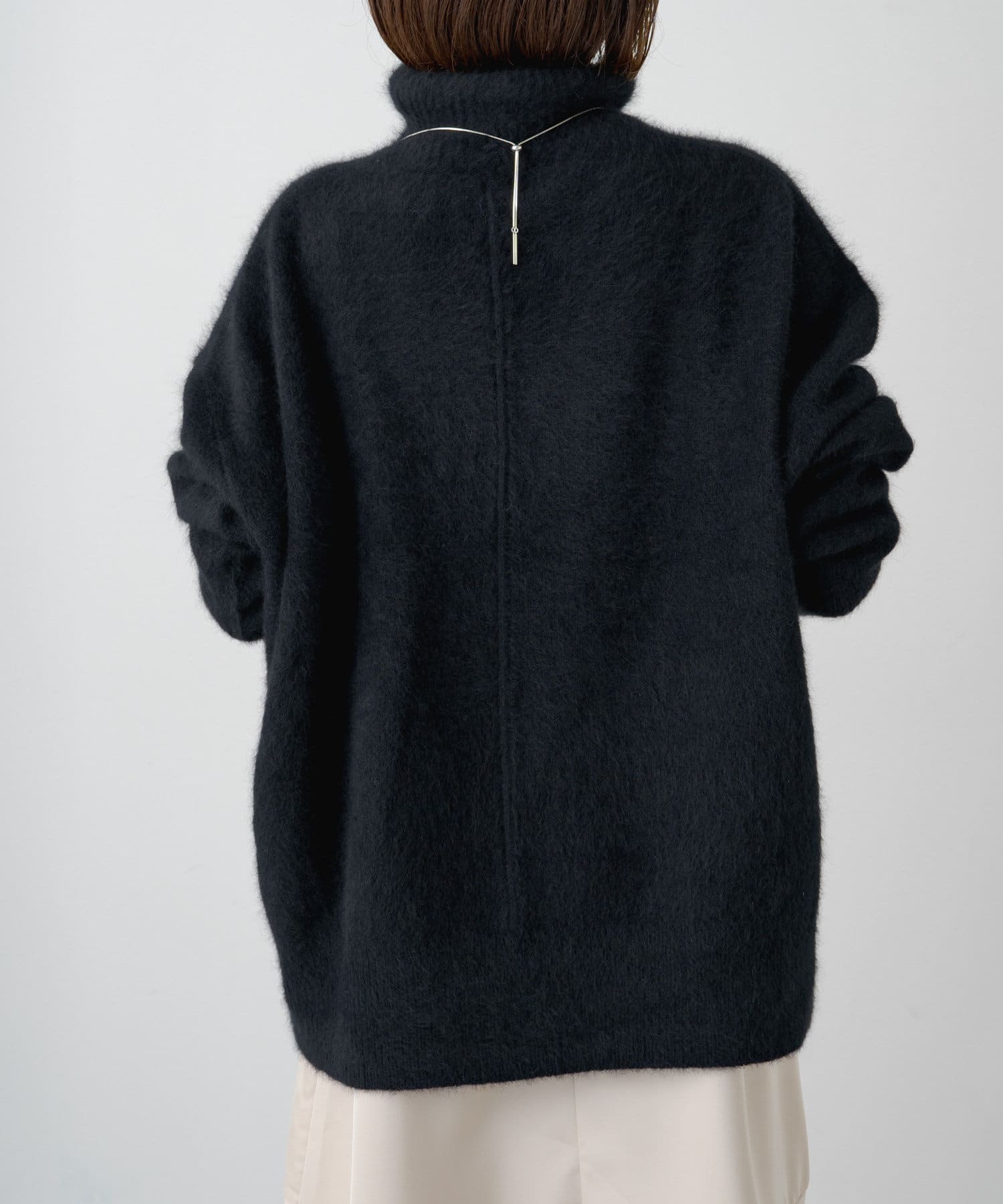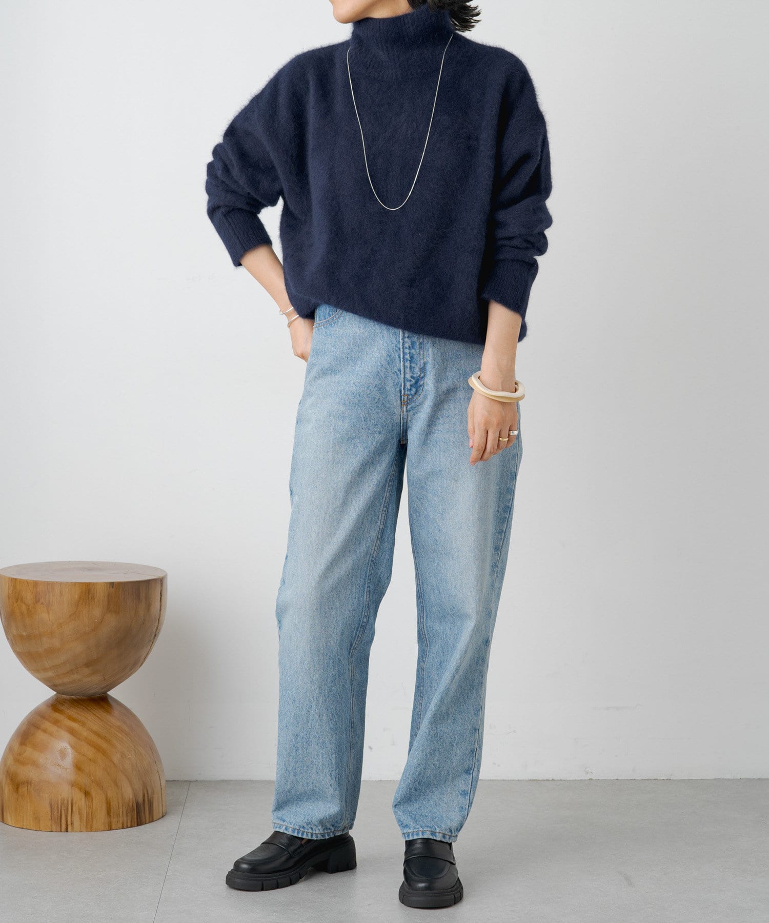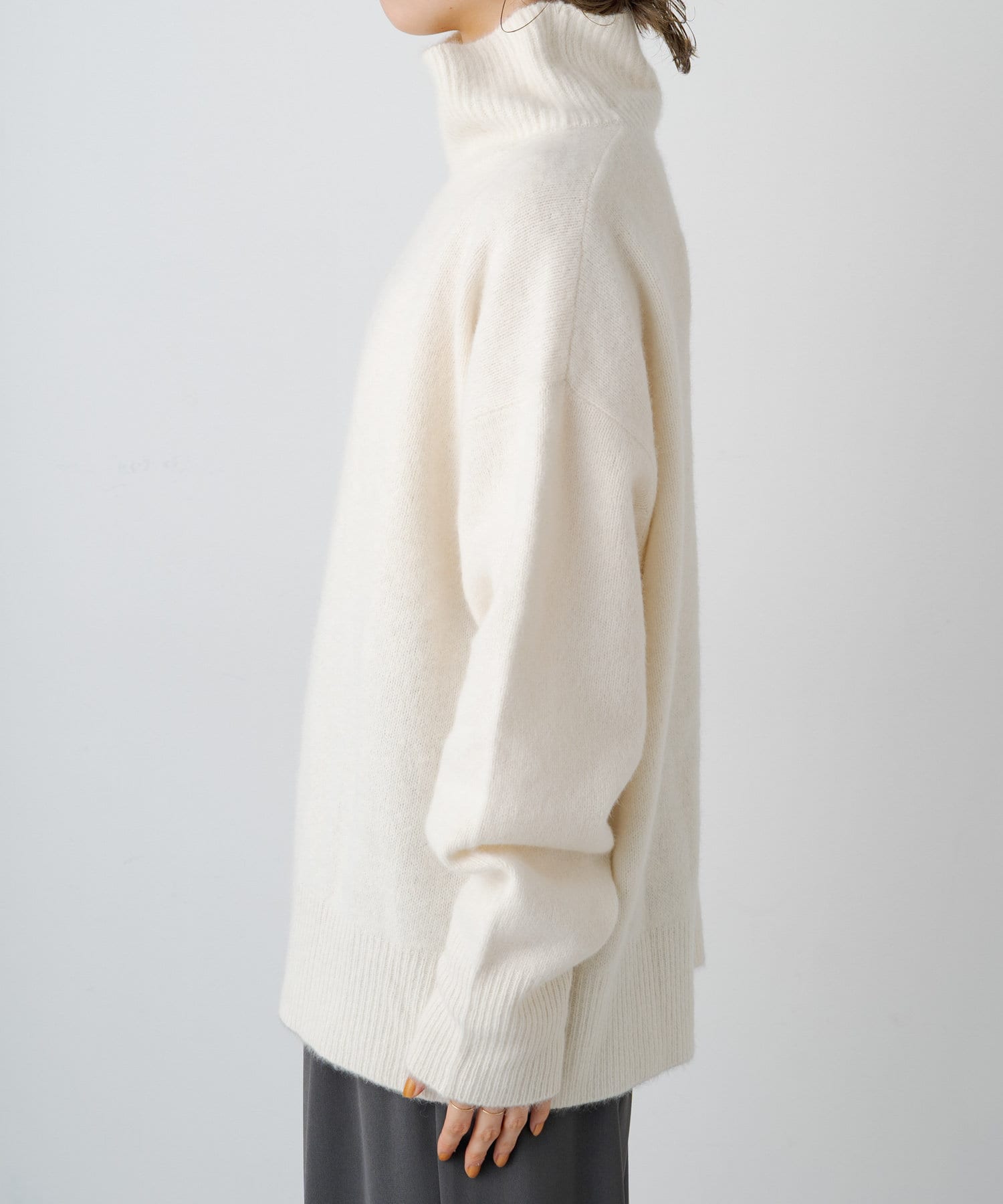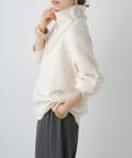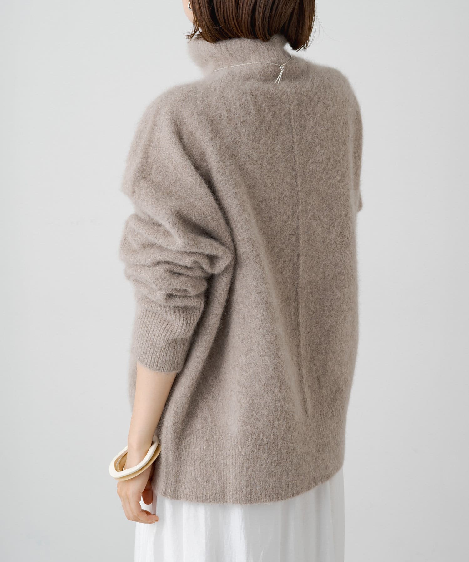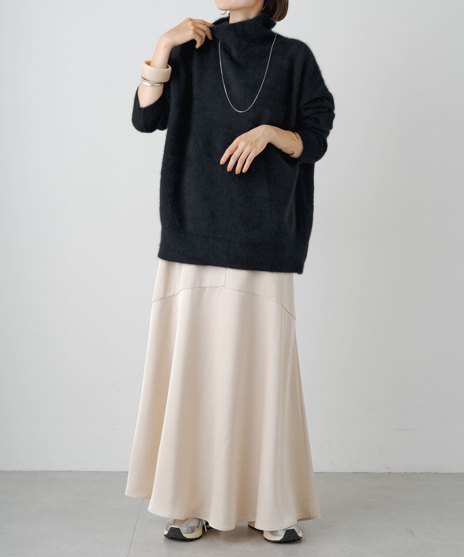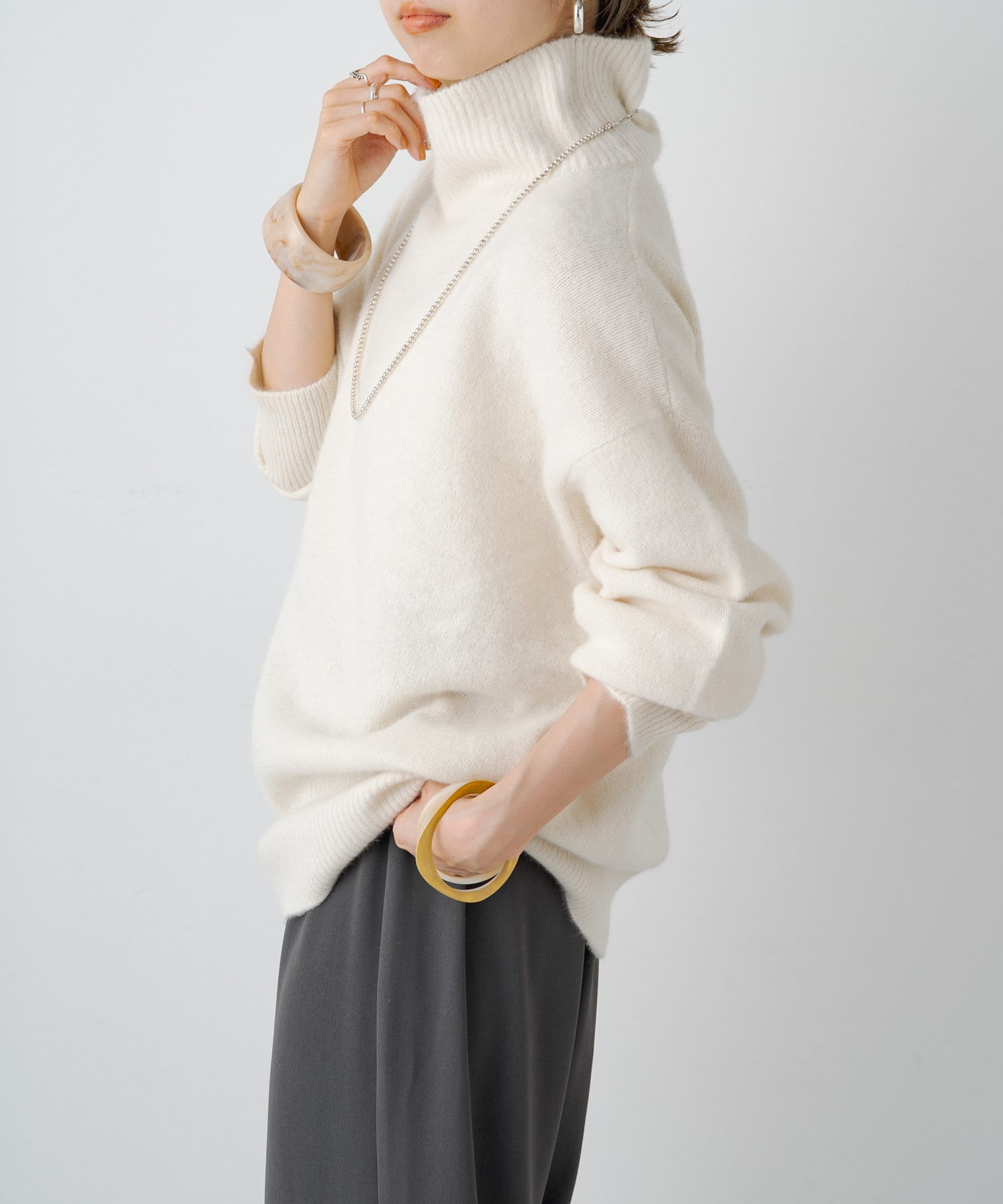 ・程よいボリュームと、表情が映えるヘアリーな風合いがニュアンス感ある雰囲気のニットです。