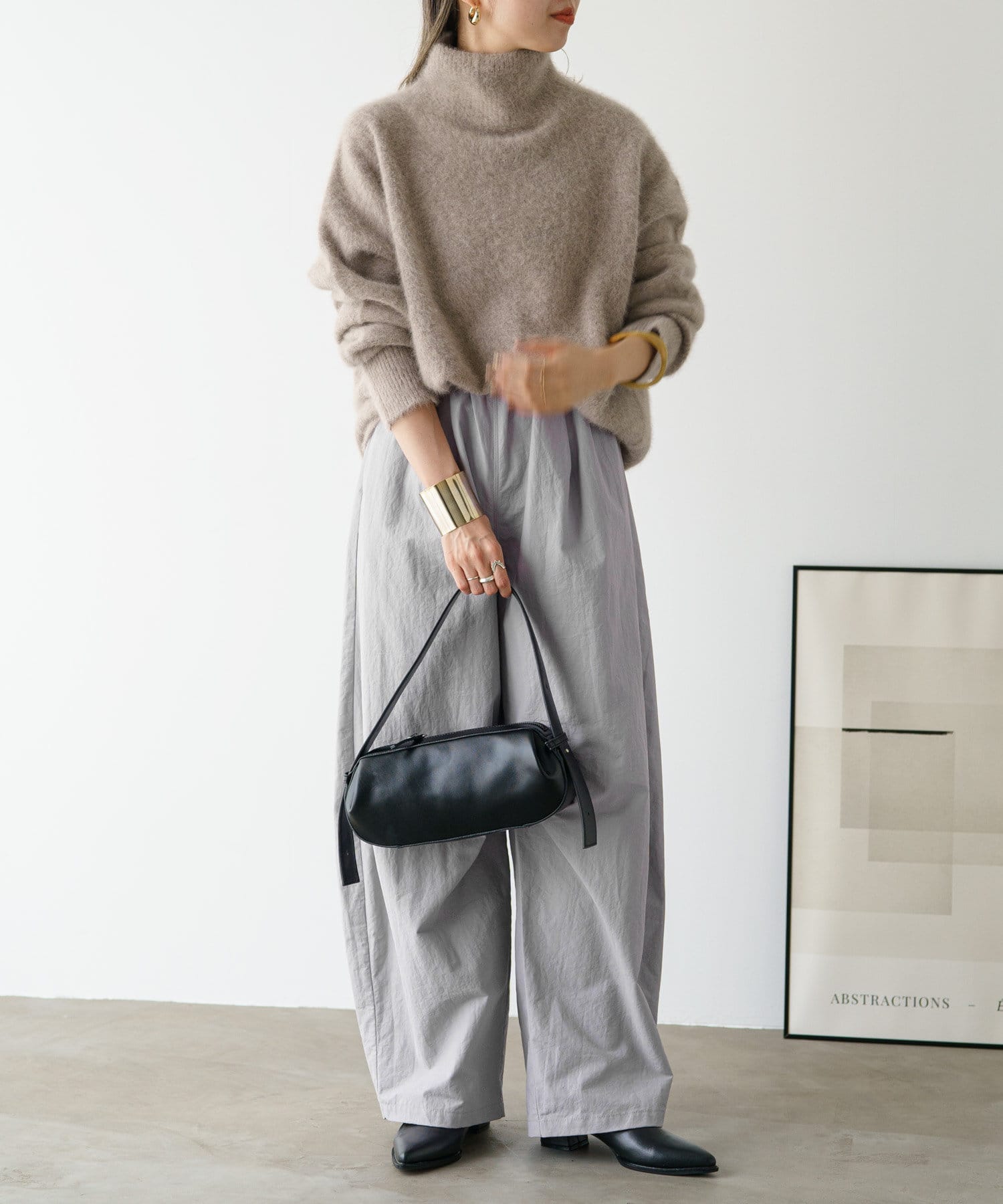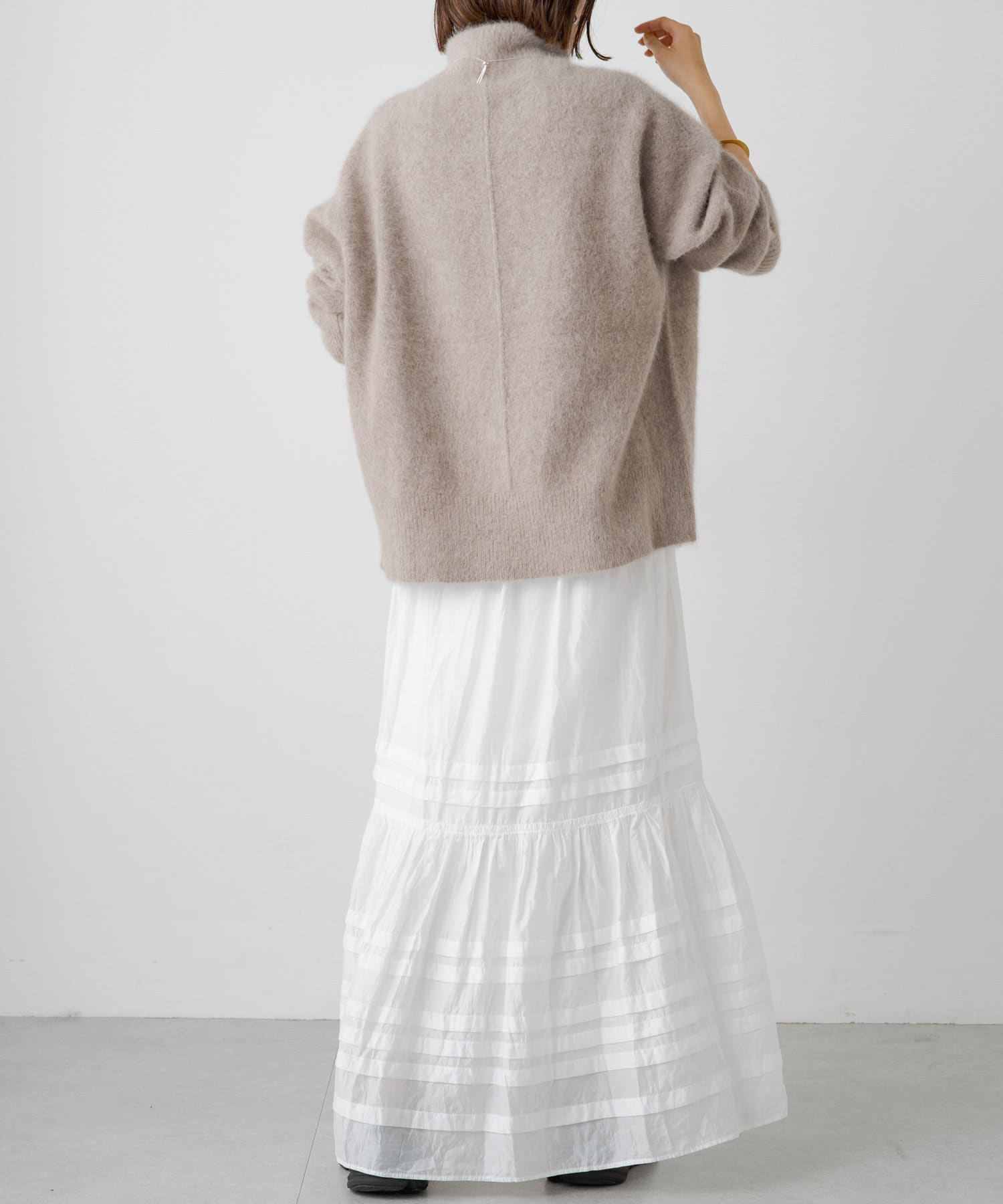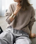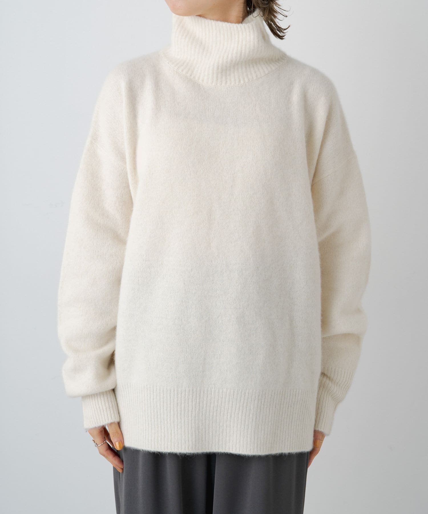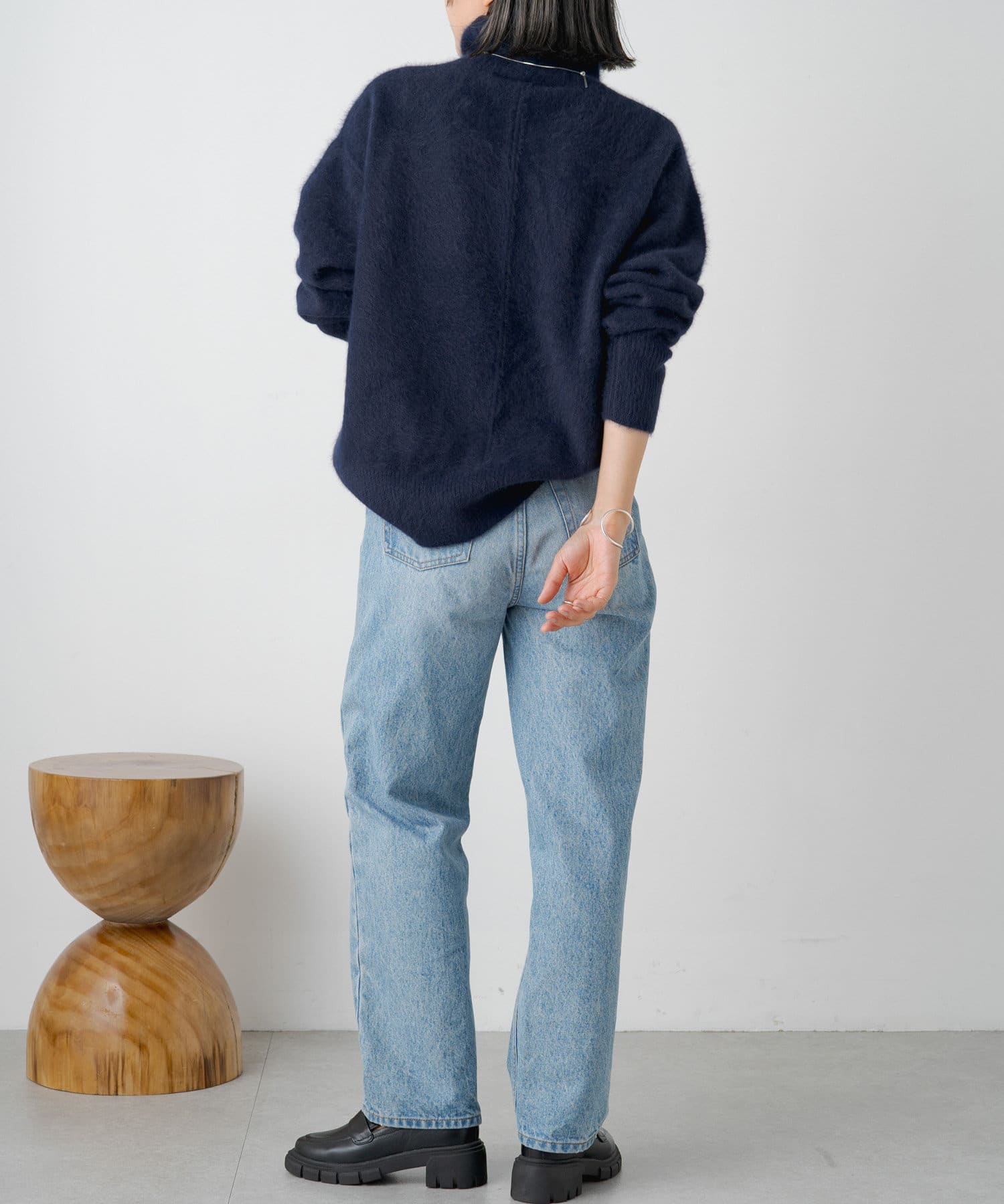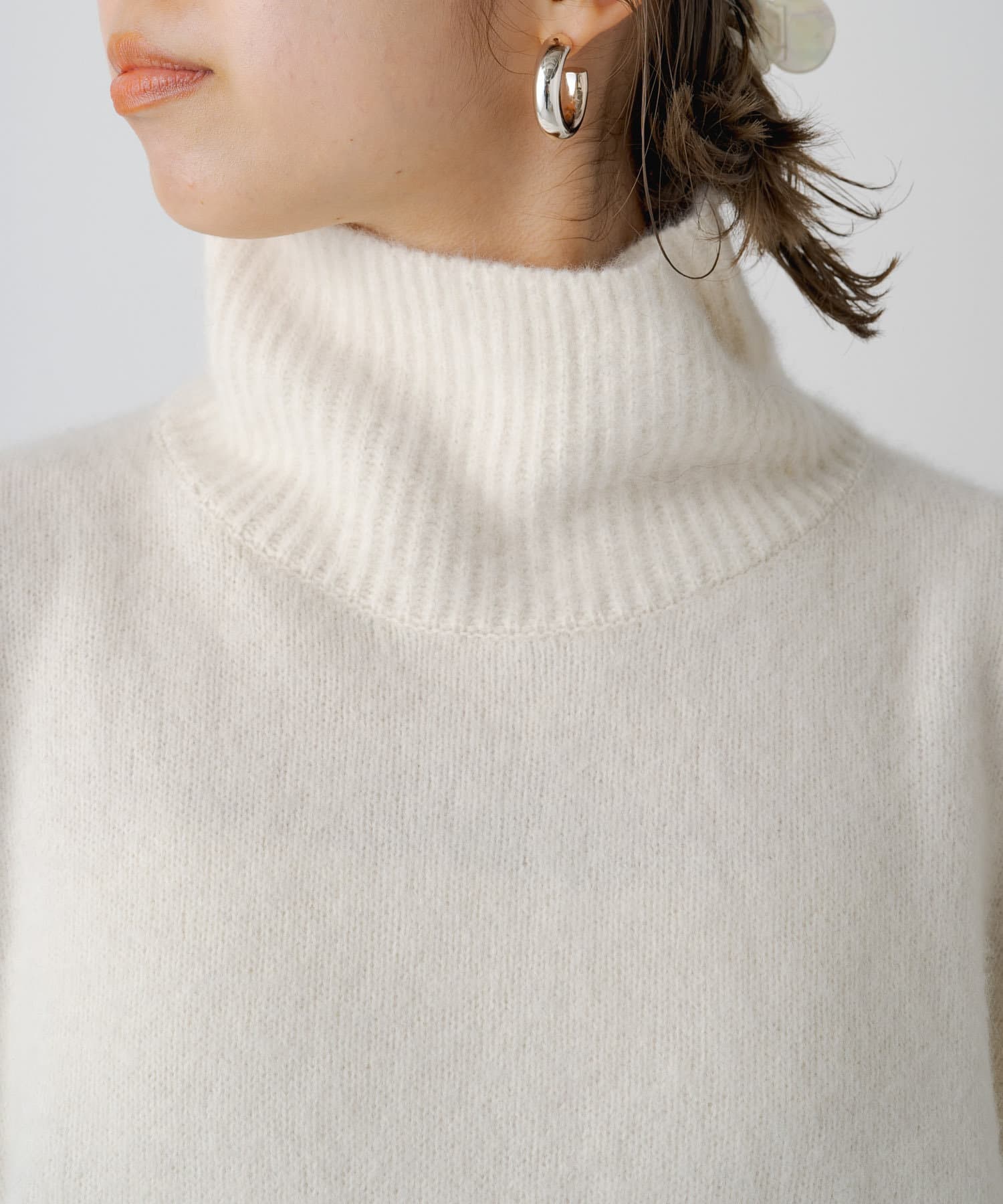 ・程よいボリュームと、表情が映えるヘアリーな風合いがニュアンス感ある雰囲気のニットです。