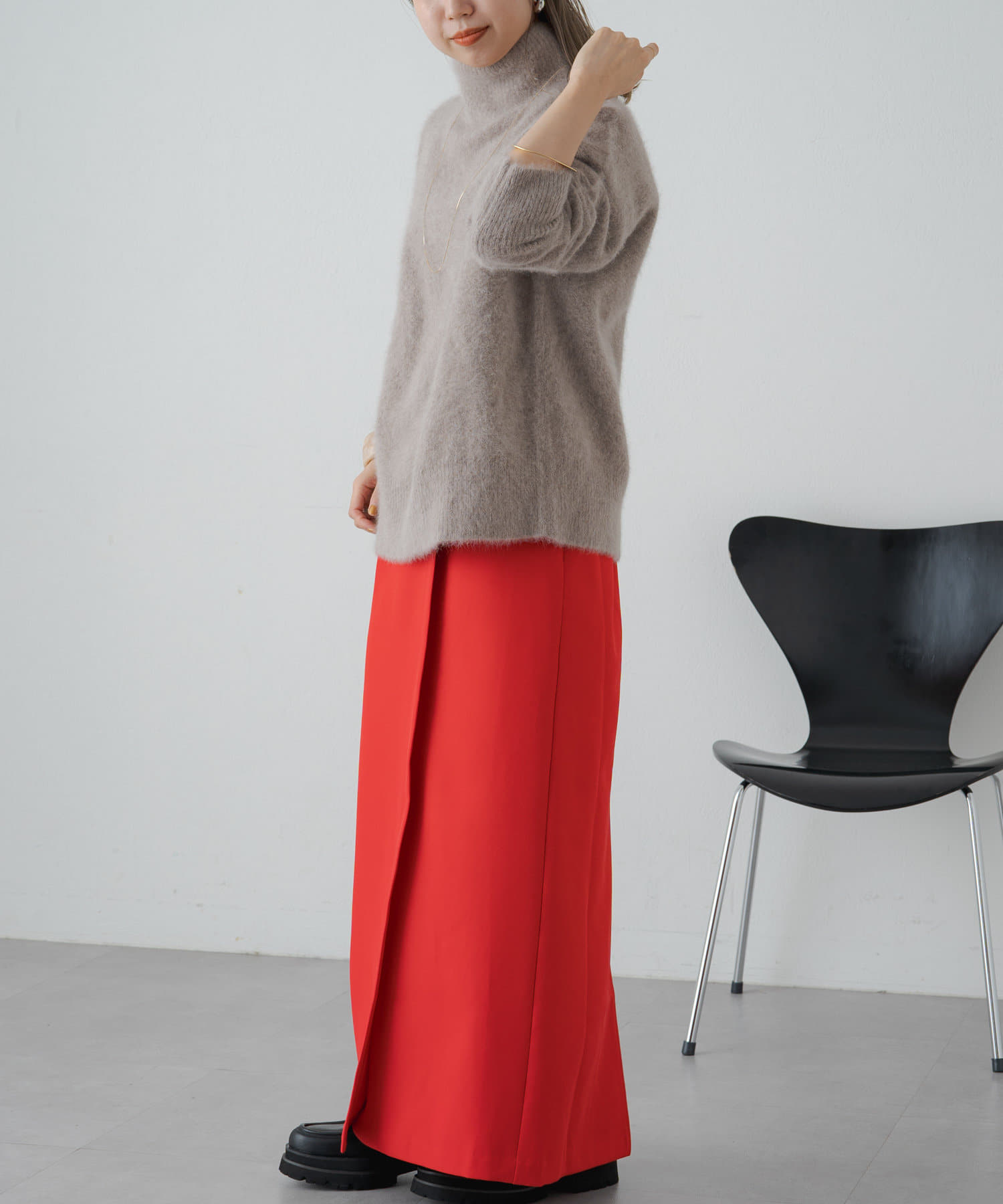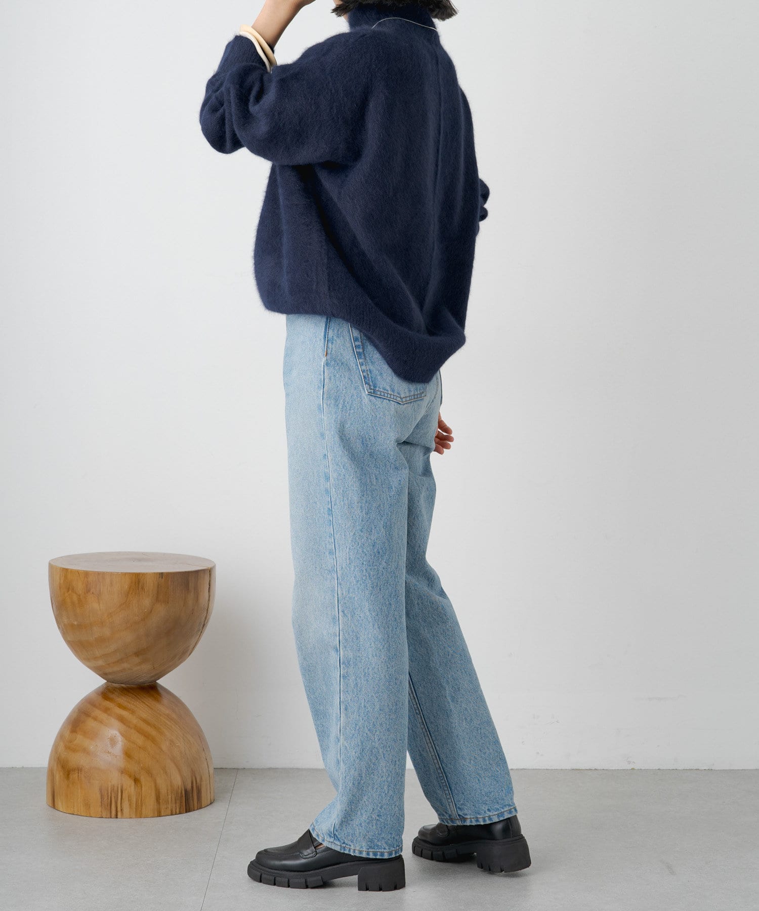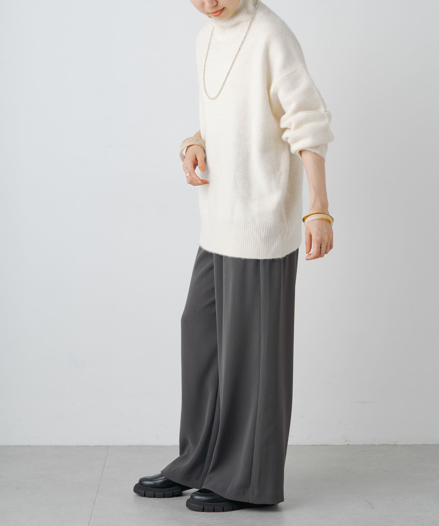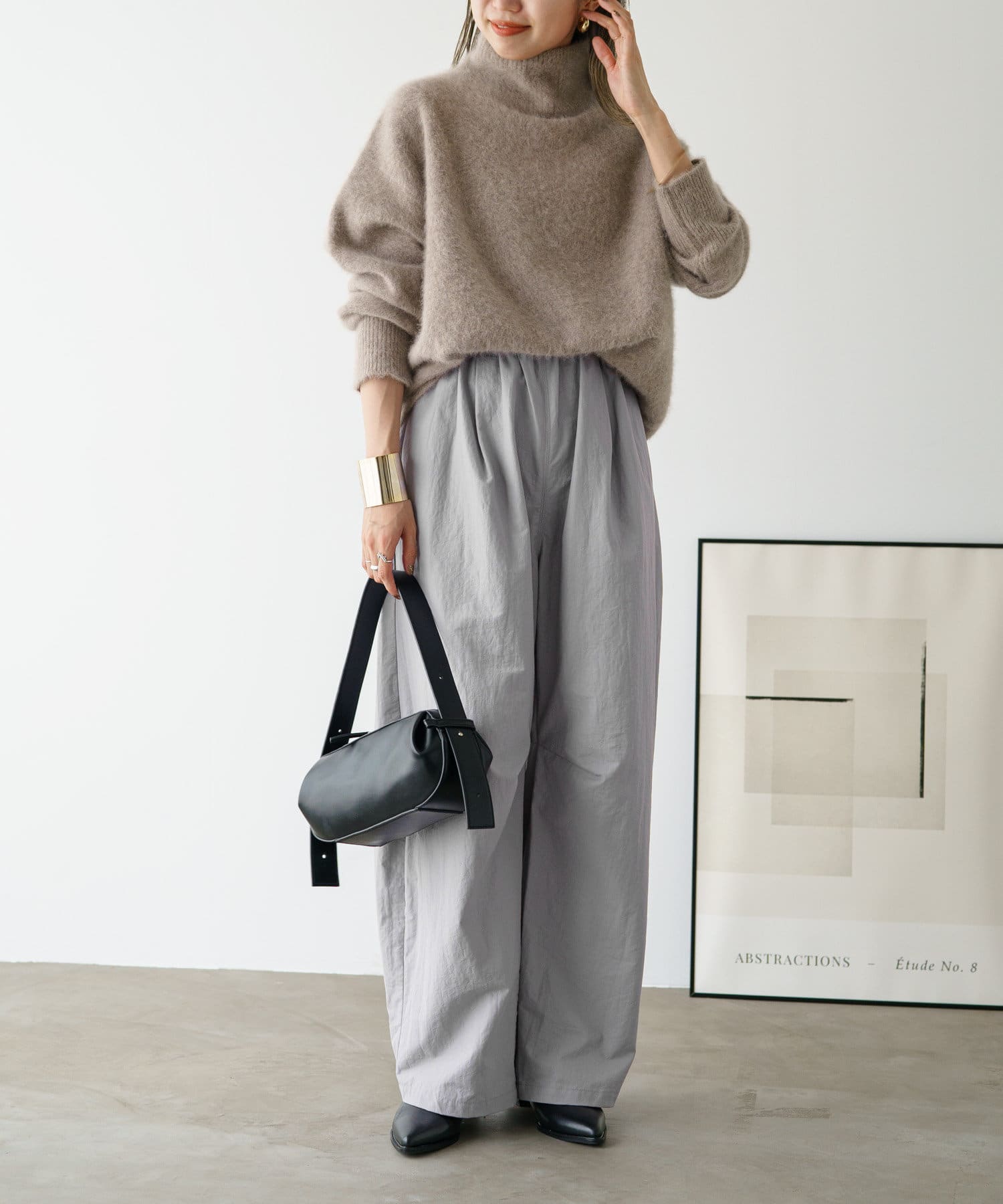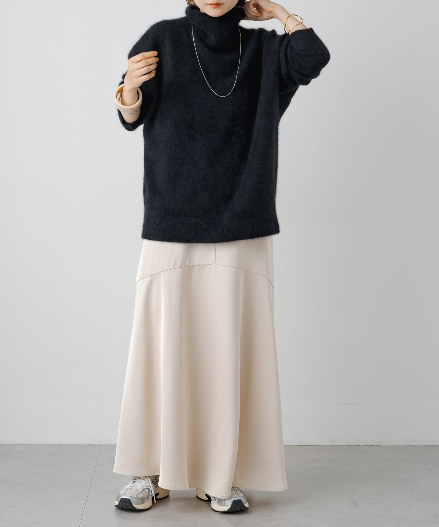 ・程よいボリュームと、表情が映えるヘアリーな風合いがニュアンス感ある雰囲気のニットです。