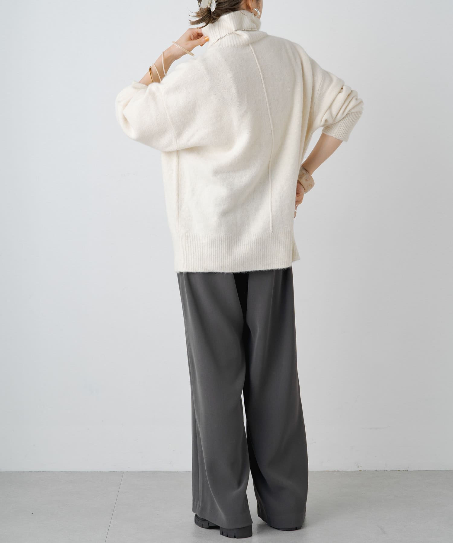 ・首元にゆとりのあるハイネックデザインで、ハイネックが苦手な方にもおすすめ◎