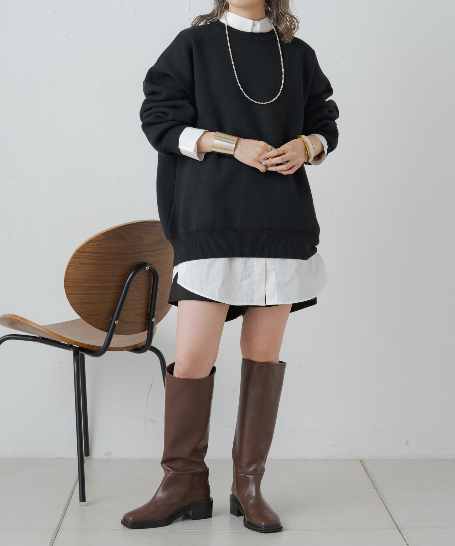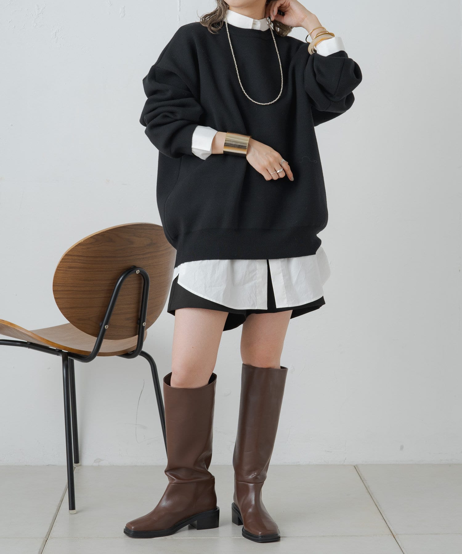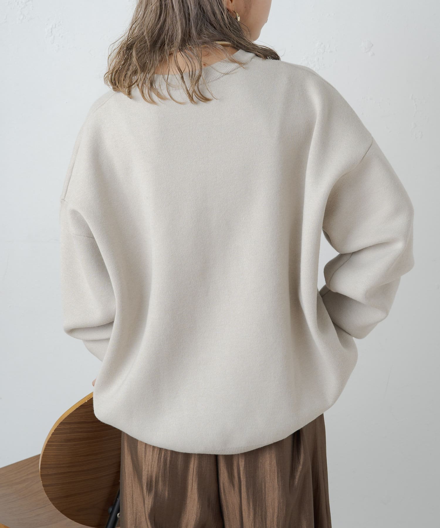 ・ニット素材ですが、スウェットの様にしっかりとしたややハリのある生地感で、季節問わずに長くお使いいただけます◎手洗い可能なのも嬉しいポイント◎