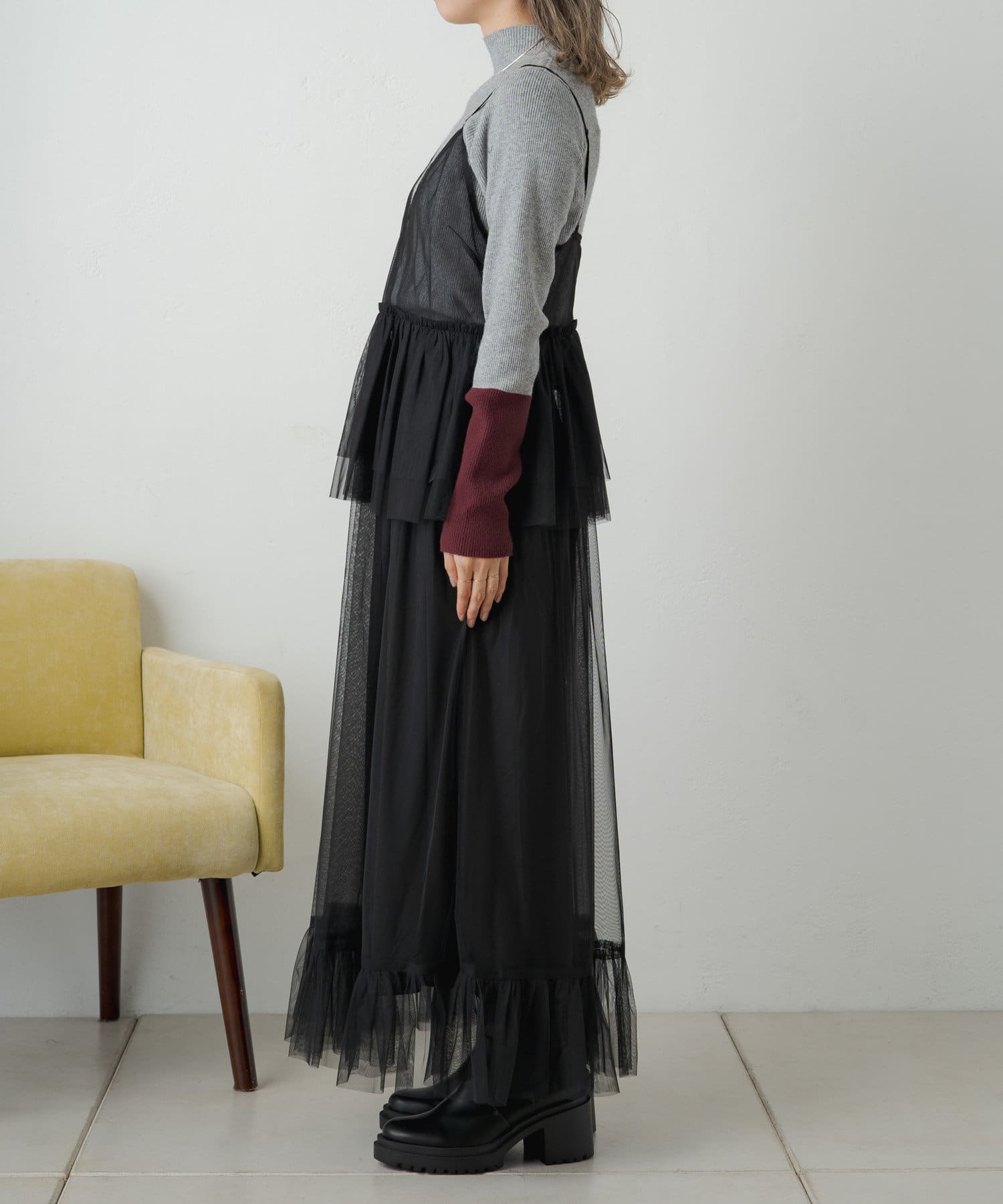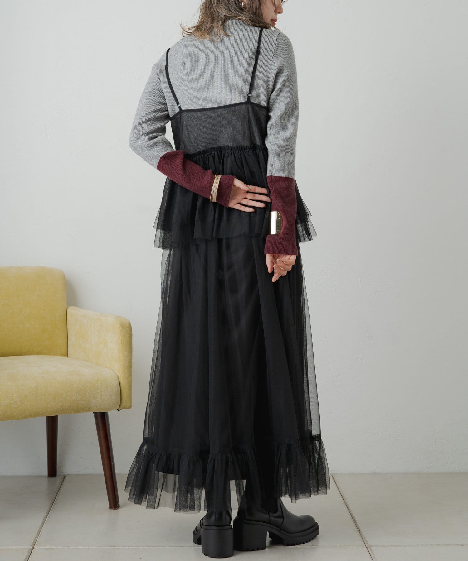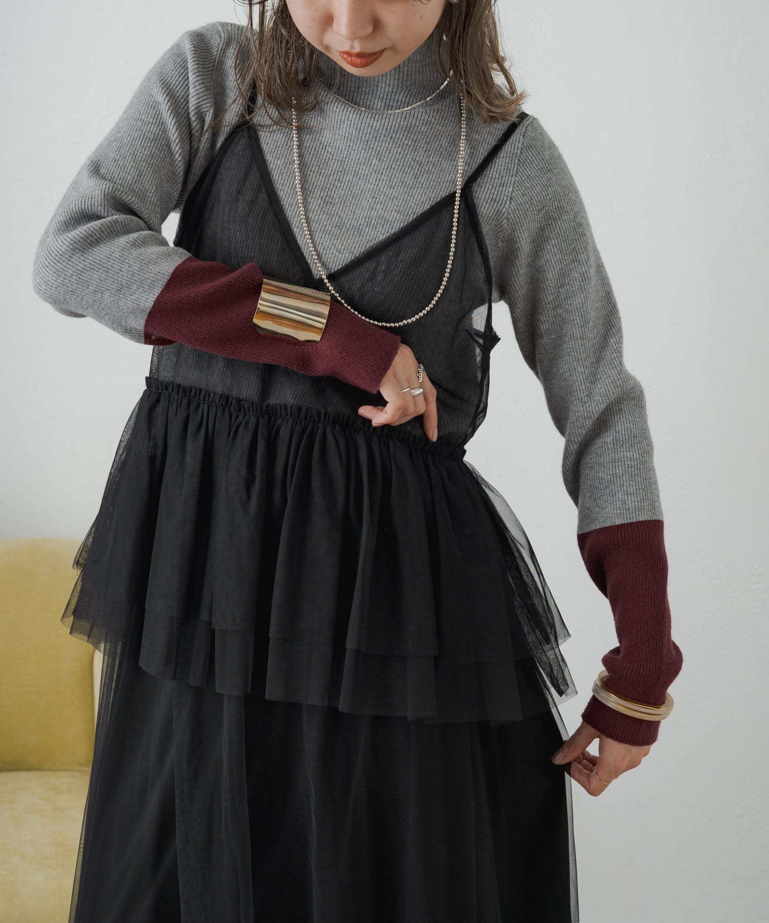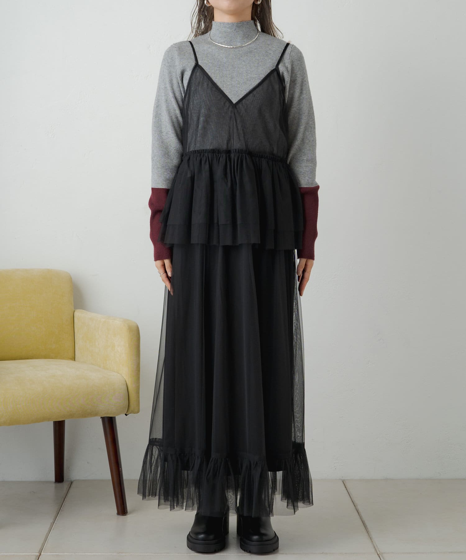 旬なレイヤードスタイルを楽しめるチュールワンピース