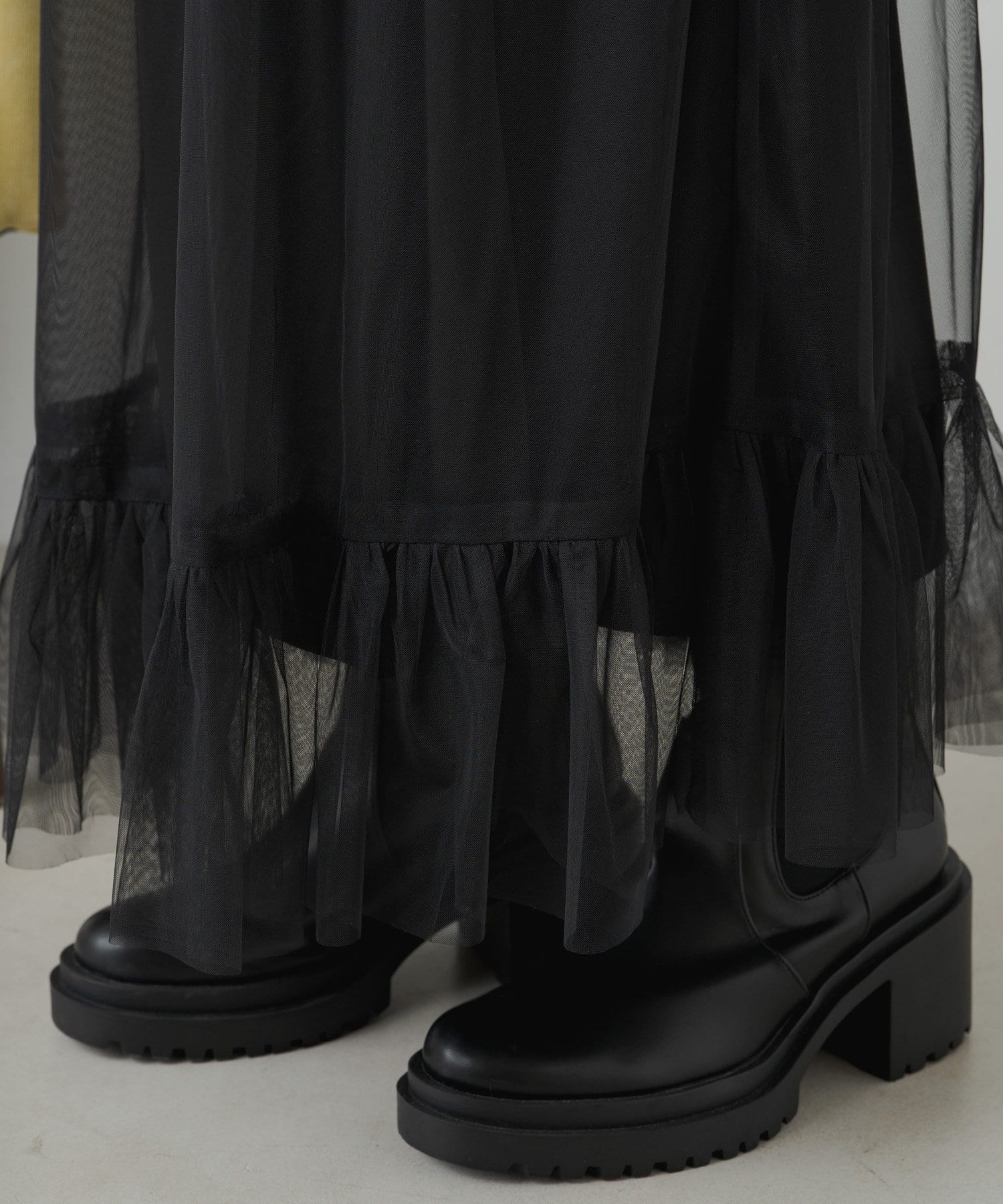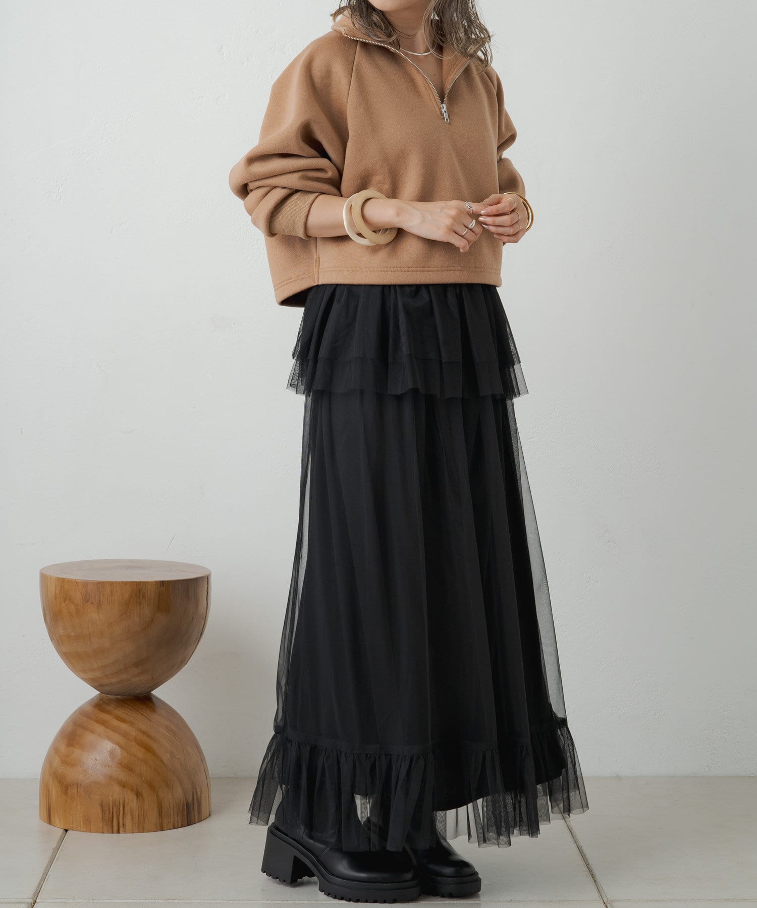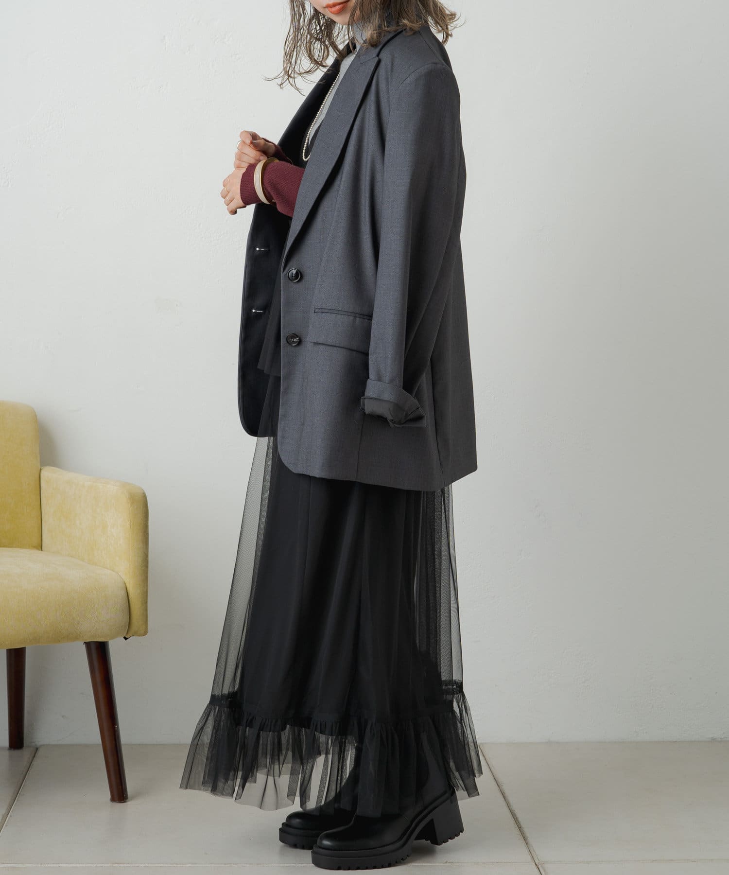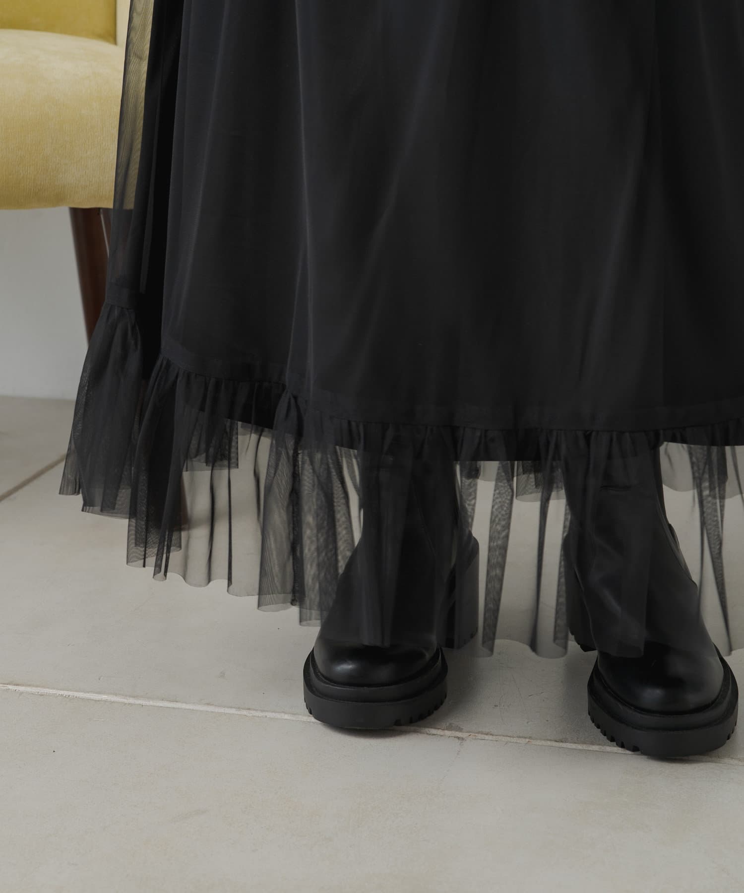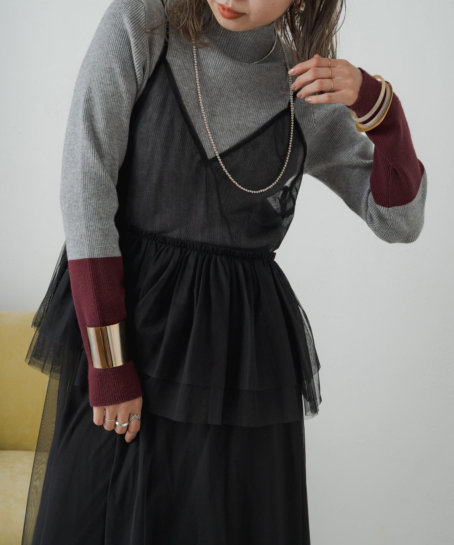 旬なレイヤードスタイルを楽しめるチュールワンピース