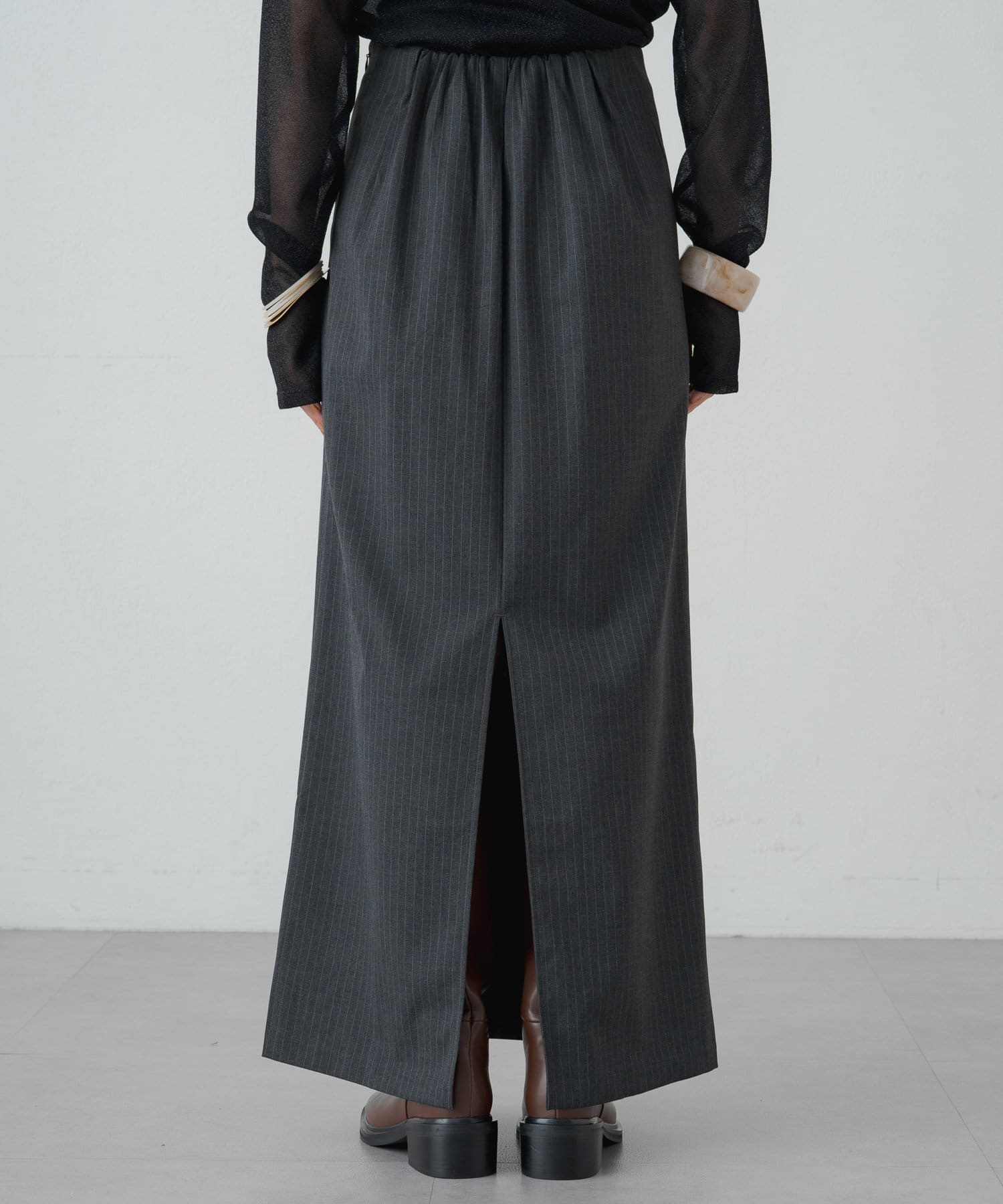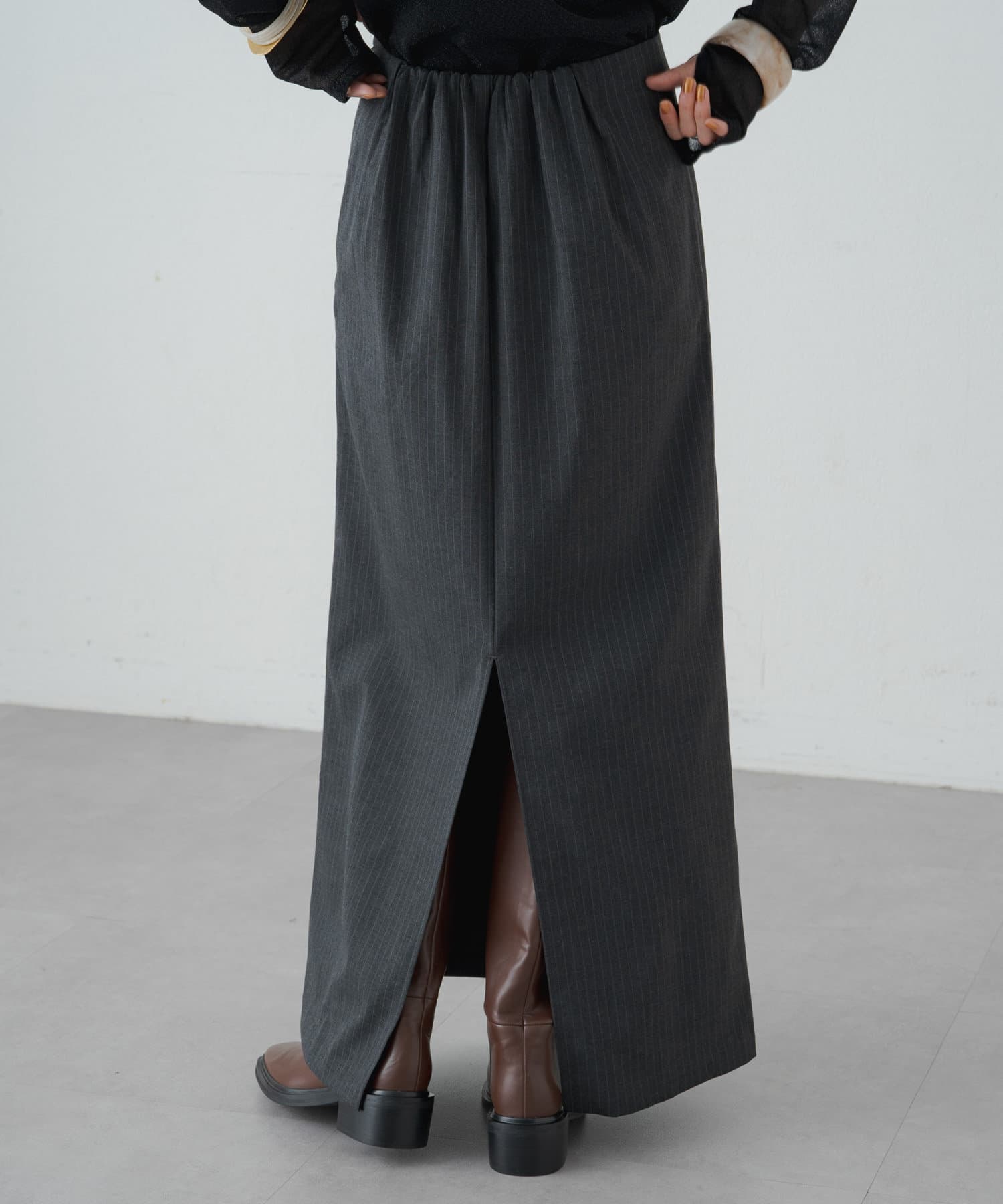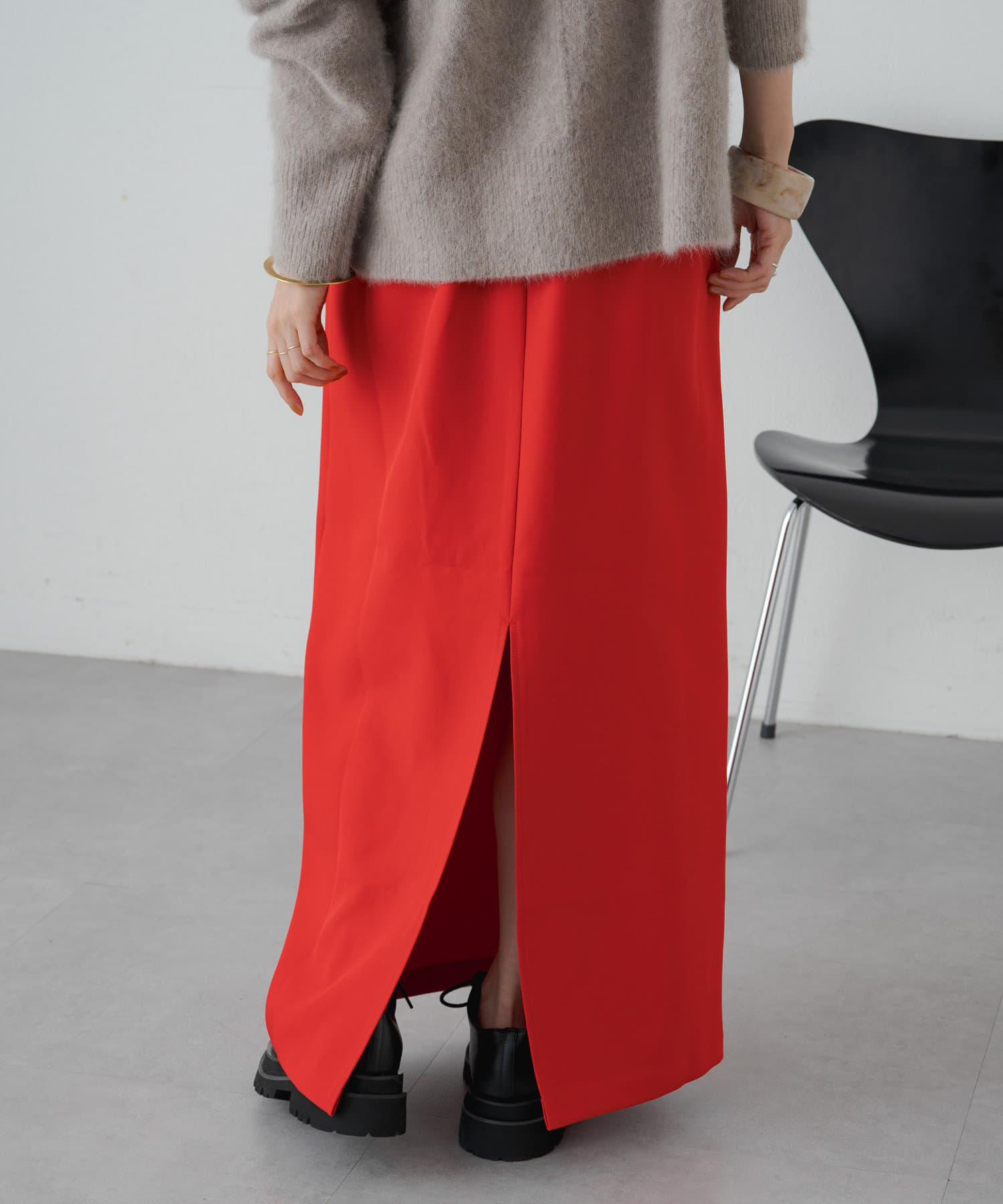 ・女性らしいIラインで、華奢見えするロングスカート。細身のシルエットながら後ろにスリットが入っているので脚捌きしやすく歩きやすさも◎