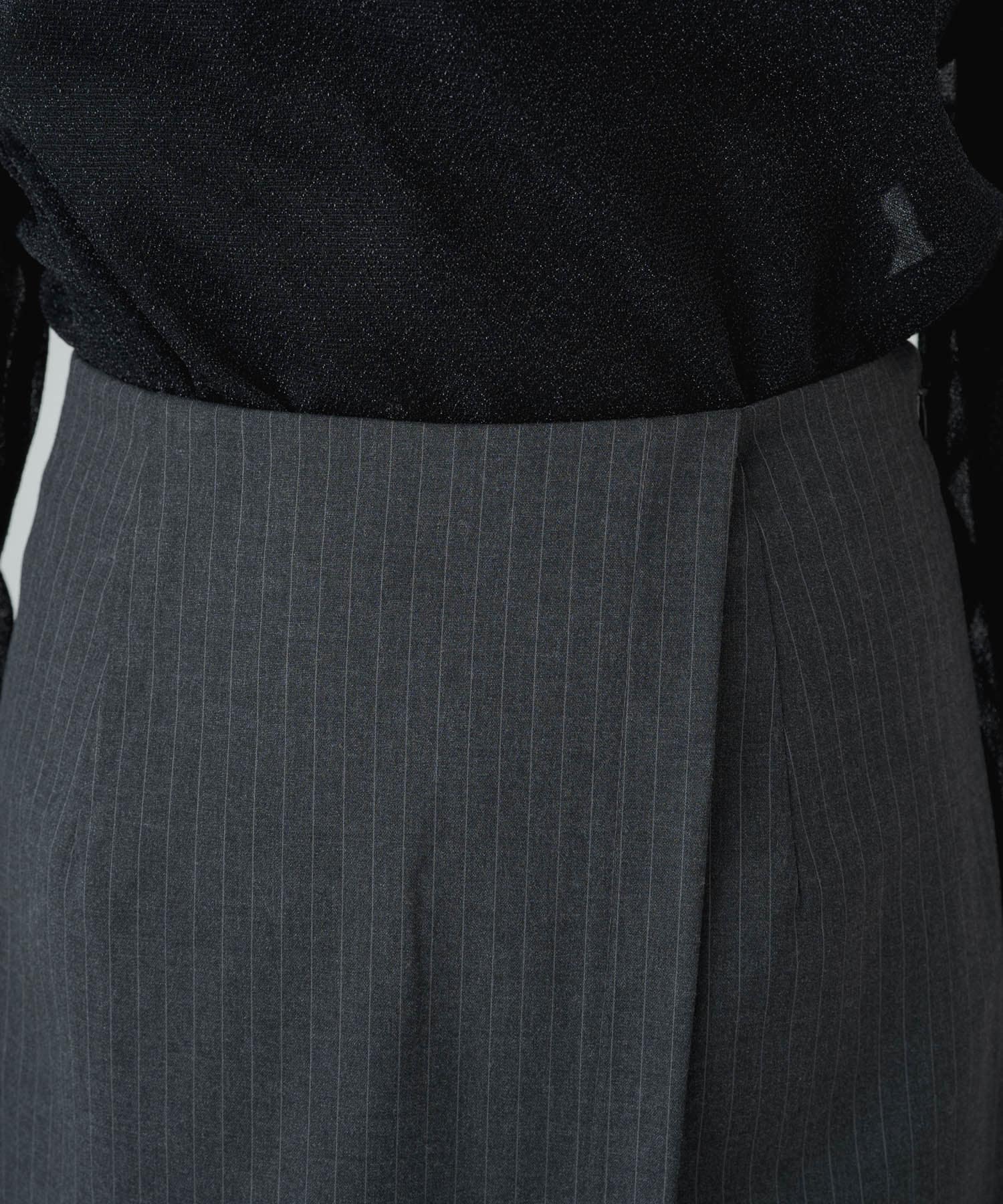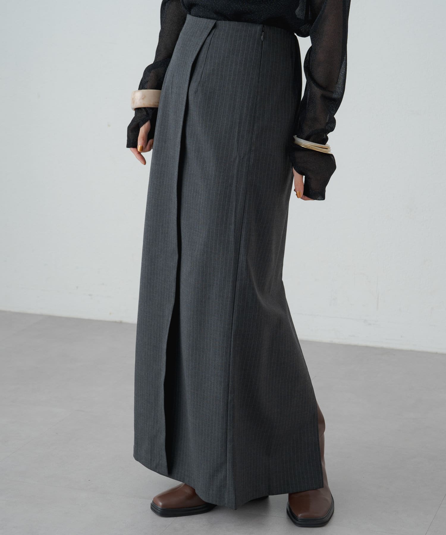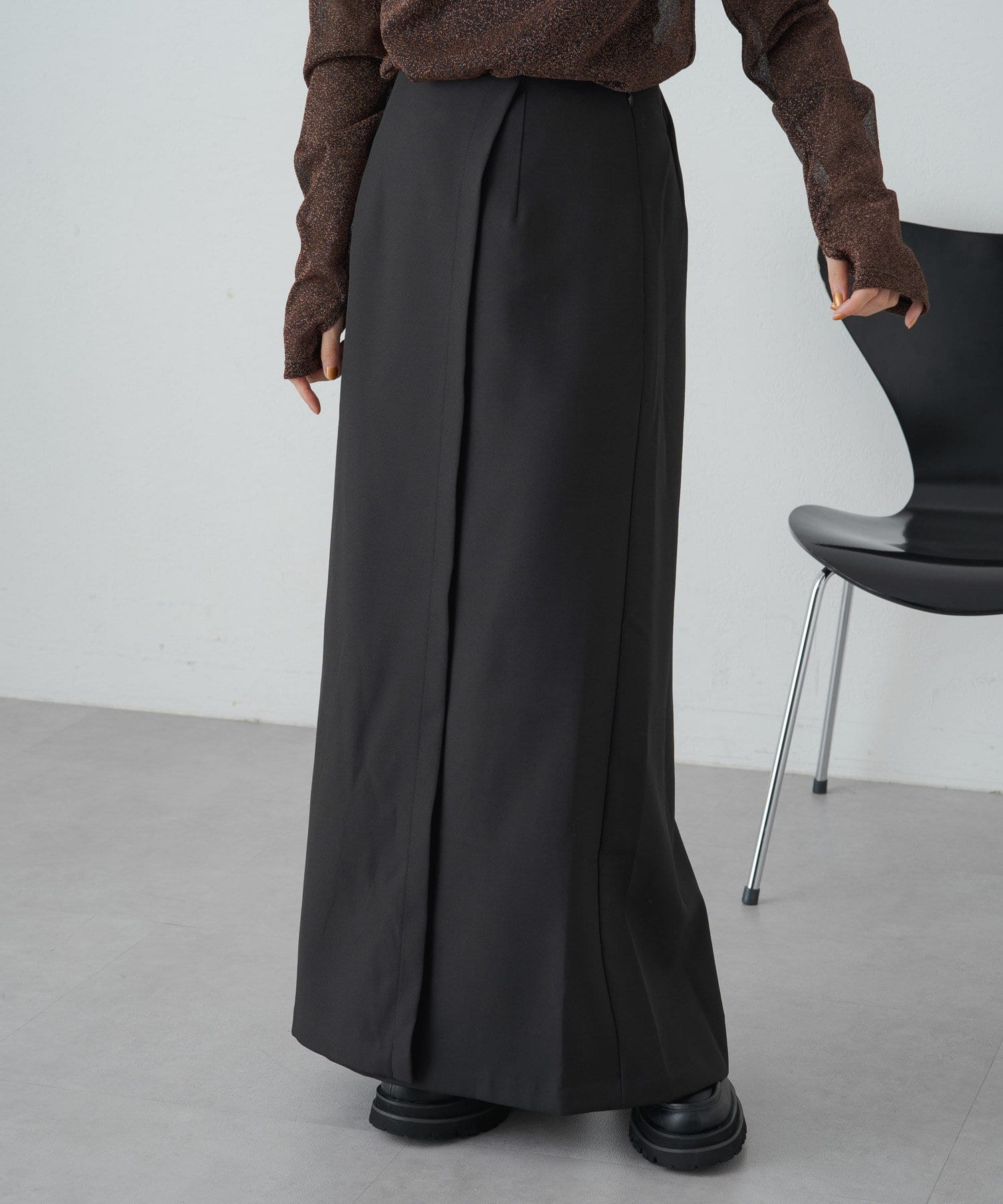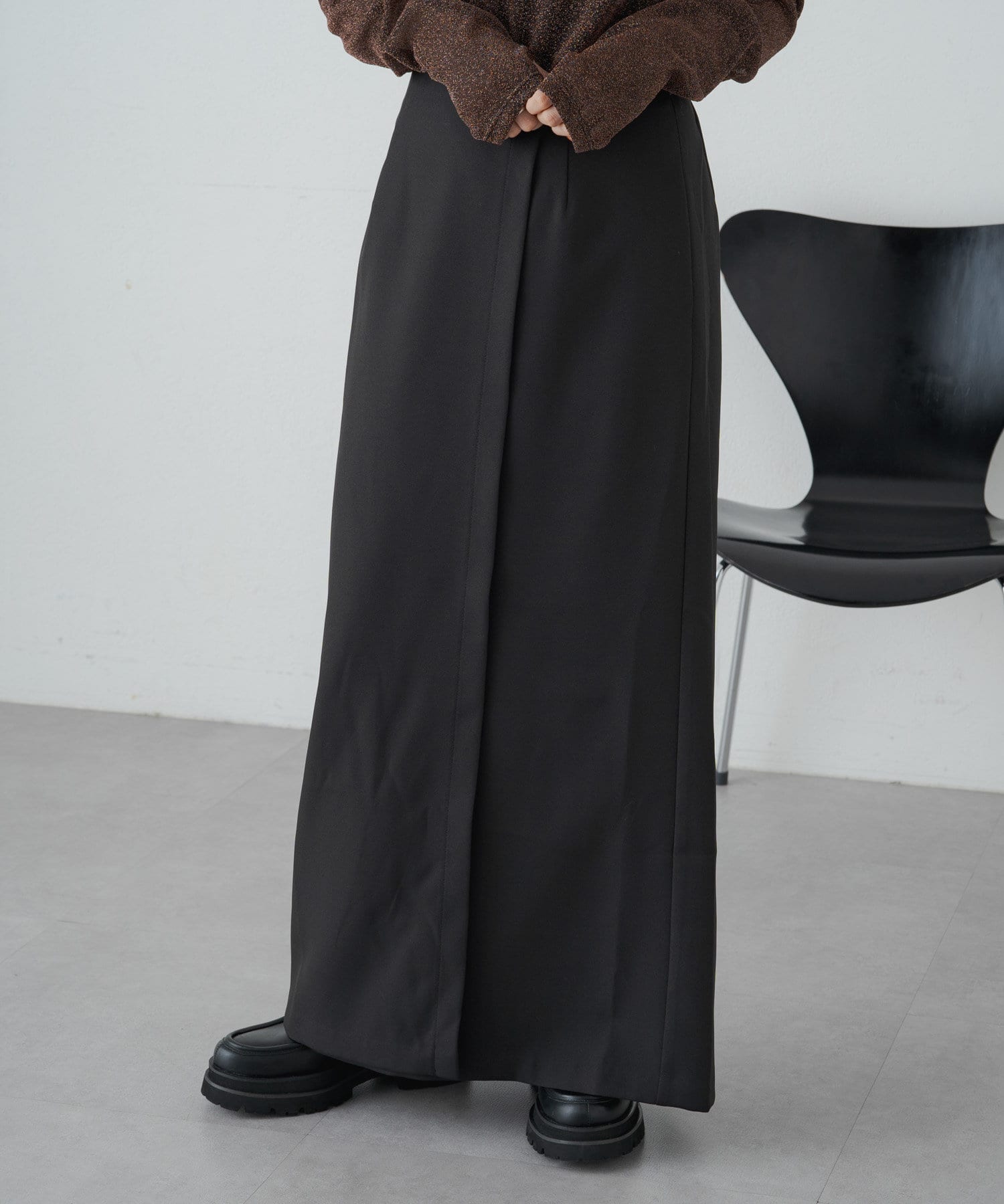女性らしいIラインシルエットのラップロングスカート