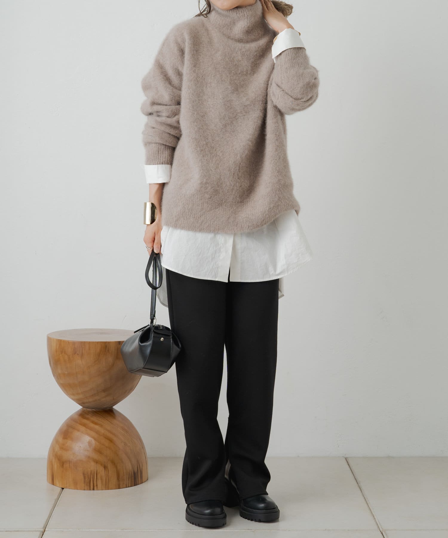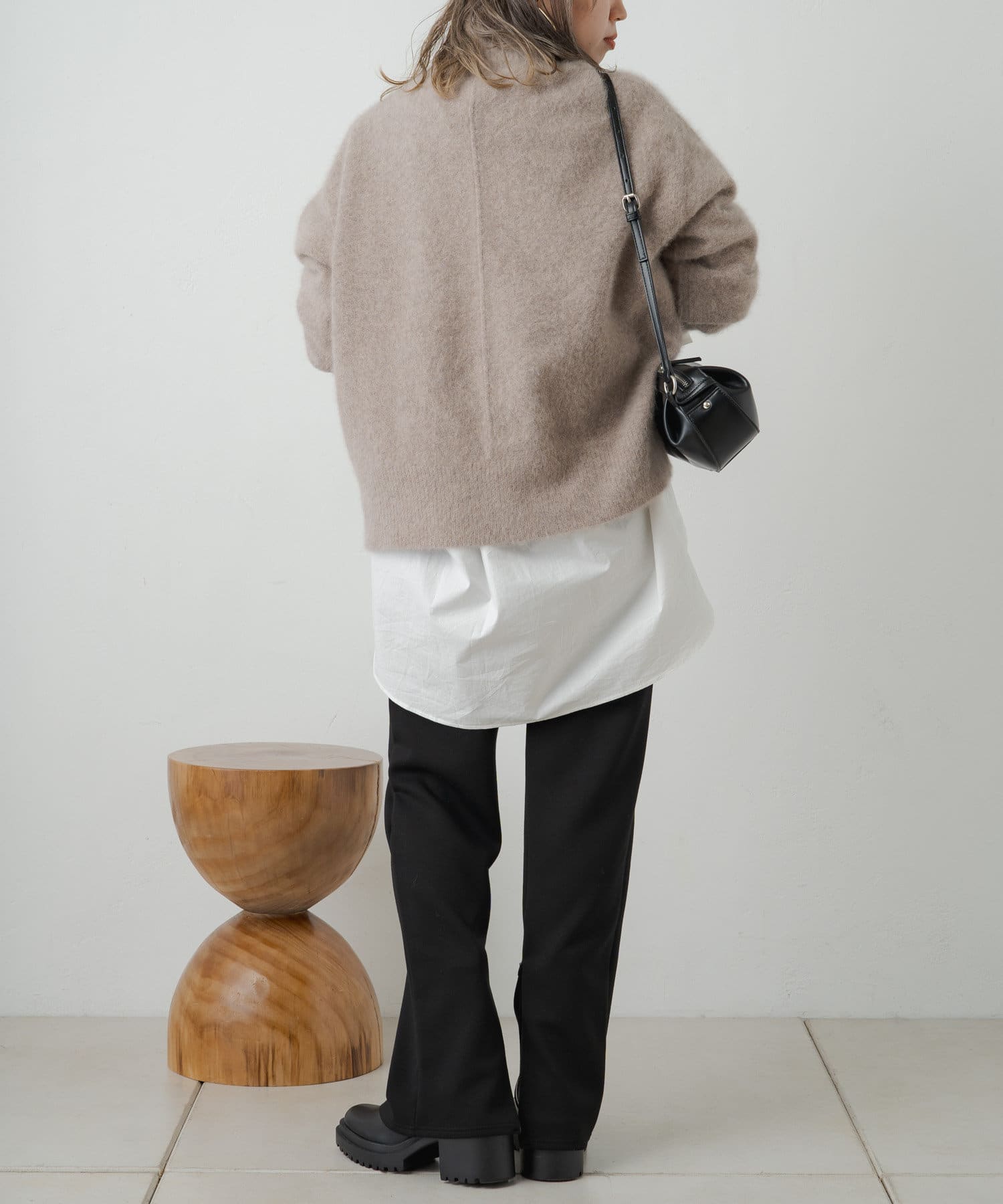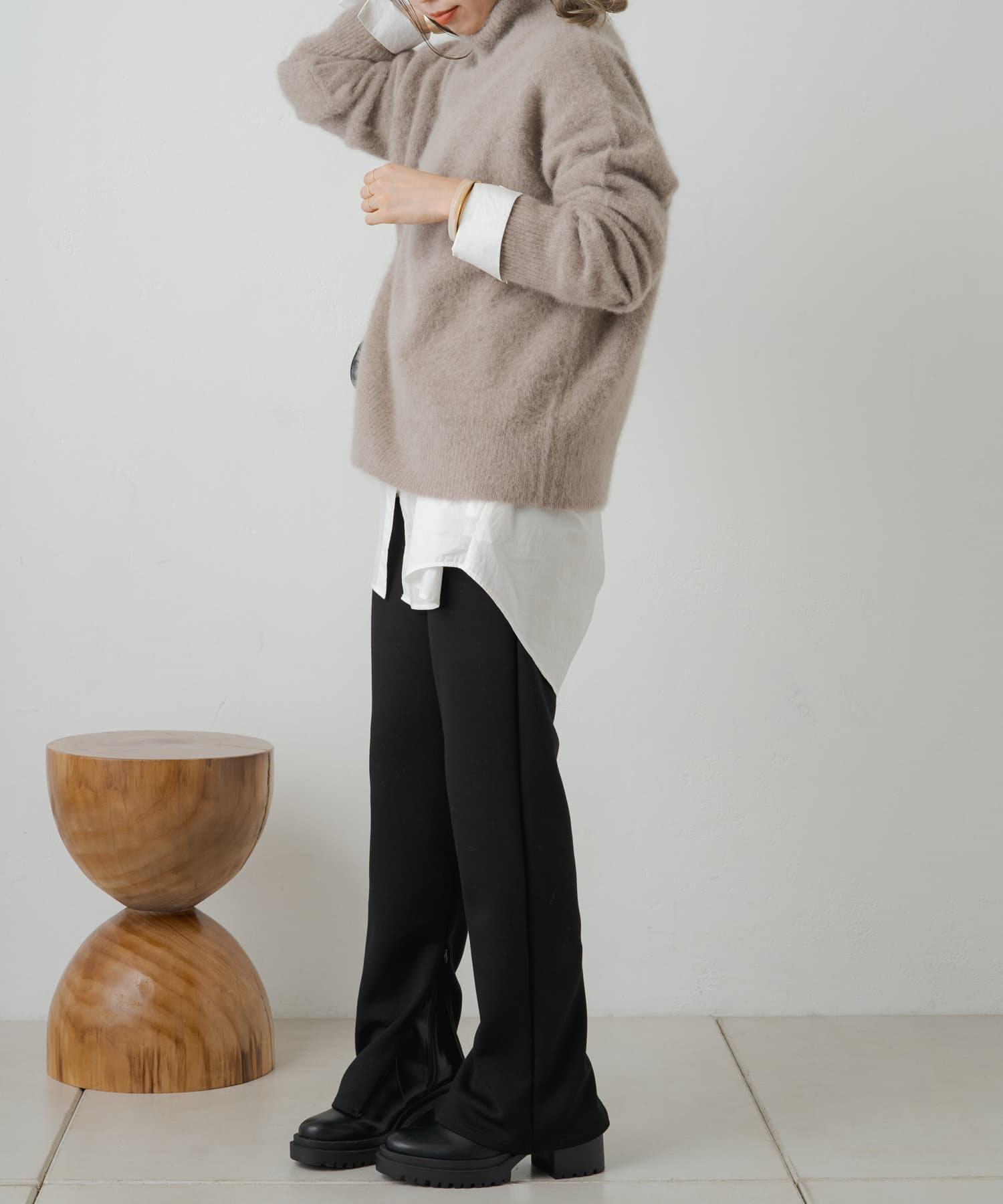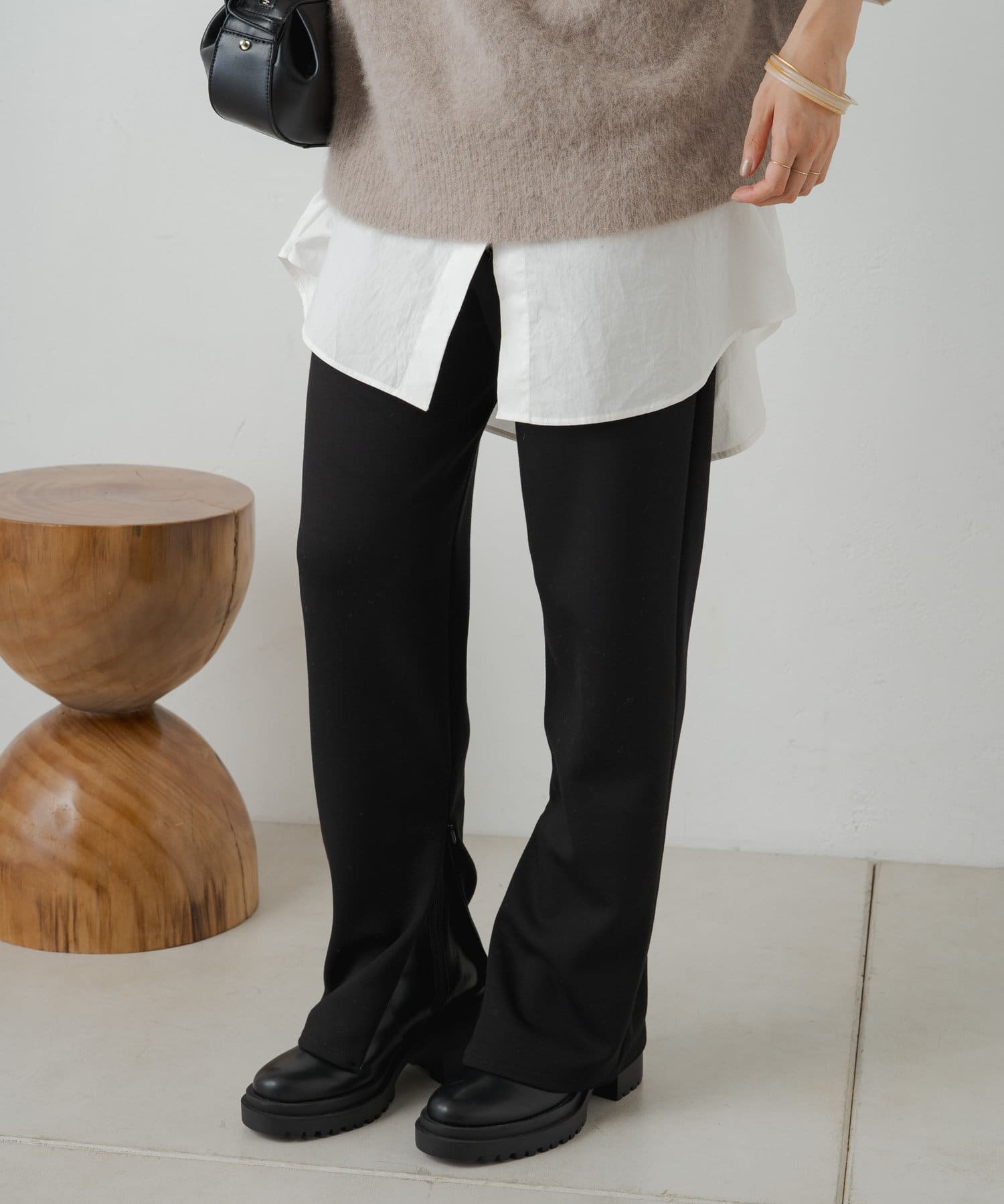 ・裾にファスナーがついており開けていただくと、フレアシルエットになって脚長効果も◎