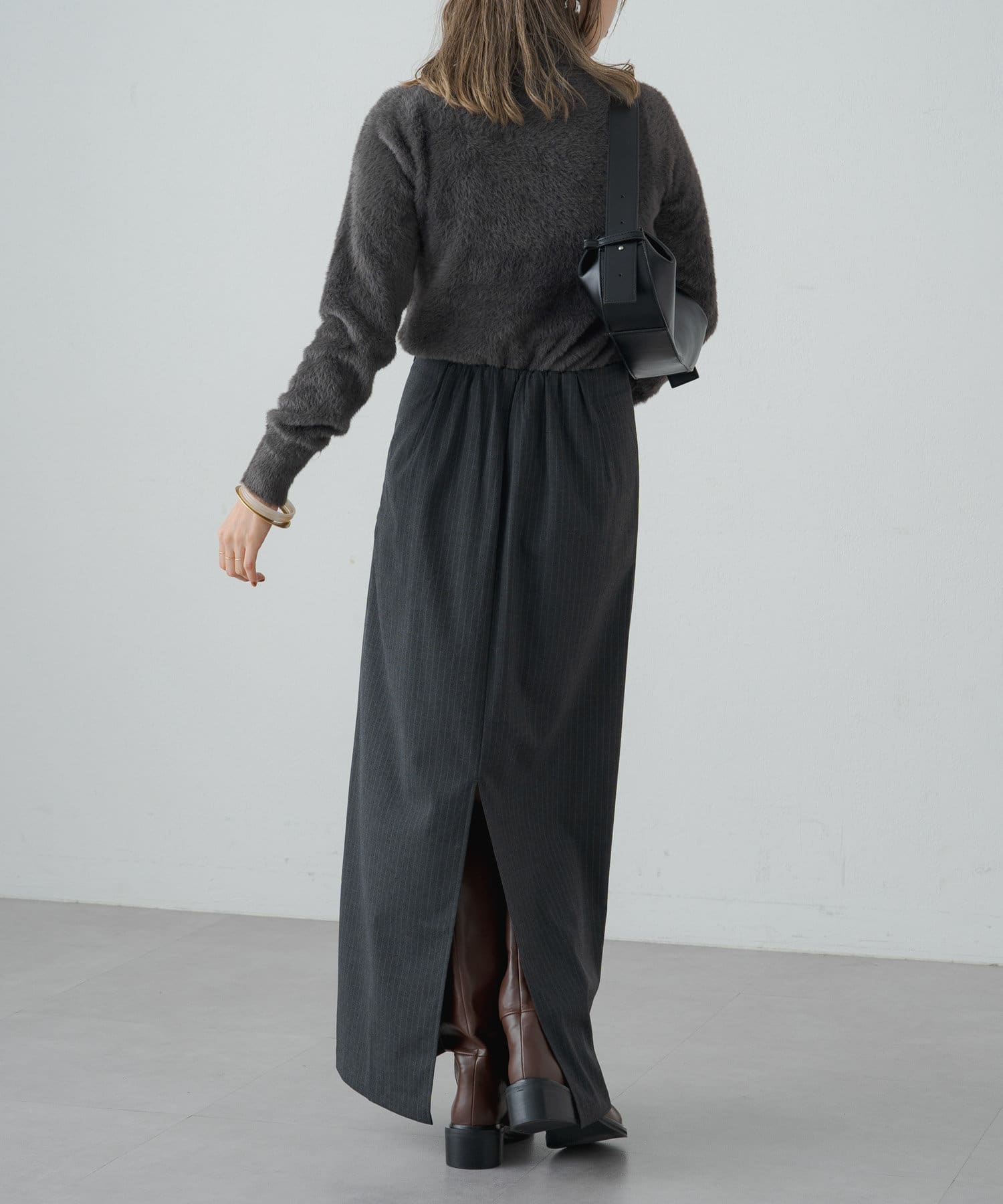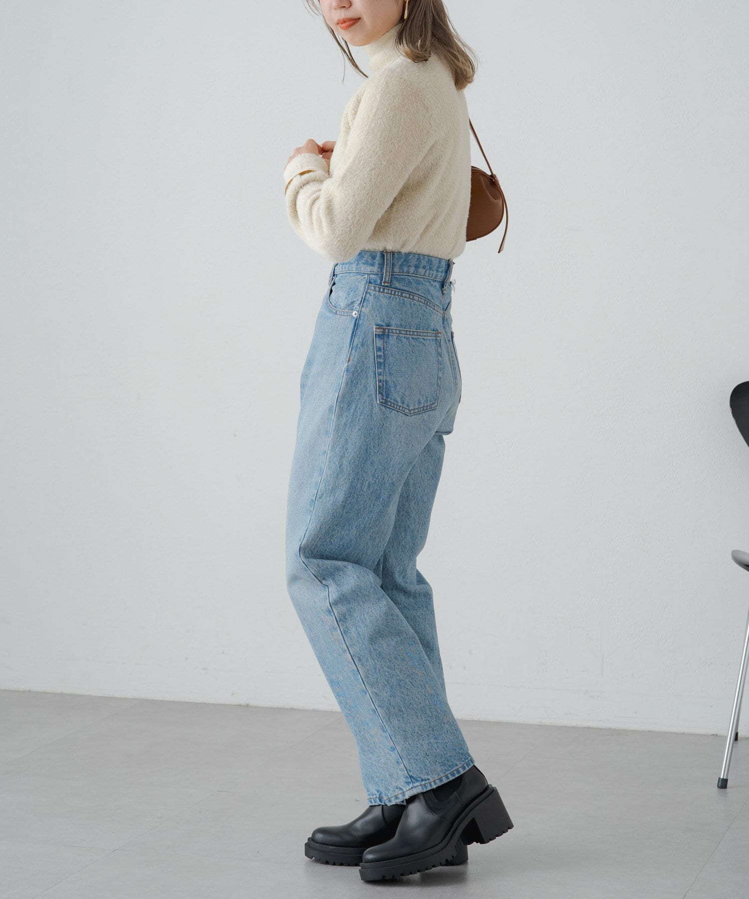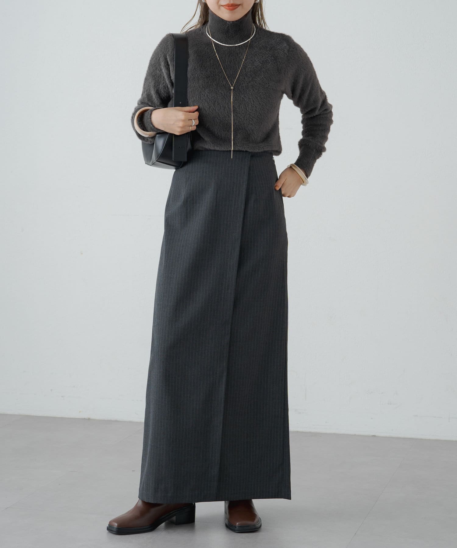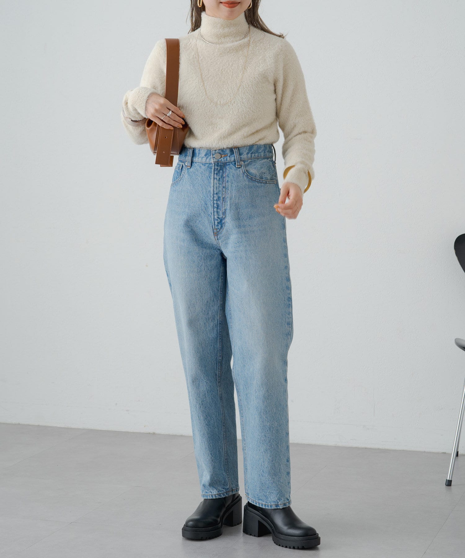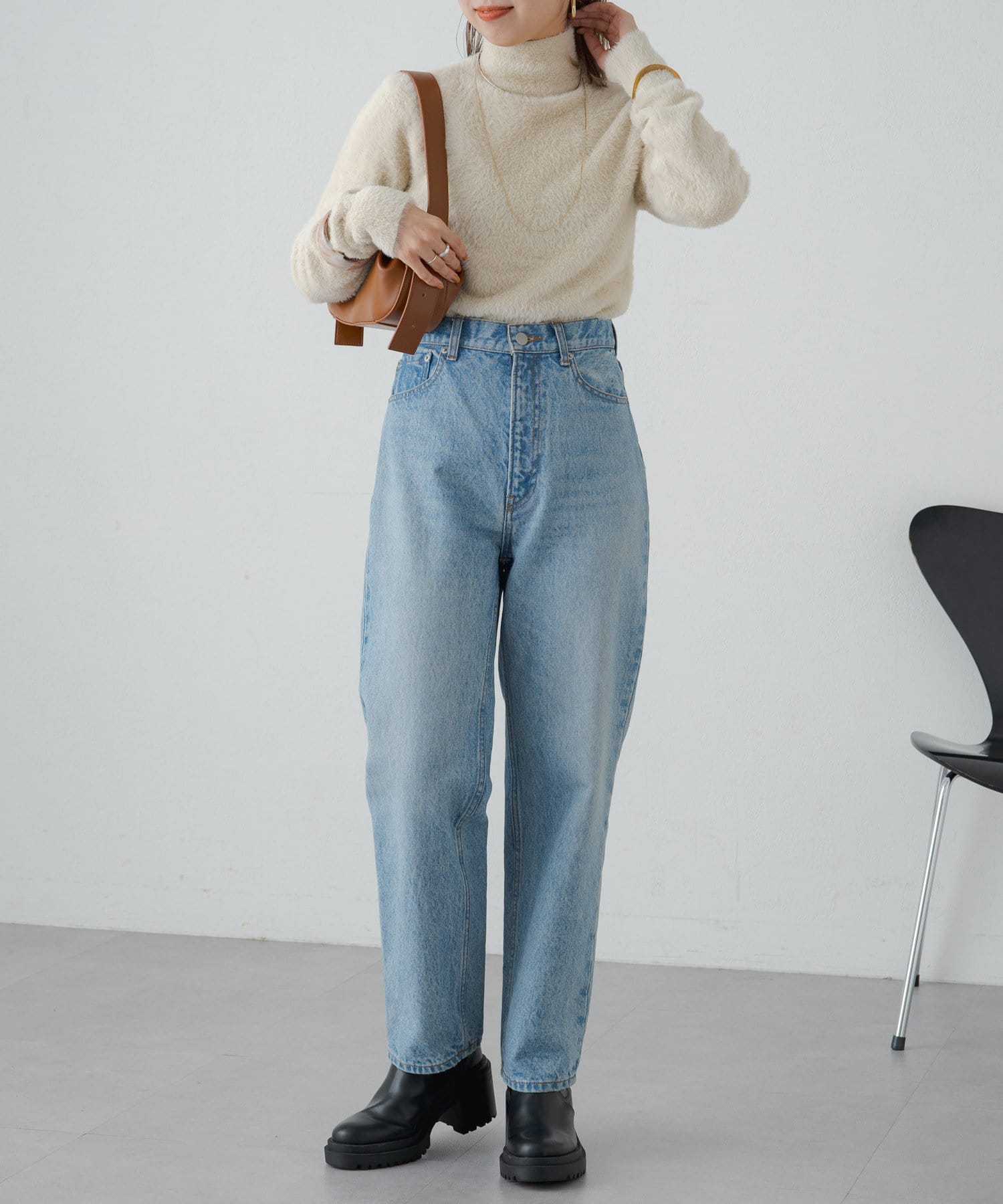 ・冬らしいふわふわなシャギー素材がコーディネートのポイントになり、一枚で決まるタートルニット
