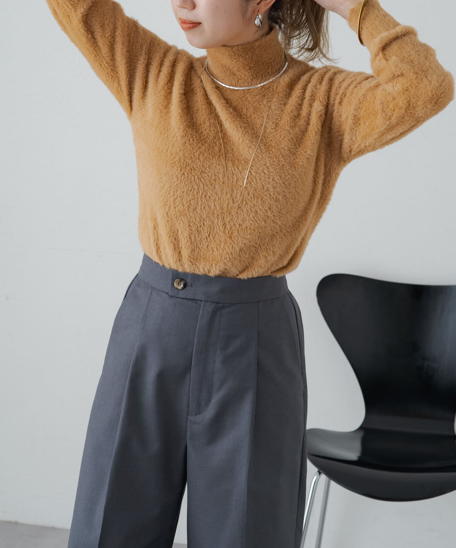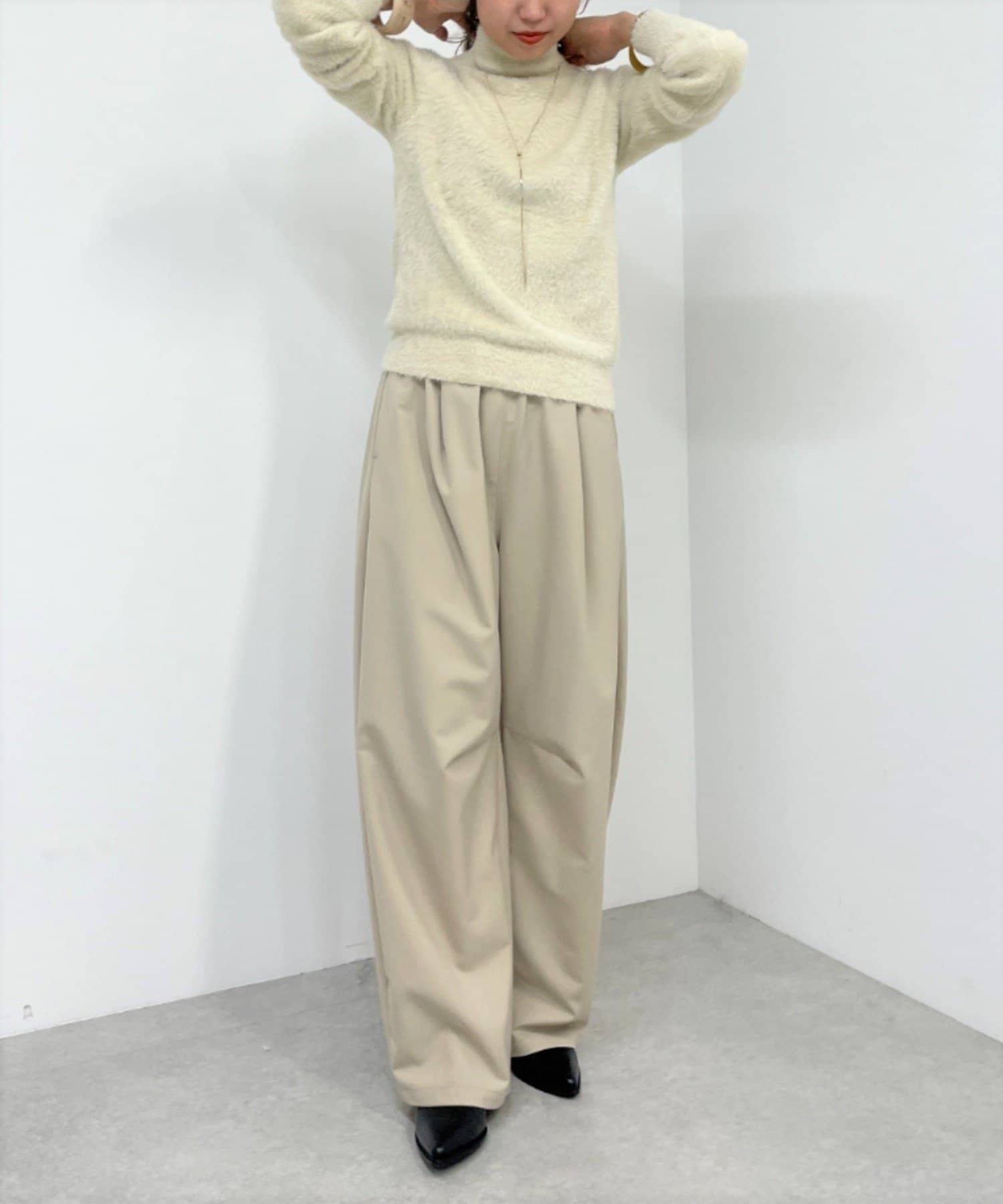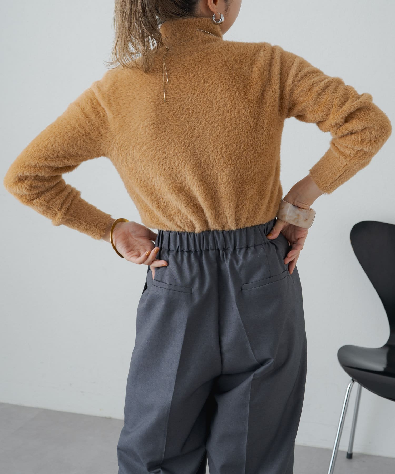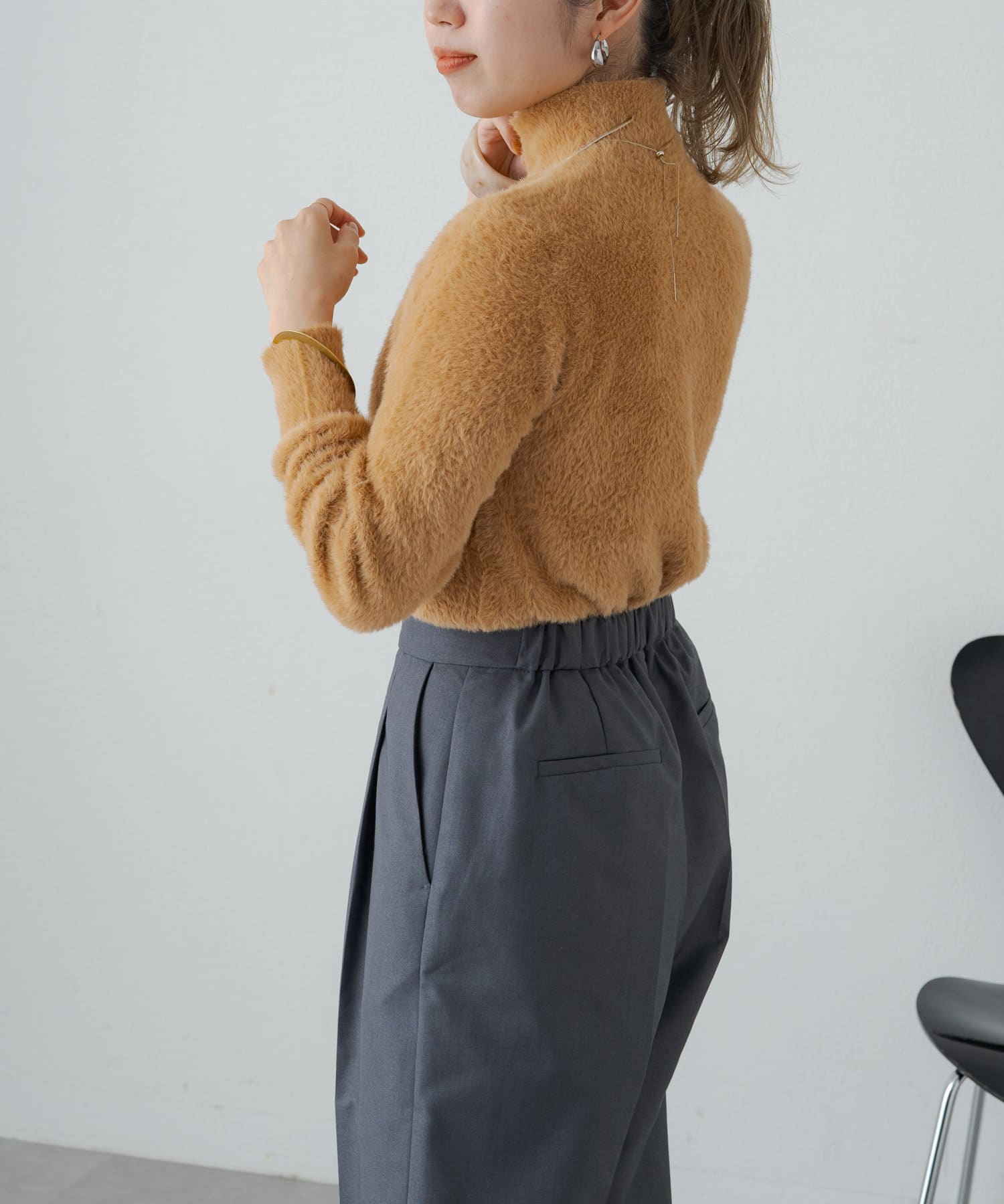ふわふわのシャギー素材がポイントのャギータートルニット