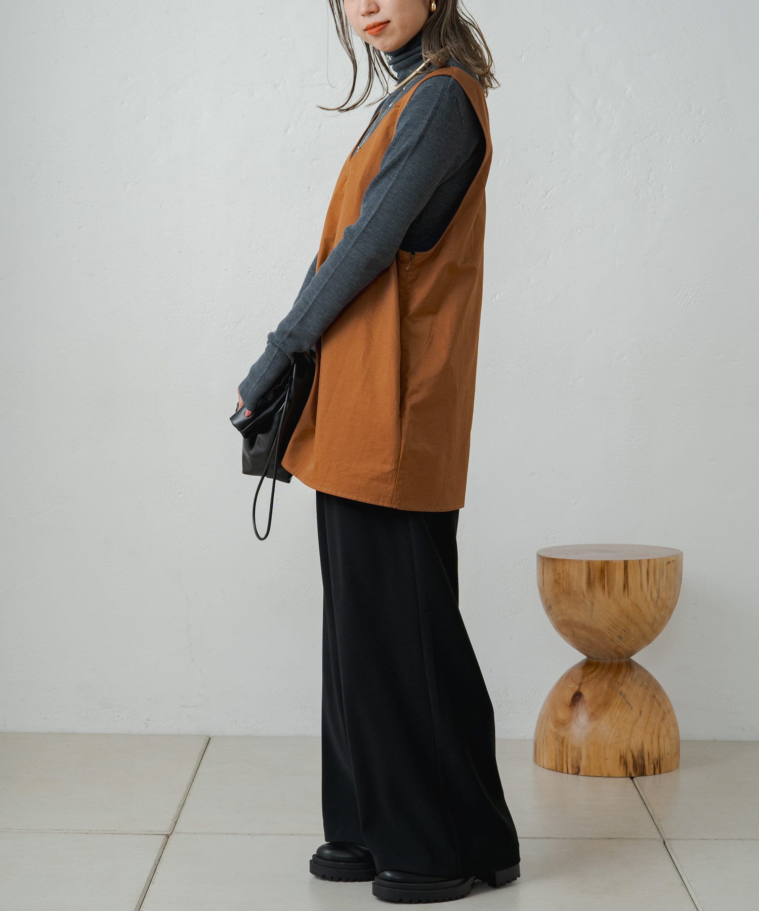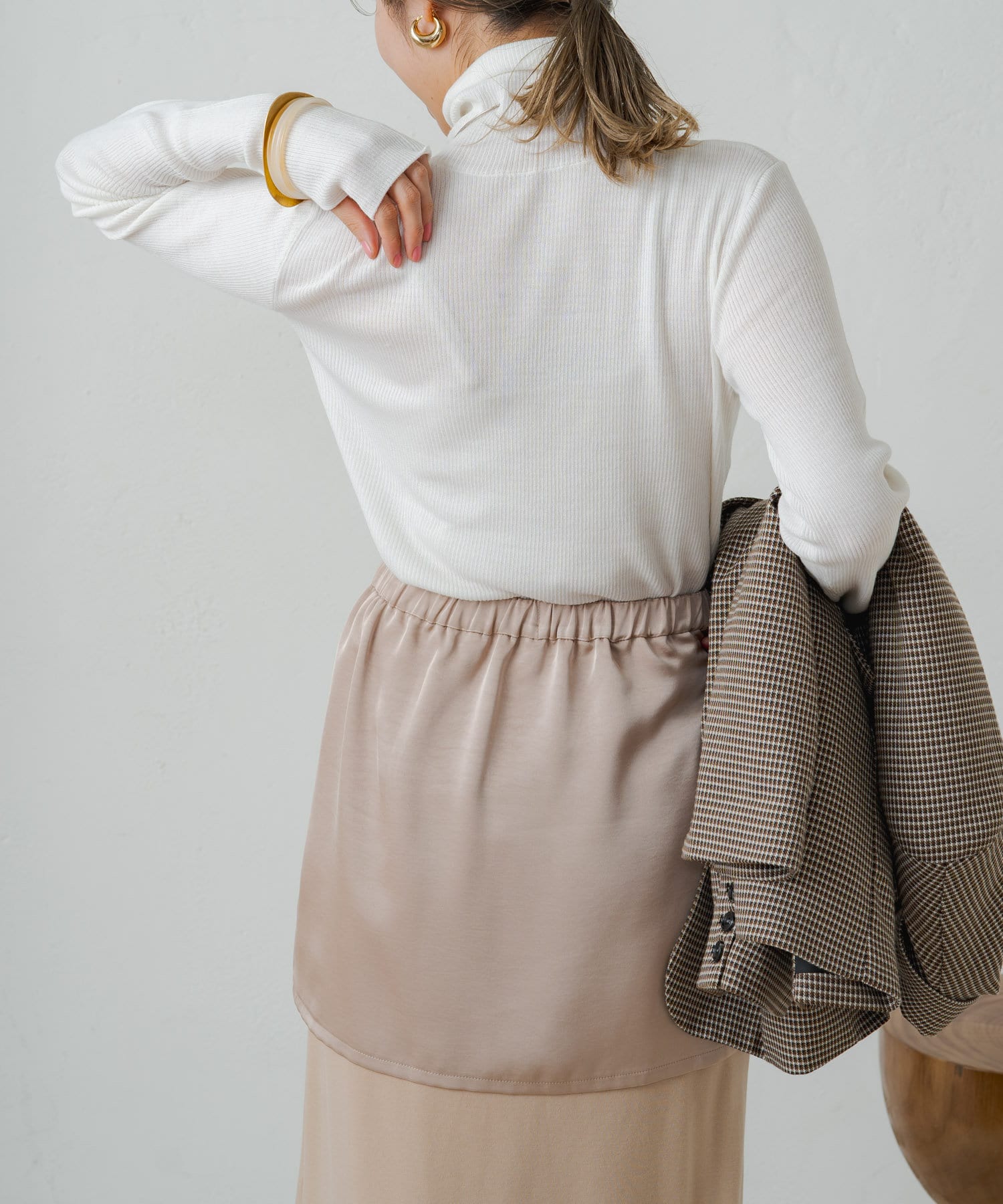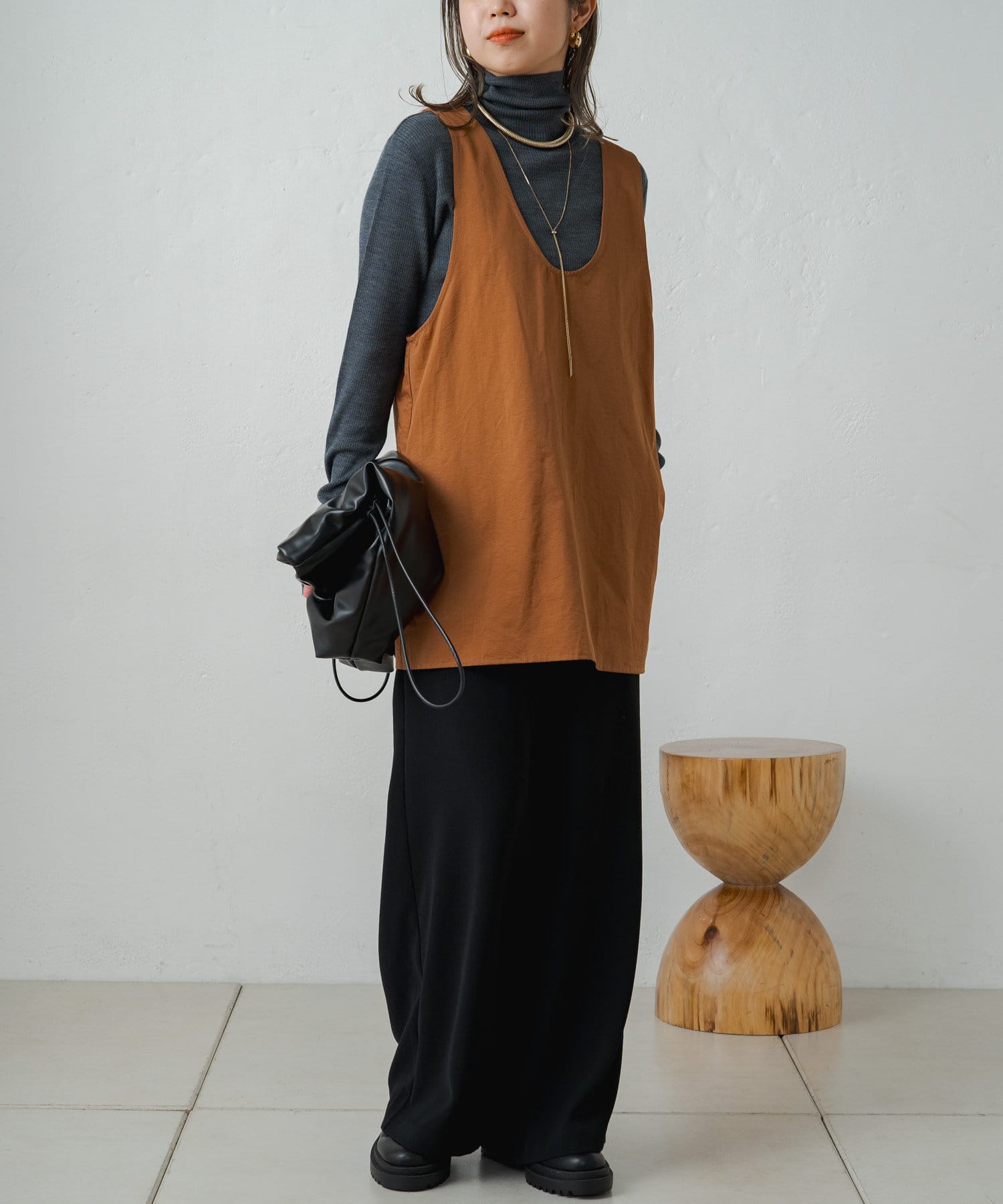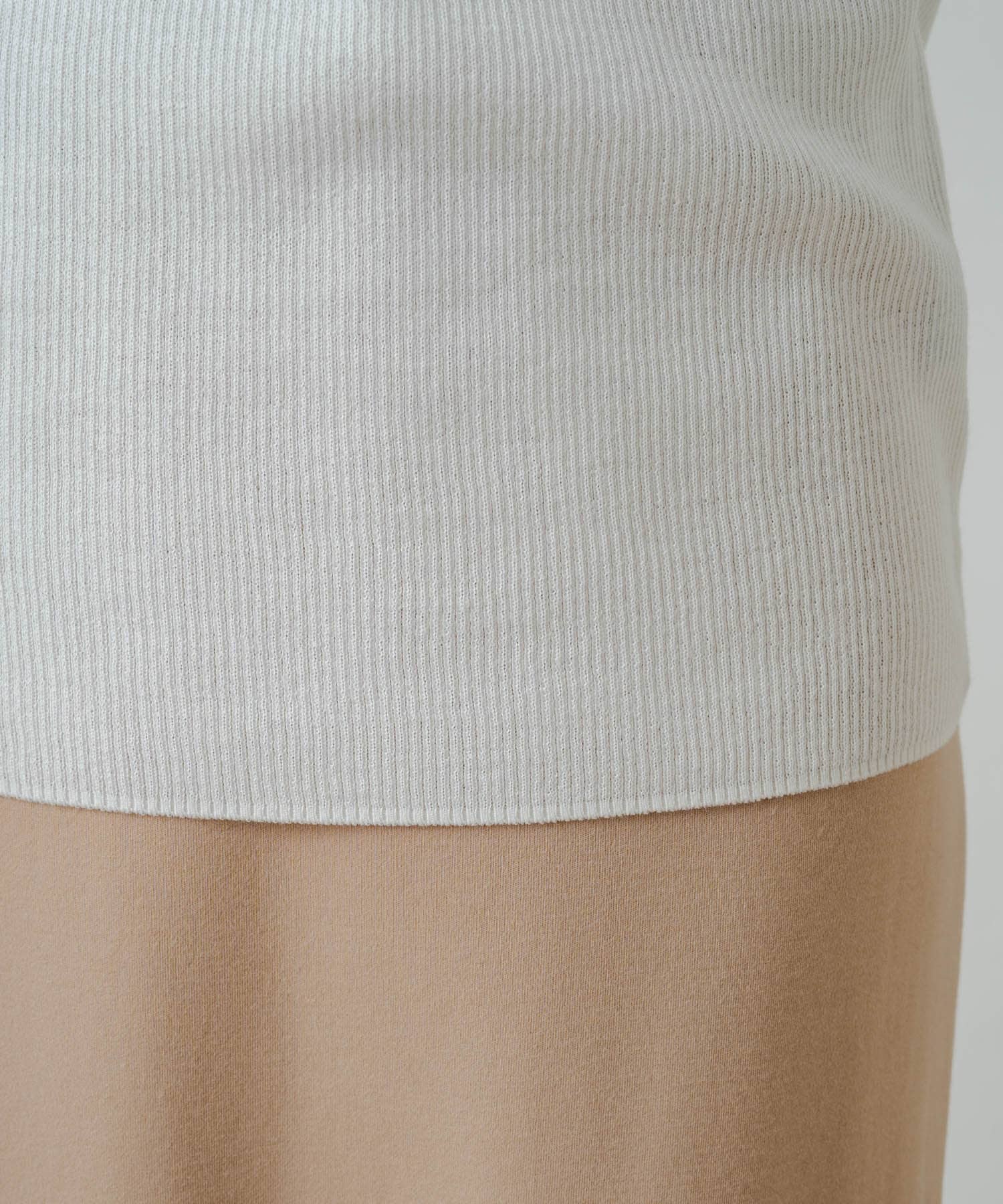 ・一枚ではもちろん、ニットやスウェット、シャツなどのインナーに着用し、ネックや袖口のレイヤードを楽しんでいただけます。
