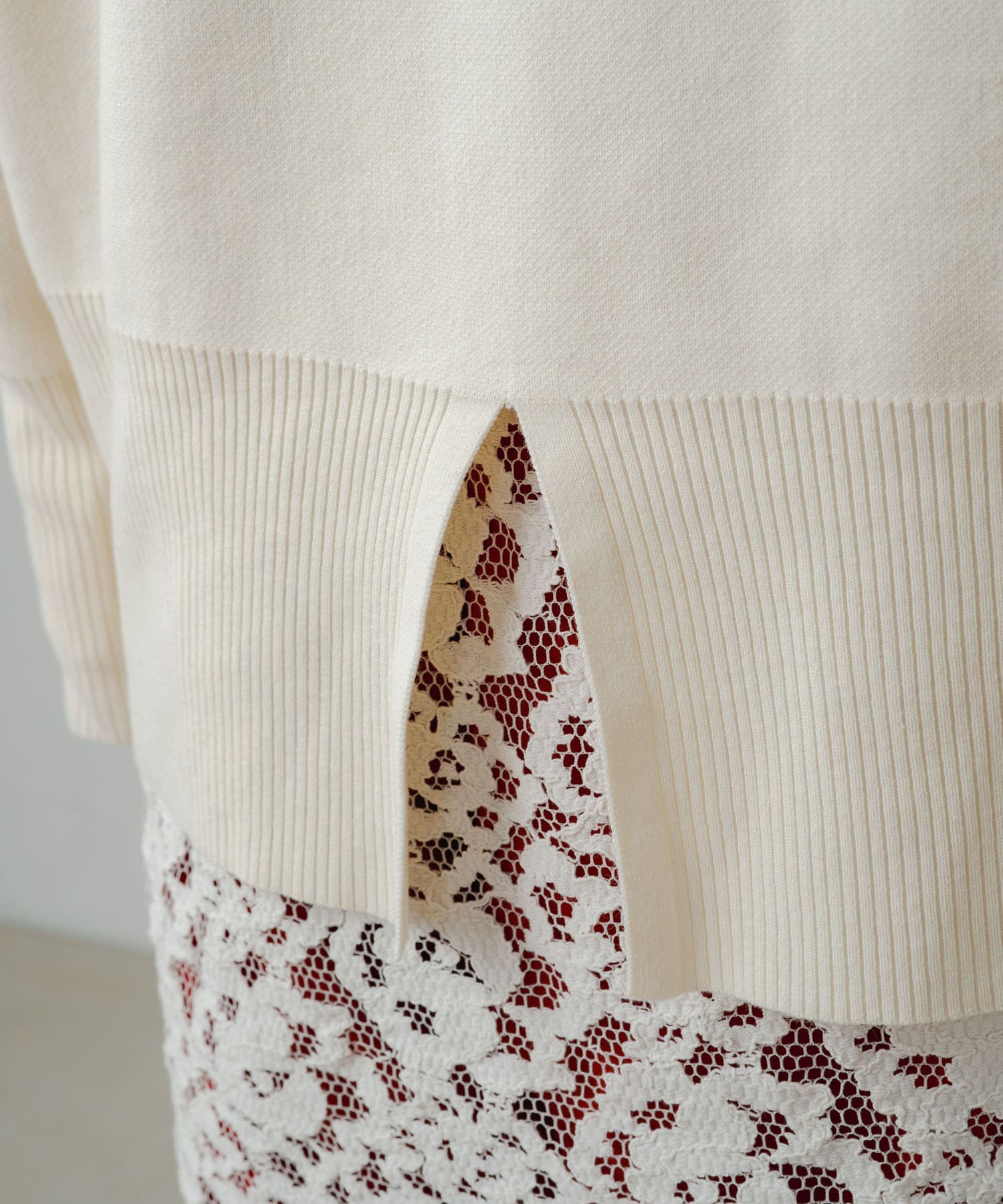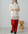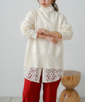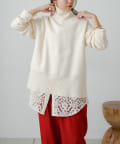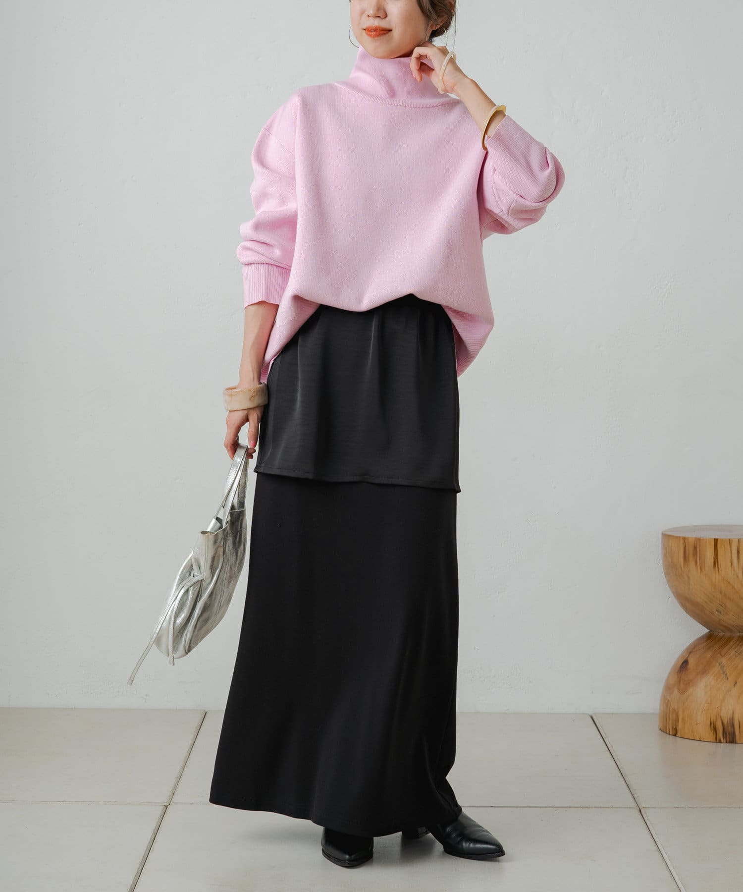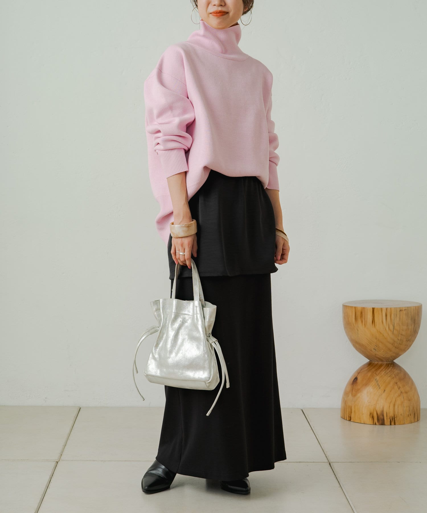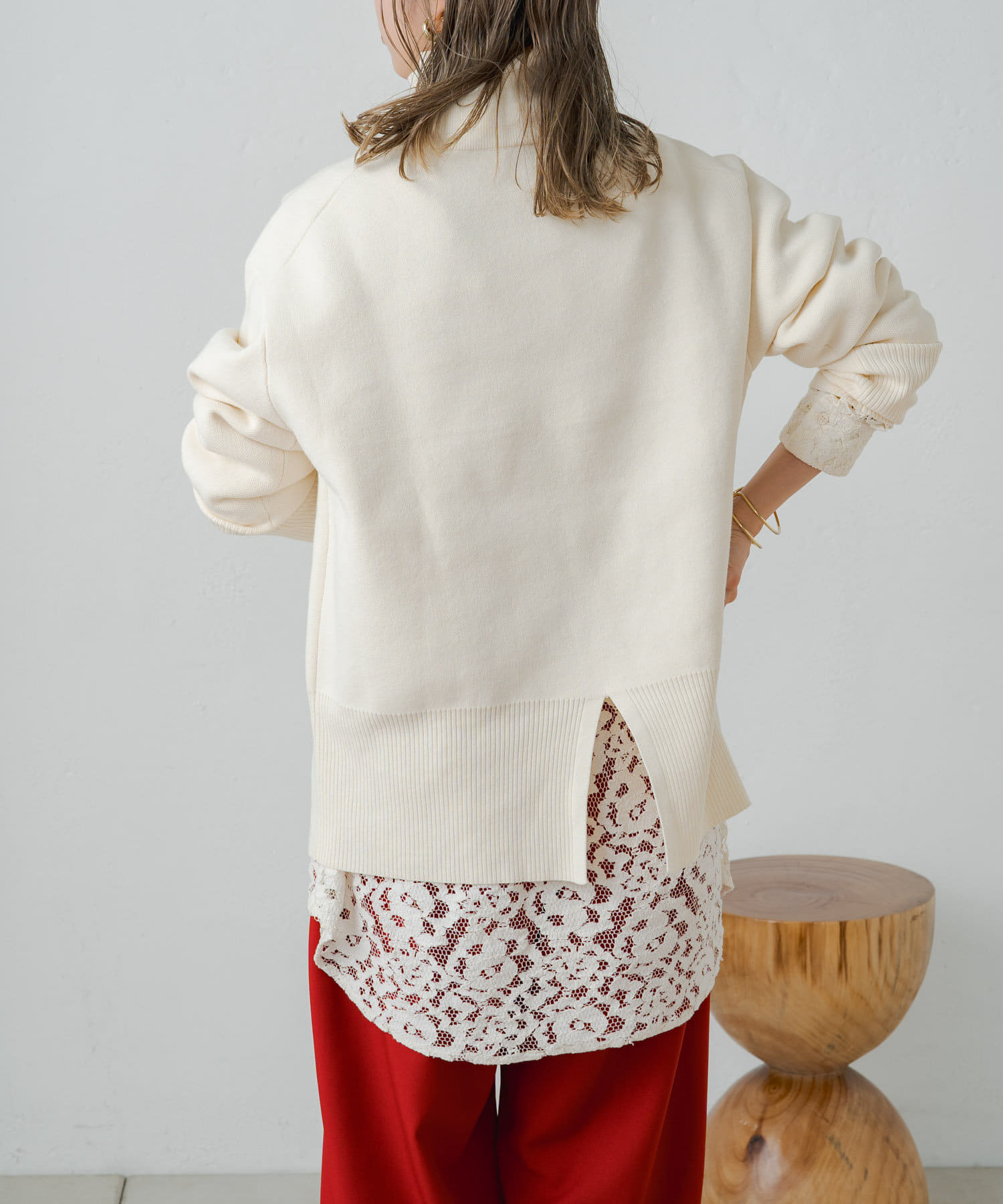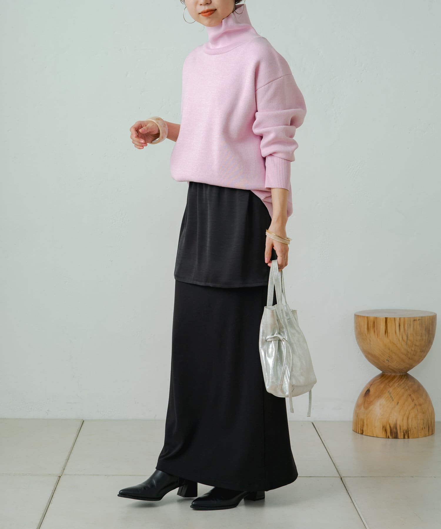 ・シンプルで着心地が良いスウェットライクなニット素材のハイネックプルオーバー