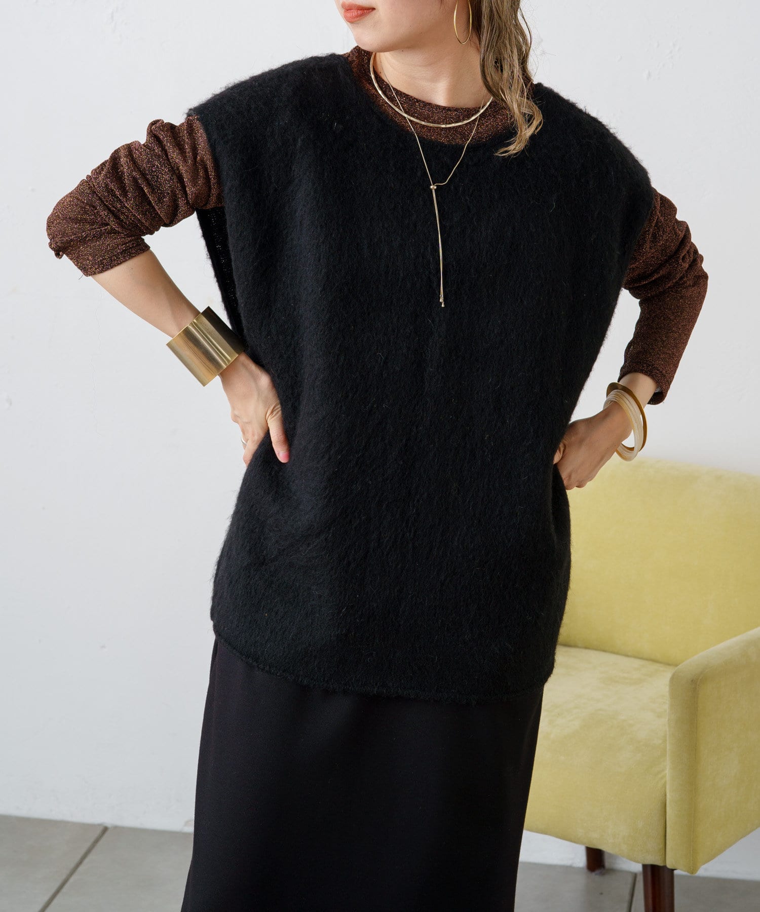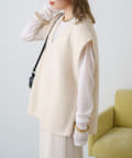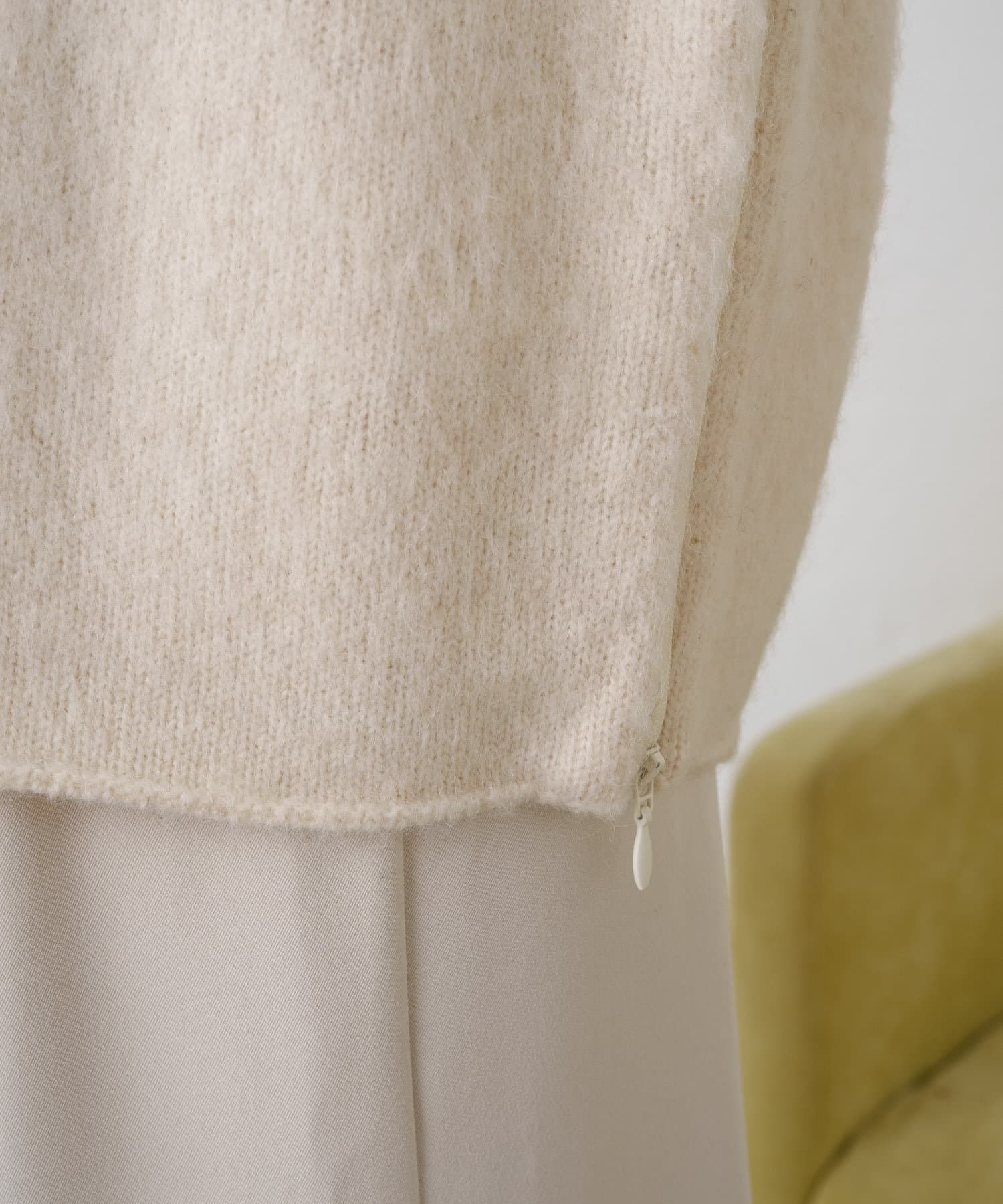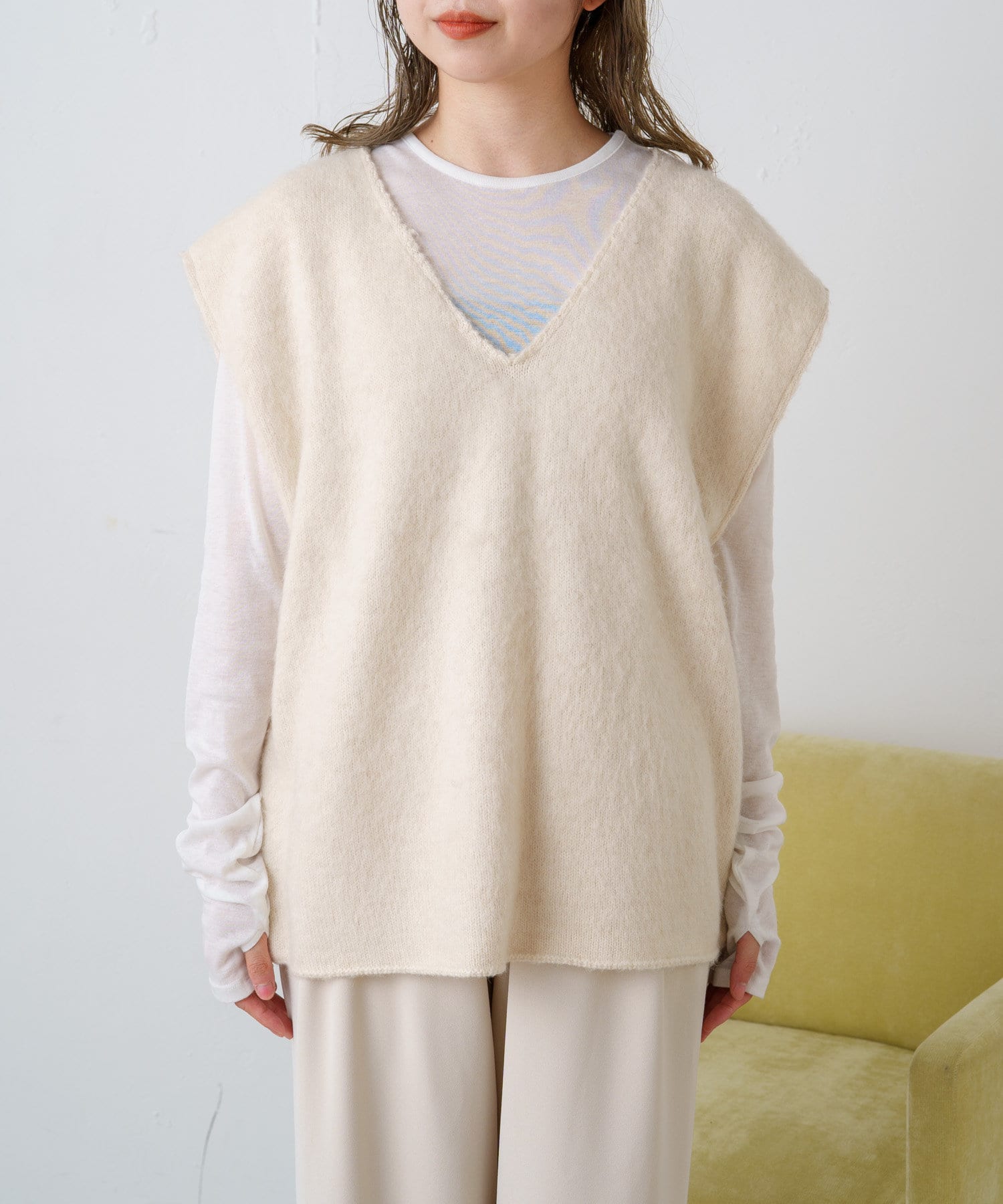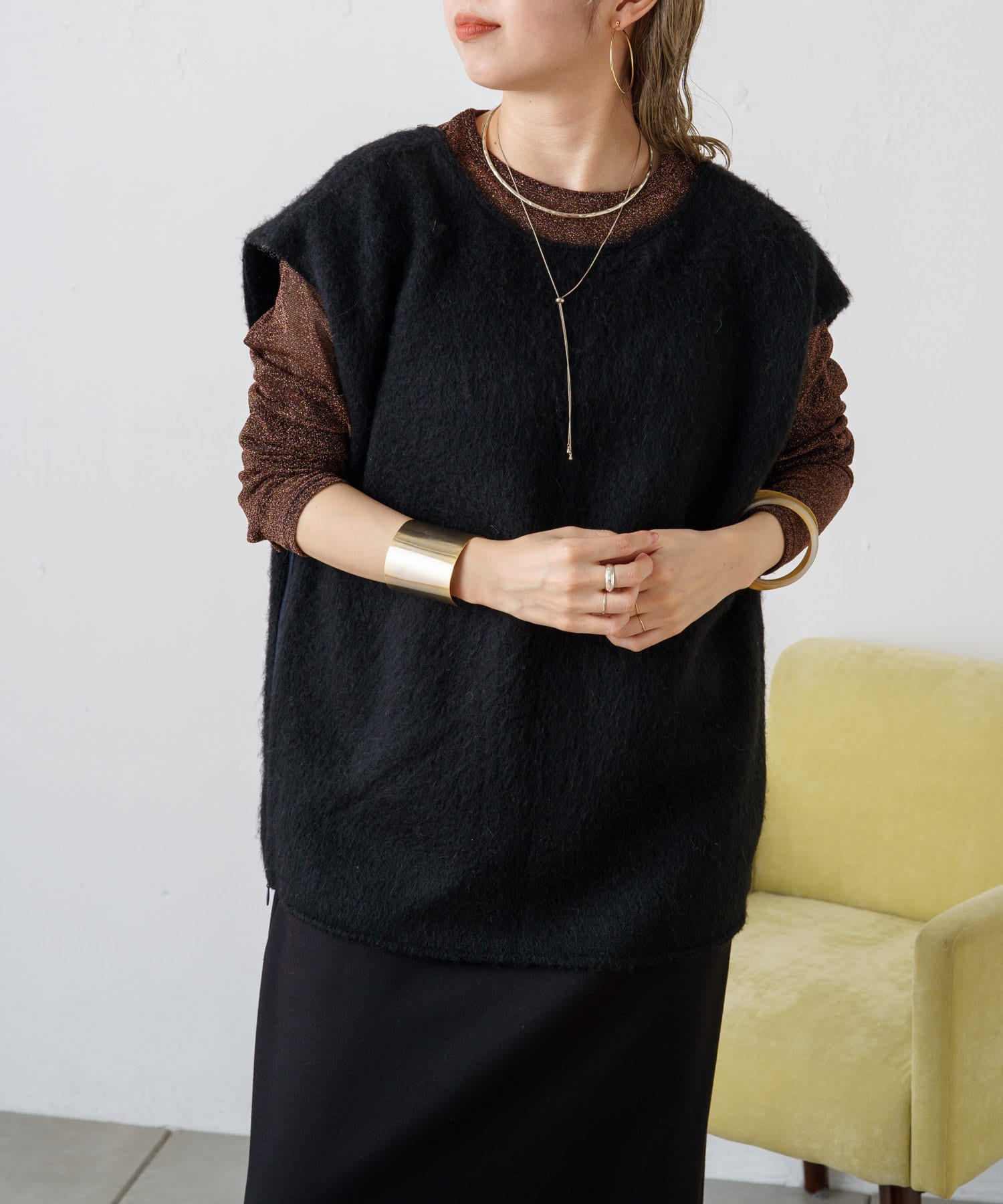 ・ふわふわとした素材感がかわいいニットベスト。ファスナーでサイドのスリットが調節できて抜け感がでるデザイン