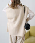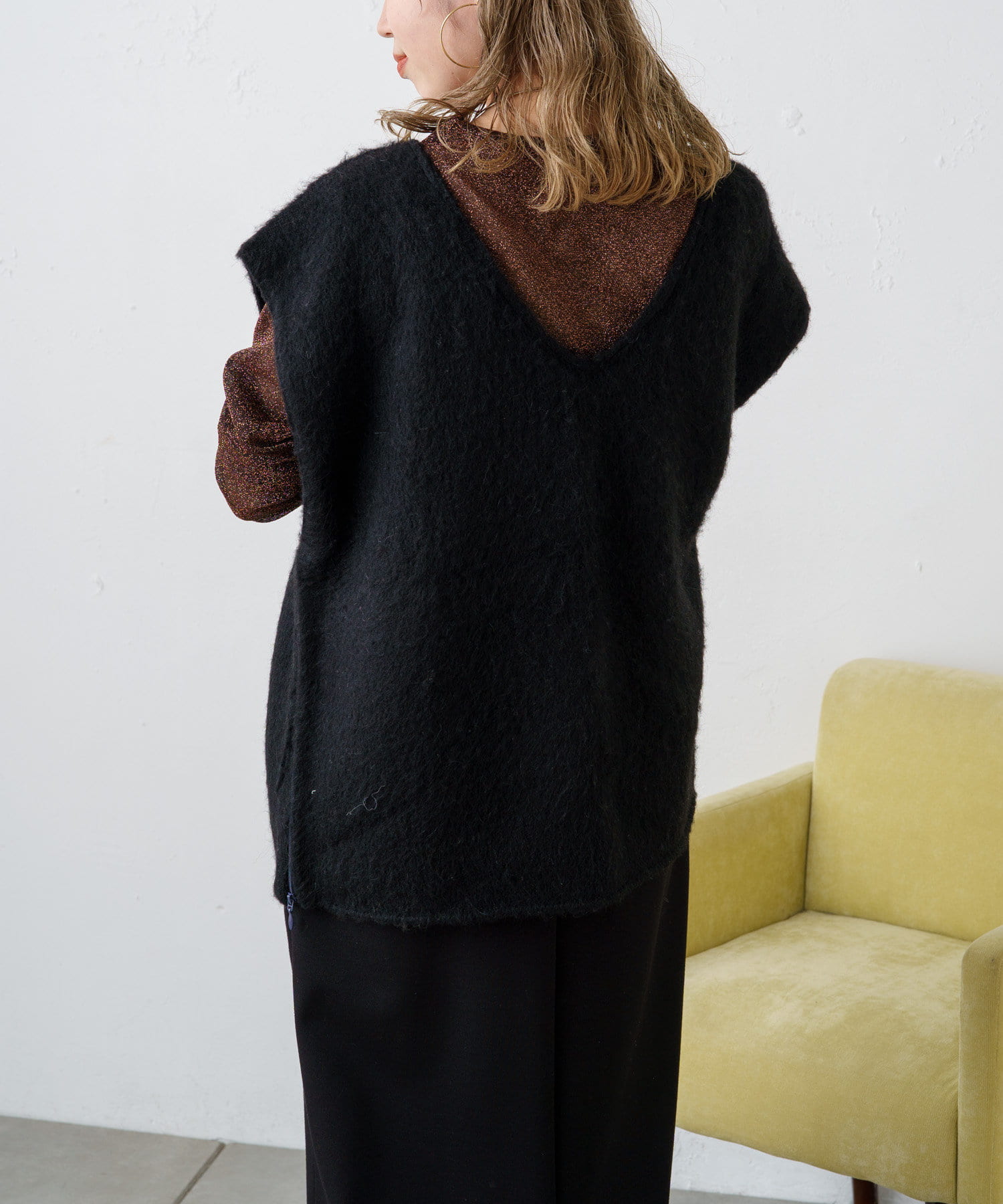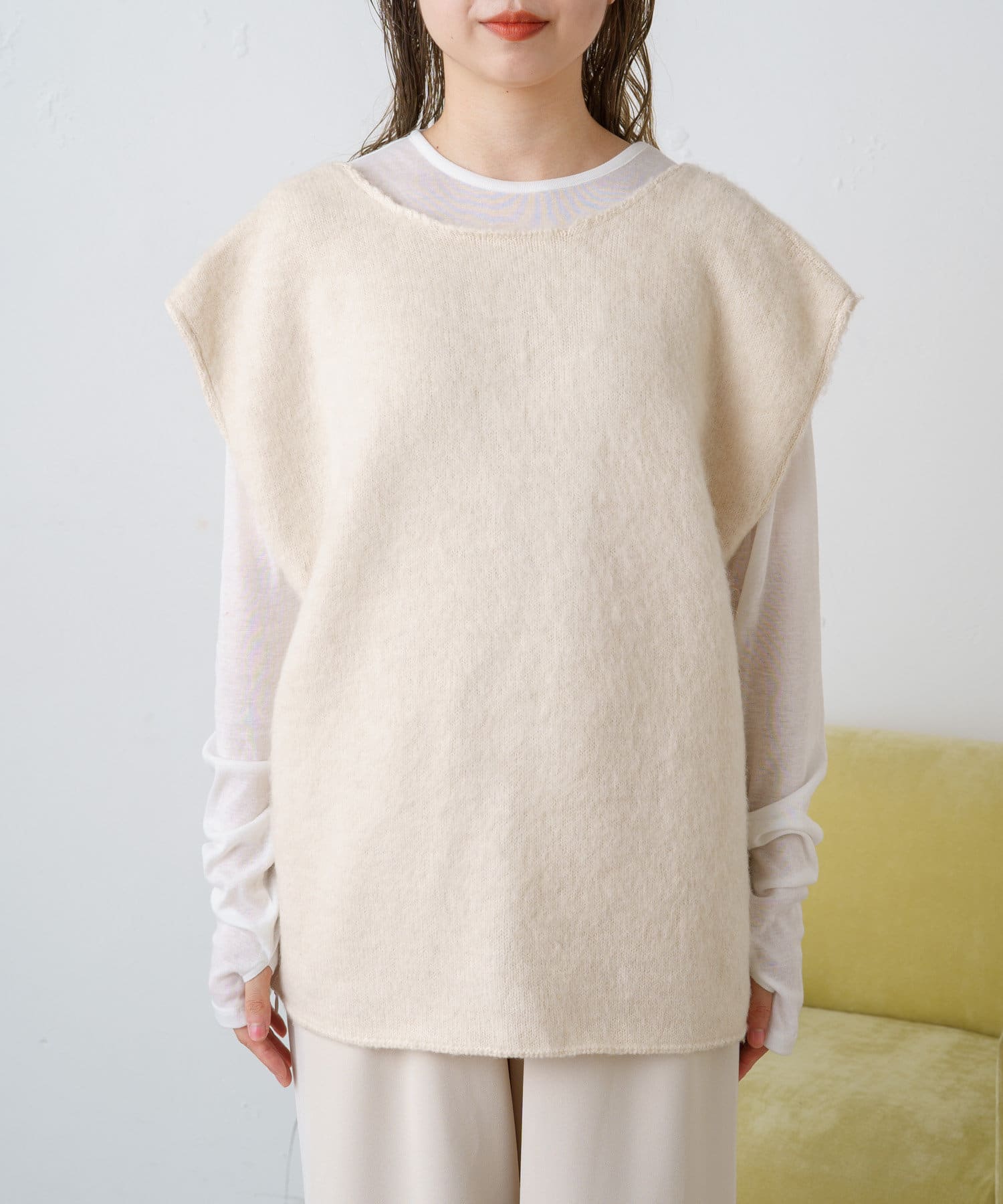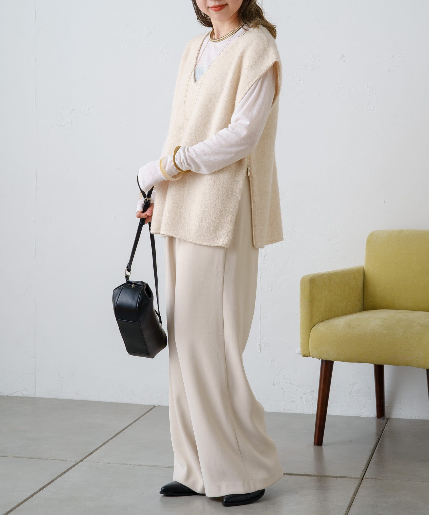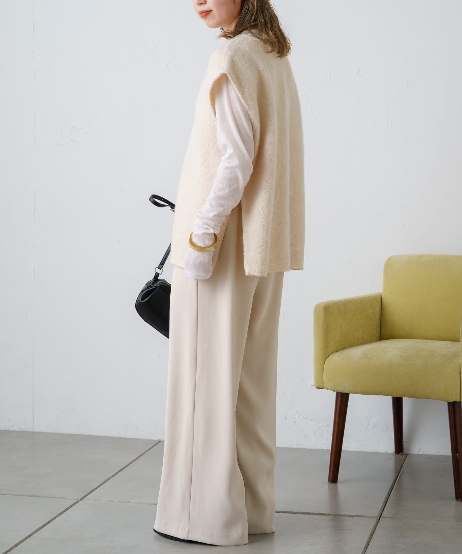 ・ふわふわとした素材感がかわいいニットベスト。ファスナーでサイドのスリットが調節できて抜け感がでるデザイン